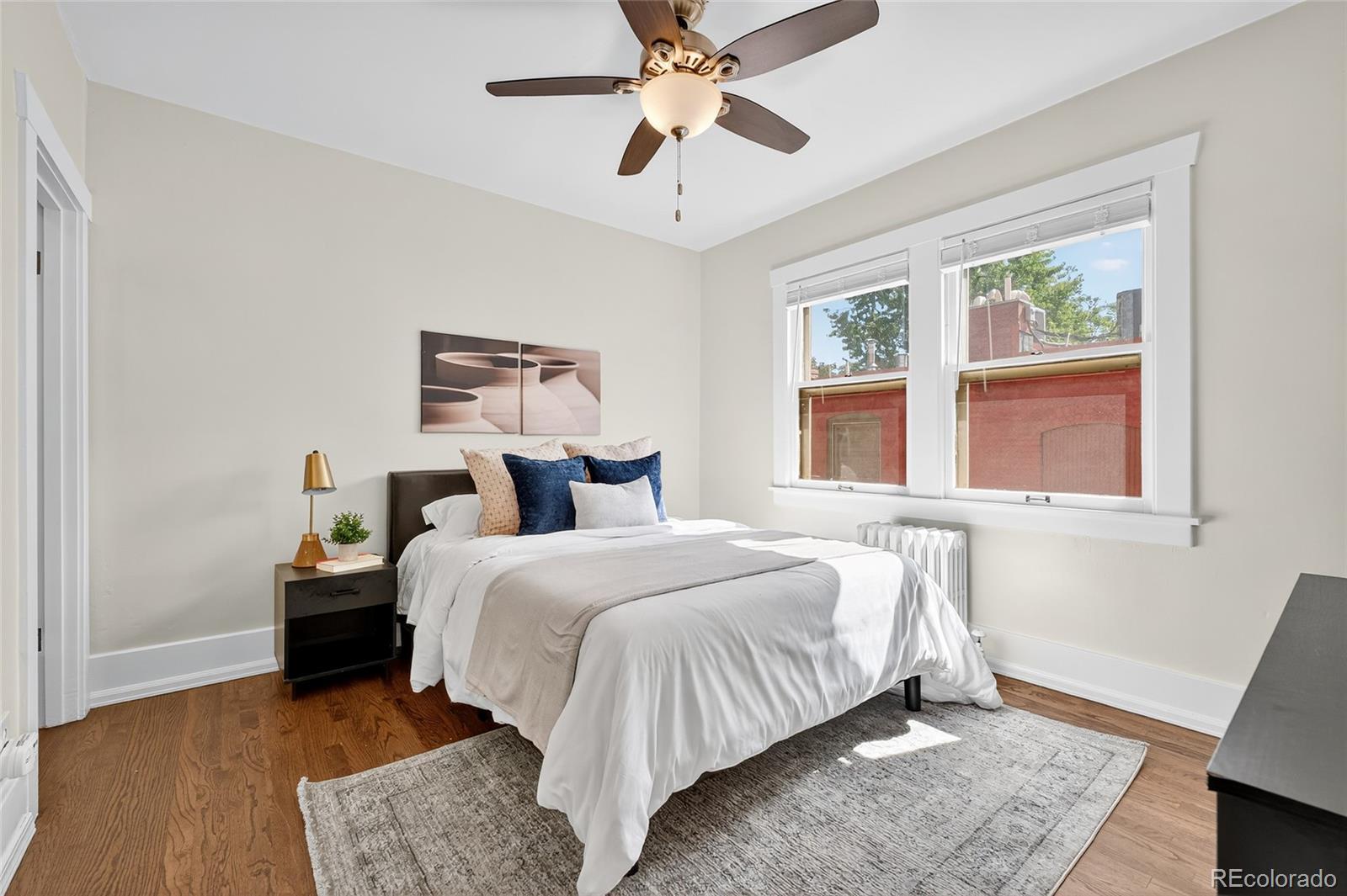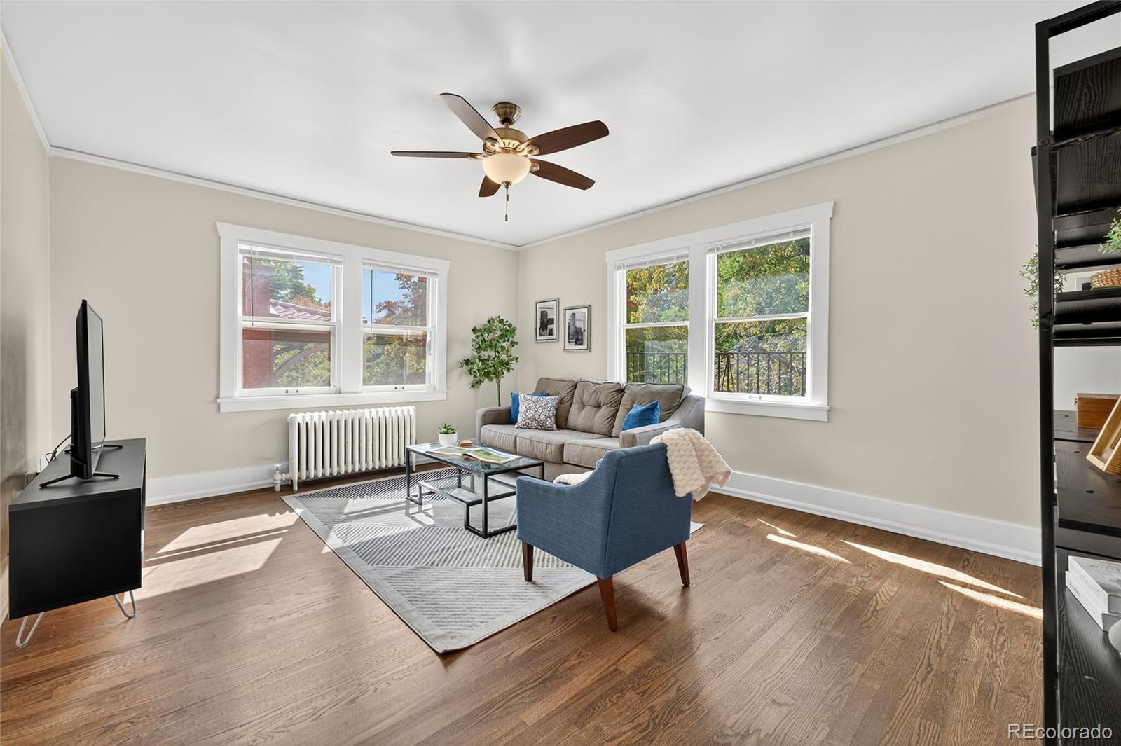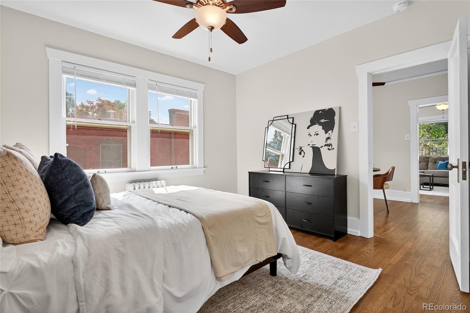 Experience the perfect balance of historic character and modern comfort in this stunning corner condo in Denver’s beloved Cheesman Park neighborhood. This home is filled with natural light and a warm, welcoming ambiance throughout. Step into the spacious living room and continue into the generous dining room, large enough to host gatherings with friends or family. The dining space flows seamlessly into the kitchen complete with granite countertops, making both everyday cooking and entertaining a breeze. The inviting bedroom provides a peaceful retreat with an en-suite 3/4 bath and a walk-in closet, offering both comfort and practicality. Additional conveniences include building laundry, a 1-car detached garage, and a dedicated storage unit (#5) for all your extra belongings. This home’s location is as impressive as its features. Nestled on a quiet, tree-lined street that still provides easy access to main roads, you’ll enjoy the unique blend of tranquility and connectivity. Just steps away, you’ll find Cheesman Park, Denver Botanic Gardens, Cherry Creek, and Colfax Avenue with its lively entertainment and diverse dining scene. Nearby 6th and 8th Avenues offer boutique shops, local restaurants, and quick access to major highways like I-25 and I-70 for commuting or weekend getaways to the Rocky Mountains. Everyday essentials—grocery stores, coffee shops, gas stations, and more—are conveniently close by. Offering light, space, history, and unbeatable access to Denver’s best amenities, this condo isn’t just a place to live—it’s a lifestyle. Don’t miss your chance to call this incredible Cheesman Park residence your own!
