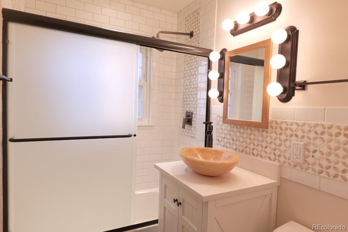 Lovingly owned by one family since 1955, this beautifully updated all-brick Denver ranch home combines mid-century character with modern comfort. Step through the stunning ash entry door into an inviting layout featuring new flooring and fresh paint throughout. The sleek, fully updated kitchen boasts quartz countertops, stainless steel appliances, and elegant finishes perfect for today’s lifestyle. The main floor remodeled bathroom offers spa-like appeal with a vessel sink and custom tile work. The basement features roughed-in plumbing for a second bath to be easily added. Beautiful solid ash french doors lead to a covered patio ideal for outdoor dining. Downstairs, a spacious family/recreation room provides ample space for entertainment and family relaxation. Major updates include double pane windows, a newer roof, HVAC system, electrical panel, new water pipes, and leaf gutter guards—ensuring peace of mind for years to come. Thoughtful details like the original brass doorbell preserve the home’s vintage charm. Move-in ready and meticulously maintained, this gem blends classic style with contemporary upgrades—all in a prime Denver location close to parks, shops, and dining.