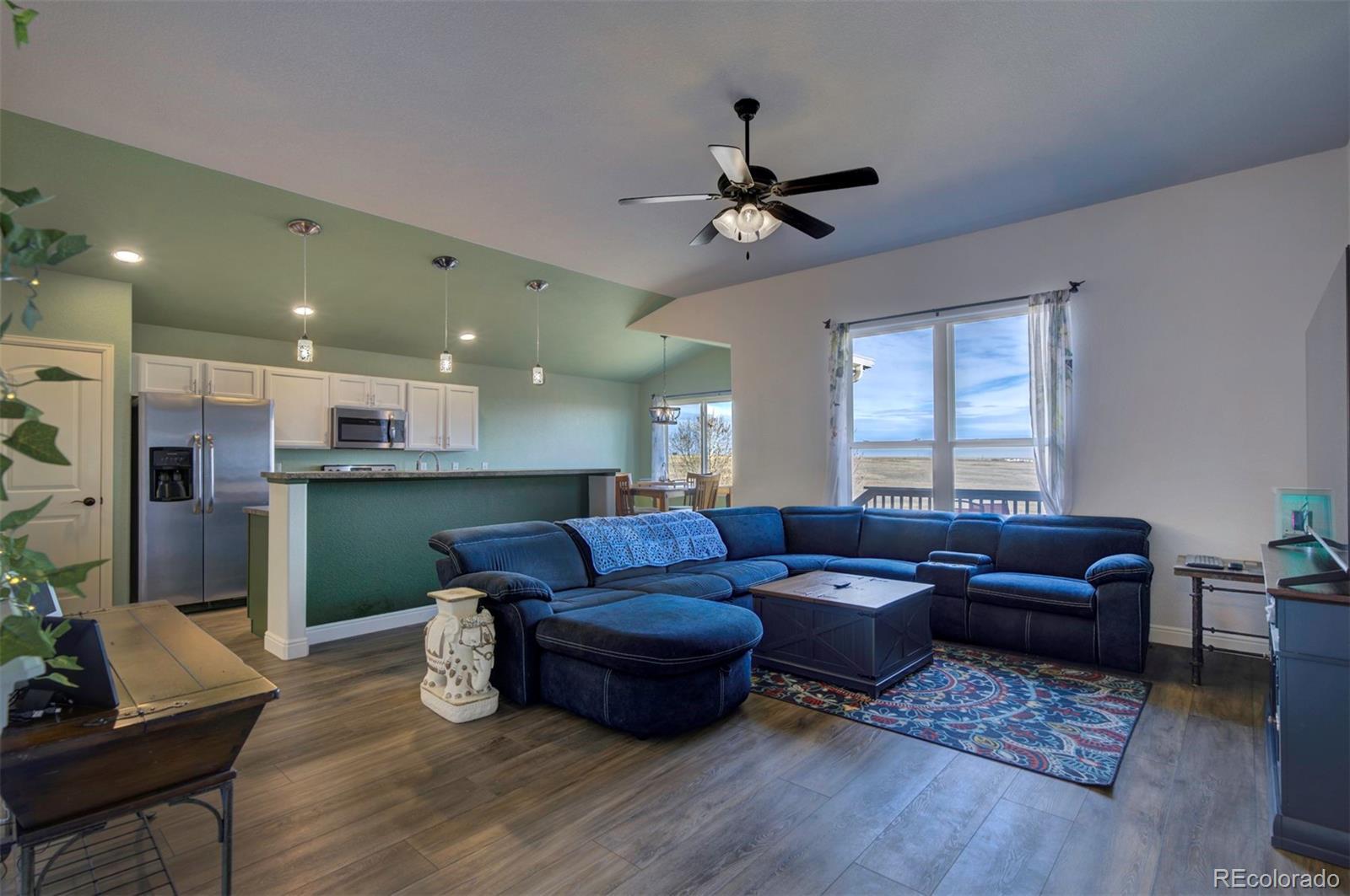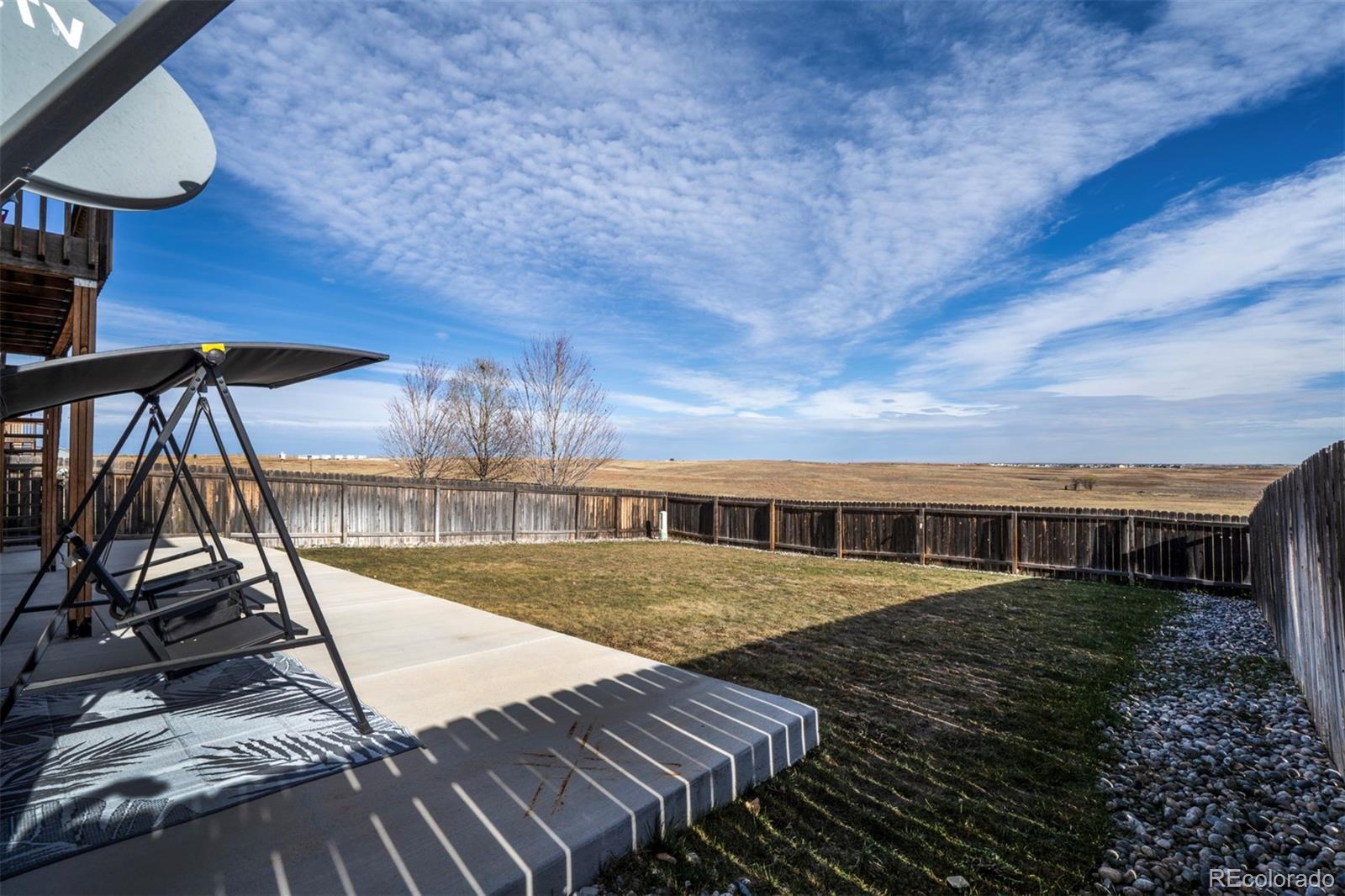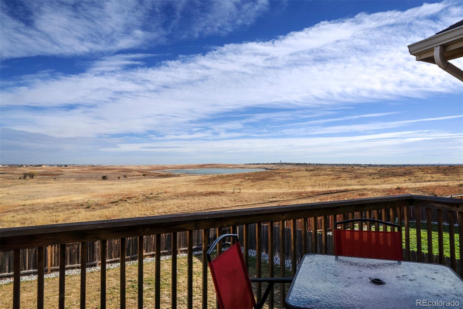 Beautiful Ranch-Style Home with Walkout Basement and Stunning Views! Welcome to this spacious 5-bedroom, 3-bath ranch home located in the desirable Painted Sky at Waterview community. Thoughtfully designed for comfort and functionality, this home offers both main-level living and a beautifully finished walkout basement—perfect for multi-generational living or entertaining. The main level features a bright, open layout with luxury vinyl flooring throughout, a large living room, and a dining area with a walkout to a wooden deck offering unobstructed views of open space and Big Johnson Reservoir. The kitchen is equipped with stainless steel appliances, a pantry, and a breakfast bar for casual dining. The primary suite includes an adjoining full bath and walk-in closet, while two additional bedrooms and another full bath complete the main level. A separate laundry room with shelving, a coat closet, and a welcoming foyer add to the convenience. The finished walkout basement is an entertainer’s dream, featuring a spacious family room with a mini split system and media/projector wiring, a kitchenette/wet bar, and direct access to a concrete patio. The basement also includes one bedroom with a full bath, a non-conforming bedroom with a large walk-in closet, and under-stair storage. Additional highlights include central air, ceiling fans, auto sprinkler system, sump pump, radon mitigation system, mini split with inverter heat pump, new luxury vinyl flooring, added cabinetry and shelving, and a newer storm door. Enjoy the peaceful setting with no rear neighbors while still being conveniently located near Fort Carson, Peterson AFB, Schriever AFB, Colorado Springs Airport, and the Powers Corridor, offering easy access to shopping, restaurants, and entertainment. Don’t miss the opportunity to own this well-maintained, move-in ready home with incredible views and versatile living space!