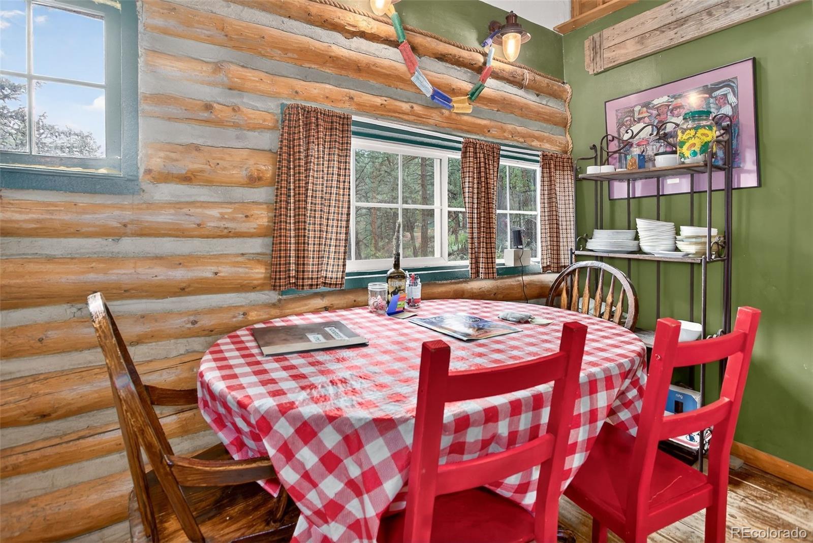 Historic Sphinx Park Cabin with Updated Comforts. Nestled among towering pines and dramatic rock outcroppings of Buffalo Creek, this enchanting 1905 log cabin—originally the Buffalo Creek carriage house— offers the perfect Colorado mountain retreat. Blending historic character with thoughtful updates, the home provides a warm, inviting escape just minutes from Highway 285 and the charm of Buffalo Creek. Inside, you’ll find classic log walls, wood floors, and cozy living spaces accented by stonework and a wood-burning stove. The updated kitchen balances rustic decor with modern function, featuring a vintage-inspired range, butcher block counters, and open shelving. The open dining and living areas invite connection, with multiple windows framing the surrounding forest. Upstairs, the loft-style primary suite boasts vaulted ceilings, a private deck, and an abundance of natural light. An additional bedroom with a charming built-in platform bed offers flexibility for guests, a home office, or rental use. Bathrooms include both a custom soaking tub and a classic clawfoot tub, adding to the home’s historic charm. Step outside to one of the multiple decks where you can sip morning coffee, entertain family and friends, or stargaze beneath Colorado’s dark skies. Solar panels, a durable metal roof, and storage areas beneath the home provide both efficiency and practicality. Adventure is always close by—hike, bike, or climb in the nearby trails, fish the South Platte River, take a spontaneous dip at the Chutes, or enjoy live music at the Bucksnort Saloon. Fully furnished and move-in ready, this historic cabin is ideal as a year-round residence, weekend escape, or Airbnb investment.