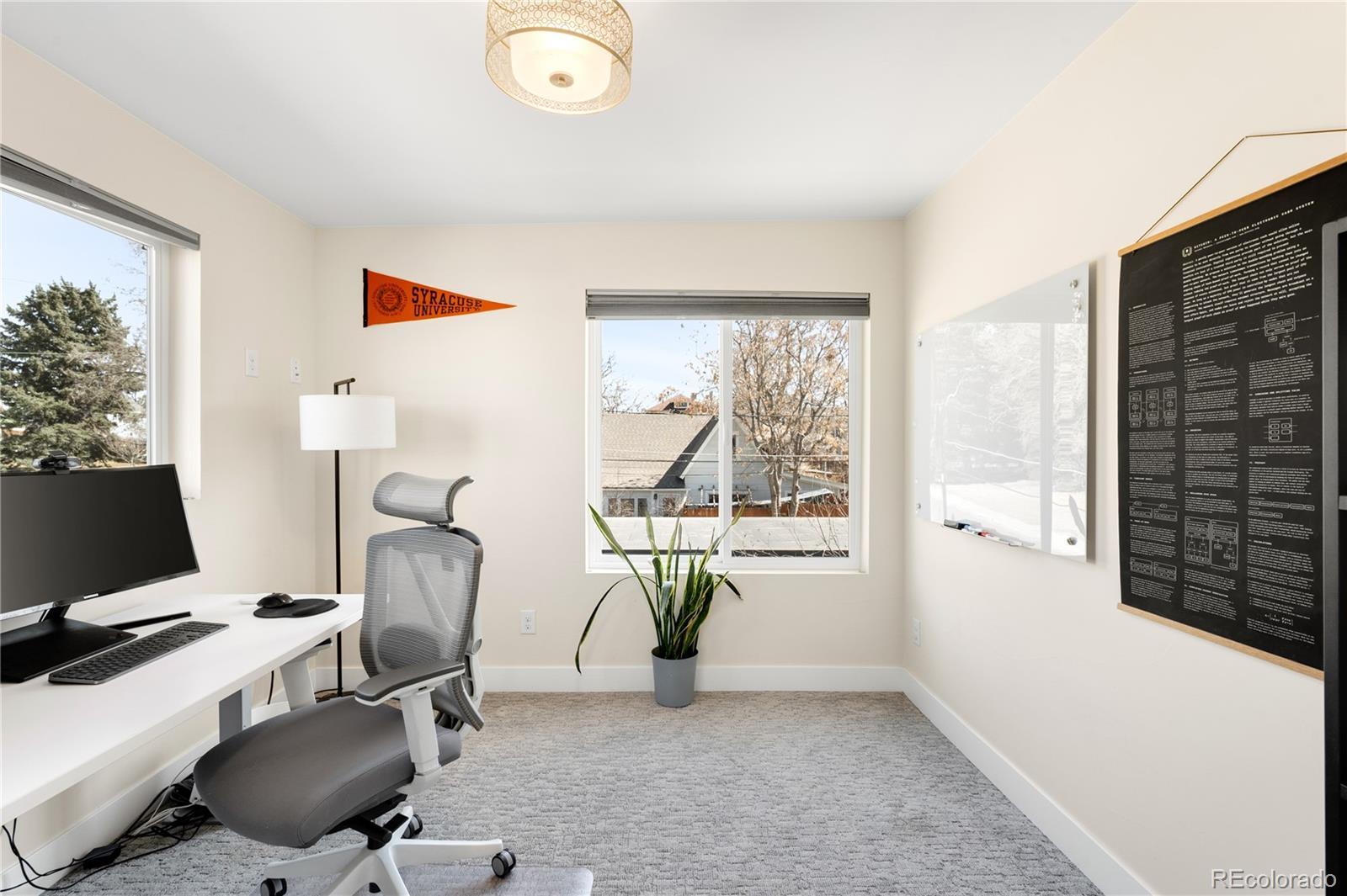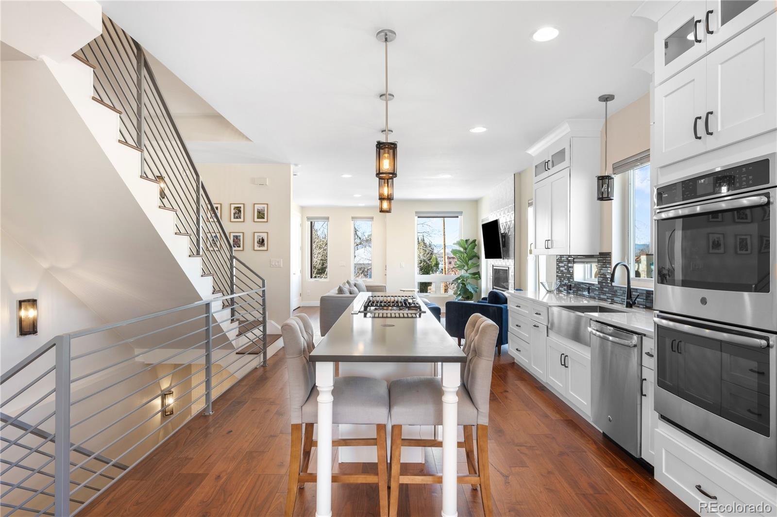 Striking mountain views and unparalleled access to nature define this stunning Harvard Gulch/Rosedale townhome, ideally positioned across from three beautiful parks—Harvard Gulch, Rosedale, and Kunming. Perched on a quiet corner, this haven is bathed in natural light and offers four bedrooms, five baths, and four thoughtfully designed levels of modern luxury. The open main level features gorgeous hardwood floors, a bright living area with mountain views, a cozy fireplace, and a gourmet kitchen with a large center island, sleek countertops, stainless steel appliances, and a dedicated dining space. A pantry, mudroom, and stylish powder bath provide both functionality and convenience. Upstairs, the primary suite is a serene retreat showcasing breathtaking Front Range views, dual closets, a private balcony, and spa-inspired bath. A second bedroom, full bathroom, and convenient laundry area complete this level. The third level showcases stunning mountain views and offers a versatile bedroom/office, a full bath, and a bonus lounge area featuring a wet bar and a custom oversized picture window that floods the space with natural light. A rooftop deck completes this level, providing sweeping views of the mountains that will leave you in awe. The finished basement provides additional flexible living space, including a fourth bedroom, full bath, and spacious recreation room along with ample storage. Dual HVAC zones ensure year-round comfort. Ideally located near South Broadway and Platt Park’s vibrant dining, shopping, and breweries, as well as AdventHealth Porter and Swedish Medical Complexes. Experience the beauty and lifestyle this remarkable property has to offer!