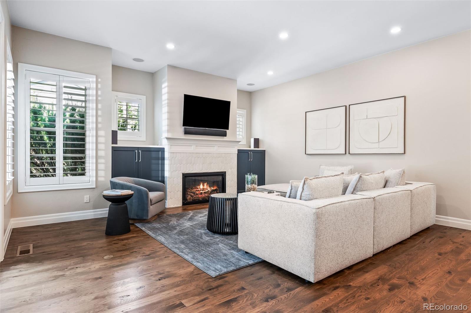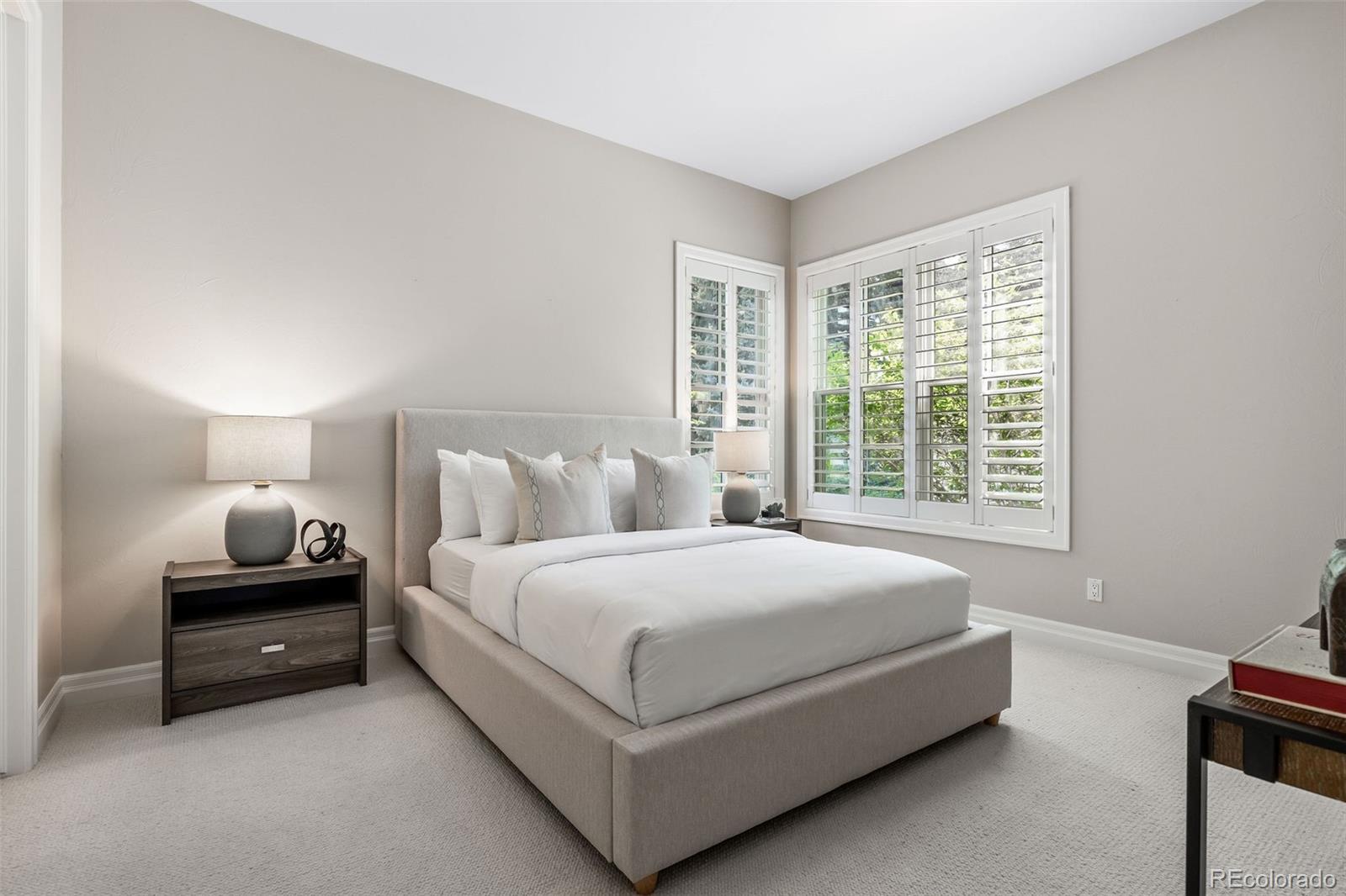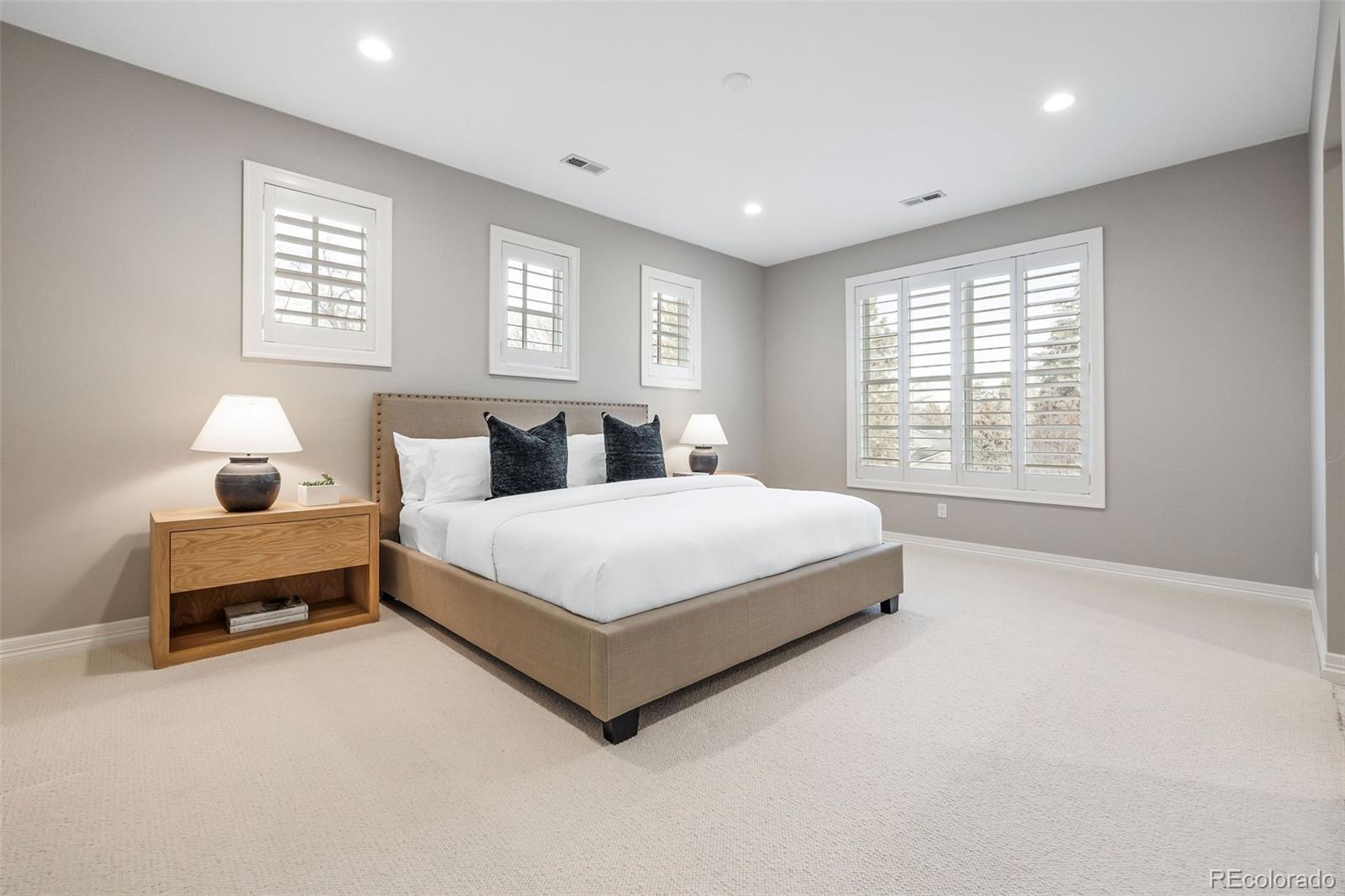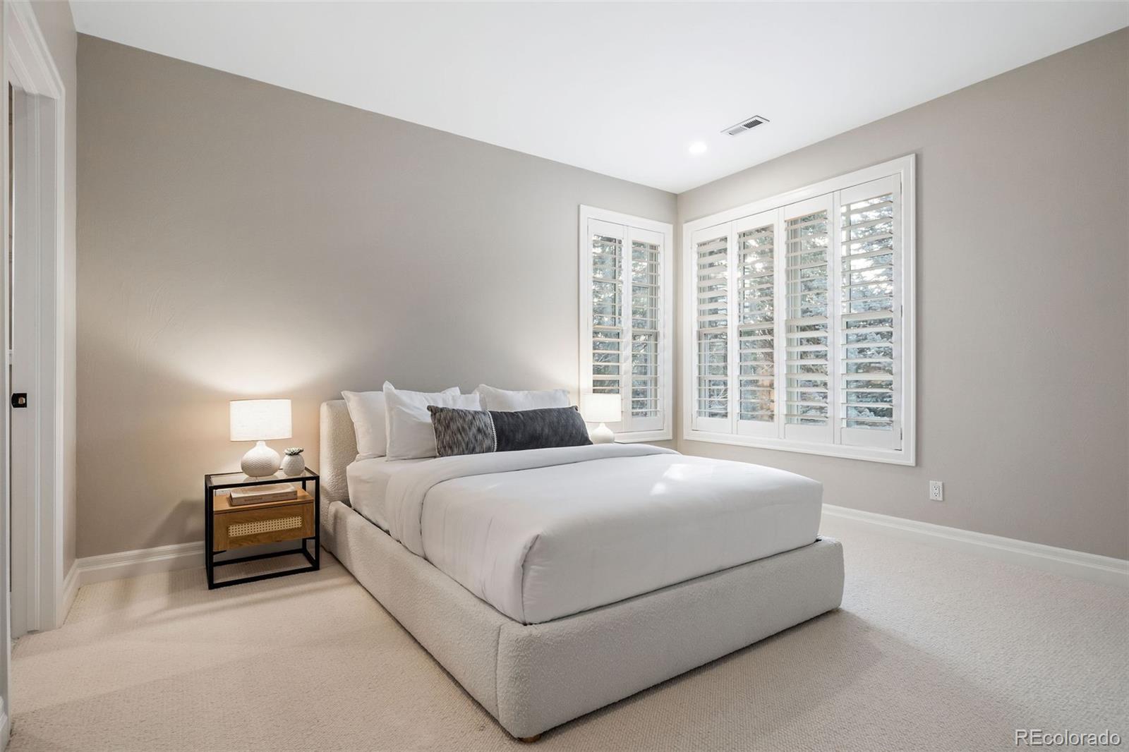 Beautifully proportioned Crestmoor residence set in an exceptionally private setting, thoughtfully updated with a new kitchen and fully renovated baths (2018–2019). Classic architecture is seamlessly paired with refined, designer-selected finishes throughout. Sun-filled interiors feature hardwood floors, soaring ceilings, elegant paint treatments, statement lighting, and plantation shutters. A gracious foyer opens to formal living and dining rooms, anchored by a marble gas fireplace. The custom Thurston kitchen is a true centerpiece, showcasing dual islands, quartzite countertops, Wolf appliances, a walk-in pantry, and butler’s pantry, flowing effortlessly into the breakfast area and family room with fireplace, built-ins, and glass doors leading to the covered patio with barbecue and firepit. The main level also includes a private study with patio access, guest suite with new ¾ bath, chic powder room, and mudroom. Upstairs, four spacious en-suite bedrooms await, highlighted by the stunning primary retreat featuring grass-cloth wallpaper, a dramatic see-through fireplace to the spa-like bath, and French doors opening to a Dasso bamboo-decked patio. The luxurious five-piece primary bath offers herringbone tile floors, steam shower, heated towel racks, and dual sink areas with private patio access. Additional bedrooms include an en-suite guest room and two bedrooms with updated vanities and shared bath. Sunny loft and convenient laundry complete the upper level. The expansive lower level is designed for entertaining, with a recreation room, game room, fitness area, new ¾ bath, and abundant storage. Enhanced with newer HVAC systems, tankless water heaters, Control4 automation, solar panels, four Tesla Powerwall batteries, and a three-car garage. Situated on a generous 12,231-square-foot lot, this exceptional home offers remarkable indoor-outdoor living and captures Denver living at its finest.