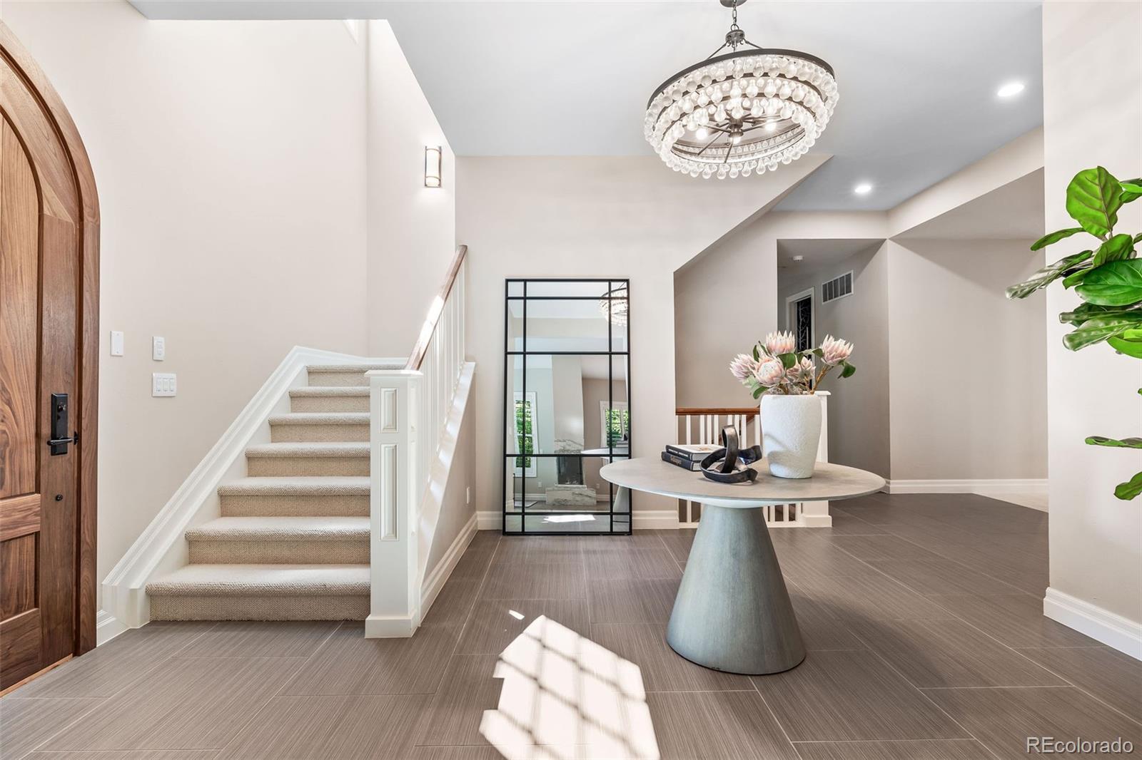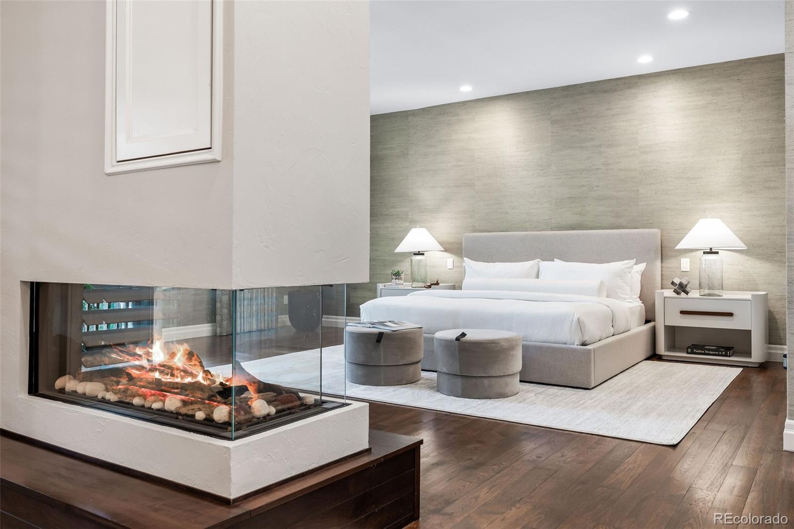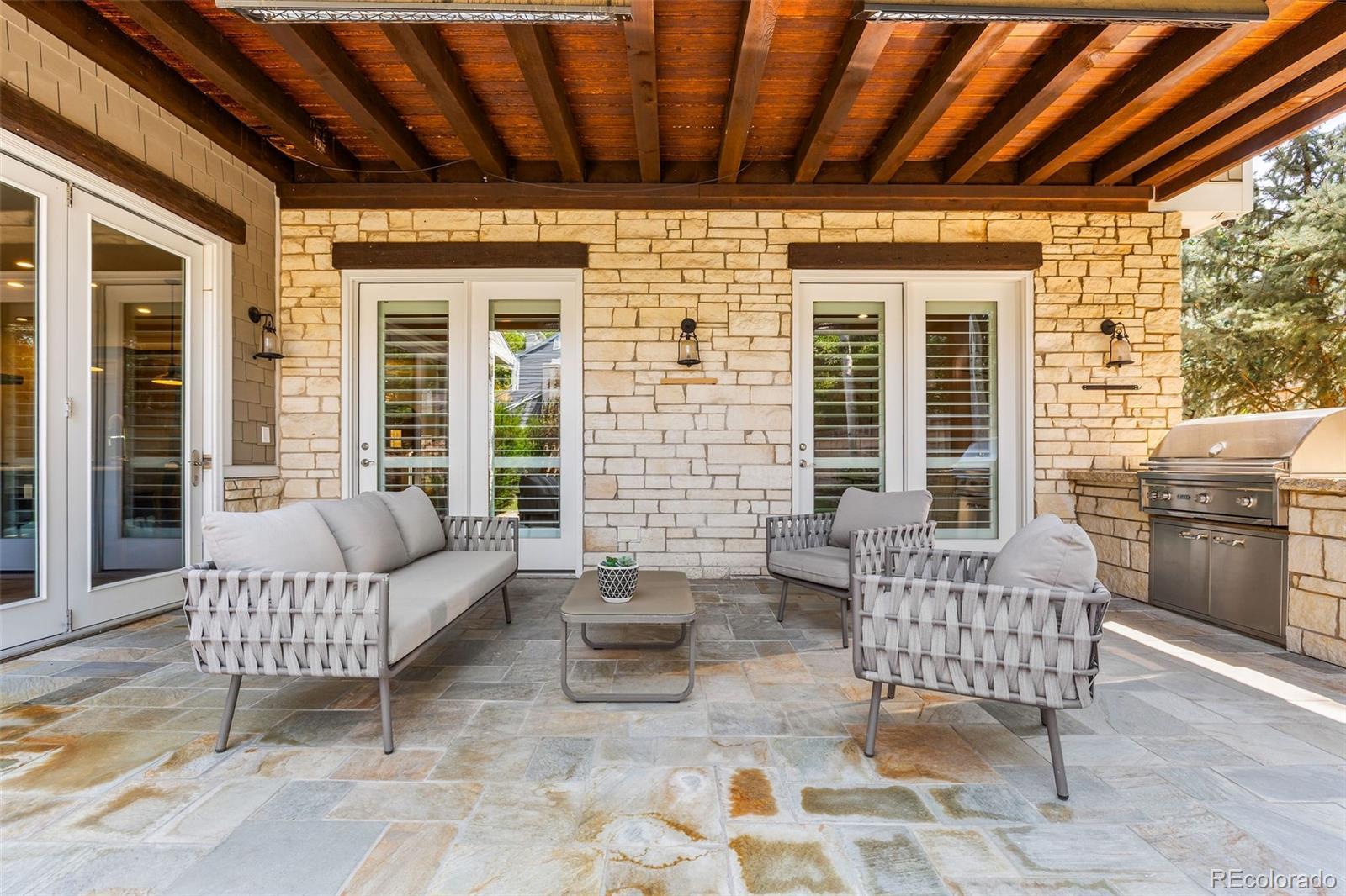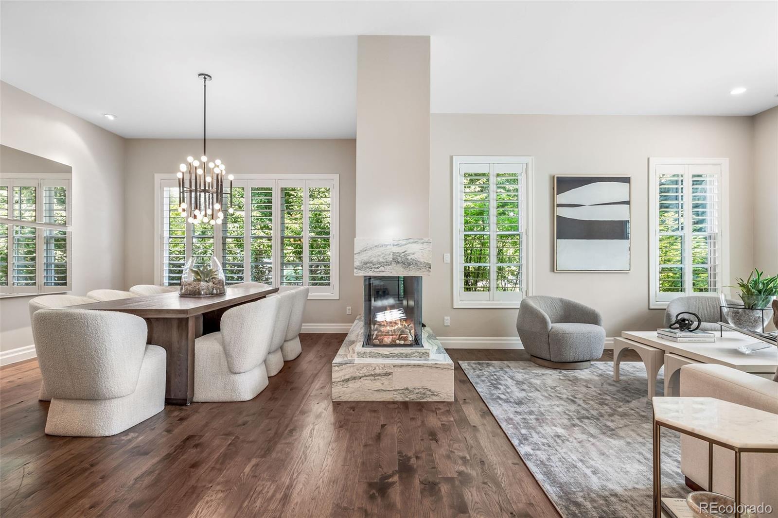 Beautifully proportioned Crestmoor residence set in an exceptionally private setting, thoughtfully updated with a new kitchen and fully renovated baths (2018–2019). Classic architecture is seamlessly paired with refined, designer-selected finishes throughout. Sun-filled interiors feature hardwood floors, soaring ceilings, elegant paint treatments, statement lighting, and plantation shutters. A gracious foyer opens to formal living and dining rooms, anchored by a marble gas fireplace. The custom Thurston kitchen is a true centerpiece, showcasing dual islands, quartzite countertops, Wolf appliances, a walk-in pantry, and butler’s pantry, flowing effortlessly into the breakfast area and family room with fireplace, built-ins, and glass doors leading to the covered patio with barbecue and firepit. The main level also includes a private study with patio access, guest suite with new ¾ bath, chic powder room, and mudroom. Upstairs, four spacious en-suite bedrooms await, highlighted by the stunning primary retreat featuring grass-cloth wallpaper, a dramatic see-through fireplace to the spa-like bath, and French doors opening to a Dasso bamboo-decked patio. The luxurious five-piece primary bath offers herringbone tile floors, steam shower, heated towel racks, and dual sink areas with private patio access. Additional bedrooms include an en-suite guest room and two bedrooms with updated vanities and shared bath. Sunny loft and convenient laundry complete the upper level. The expansive lower level is designed for entertaining, with a recreation room, game room, fitness area, new ¾ bath, and abundant storage. Enhanced with newer HVAC systems, tankless water heaters, Control4 automation, solar panels, four Tesla Powerwall batteries, and a three-car garage. Situated on a generous 12,231-square-foot lot, this exceptional home offers remarkable indoor-outdoor living and captures Denver living at its finest.