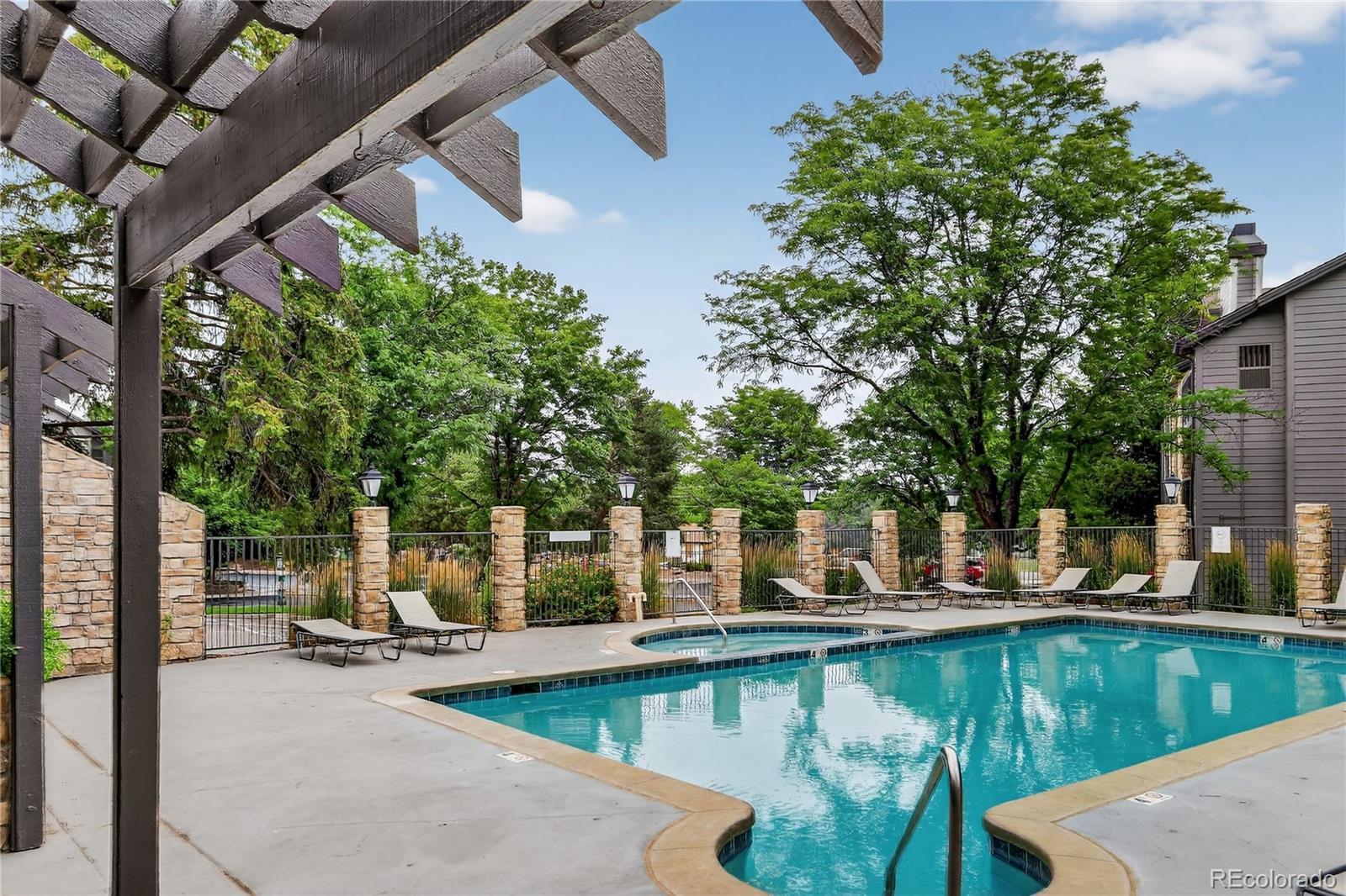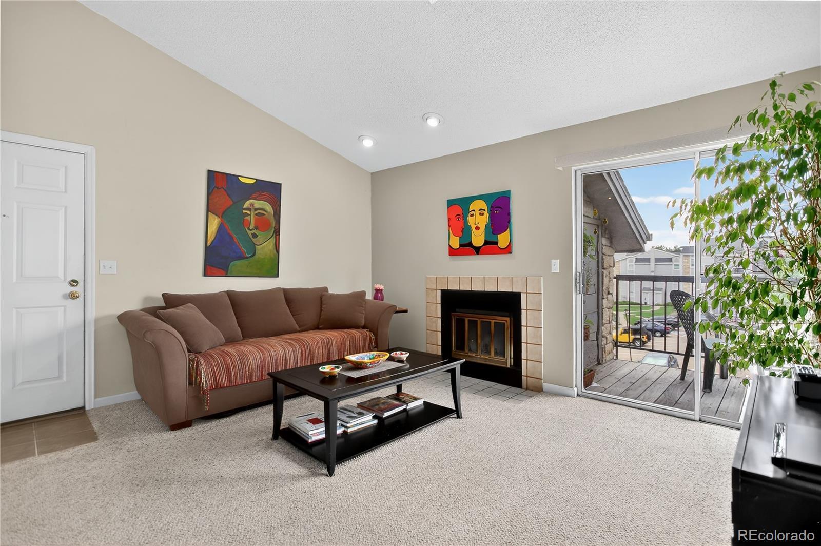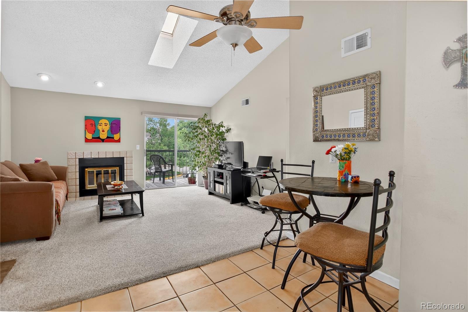 This welcoming condo is ready for its next owner! This condo offers two bedrooms and one full bath. It is one of only several layouts in the community with no one above it making for a quiet living space. Other features of this home include a vaulted ceiling with skylight, and wood-burning fireplace in the living room, a comfortable sized kitchen, in-unit laundry (washer and dryer stay), and a newer water heater. The condo also offers its own balcony with access from the living room or the primary bedroom. Spend warm Summer days soaking up the sun at the community pool. Conveniently located nearby the Highline Canal Trail System, Cherry Creek Country Club, Restaurants, Parks, and Schools. Some furniture may be negotiable. Don't miss out on this one!