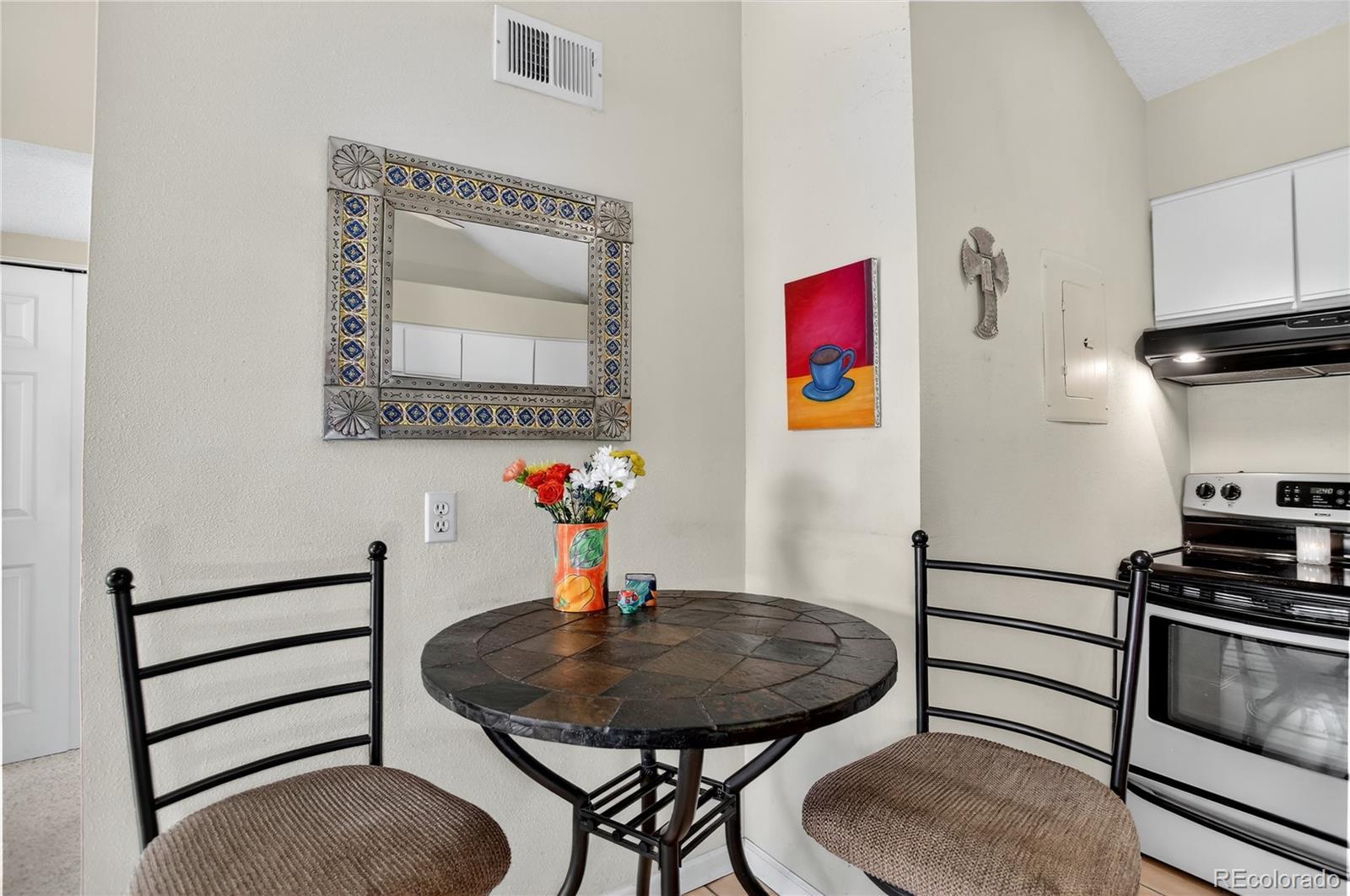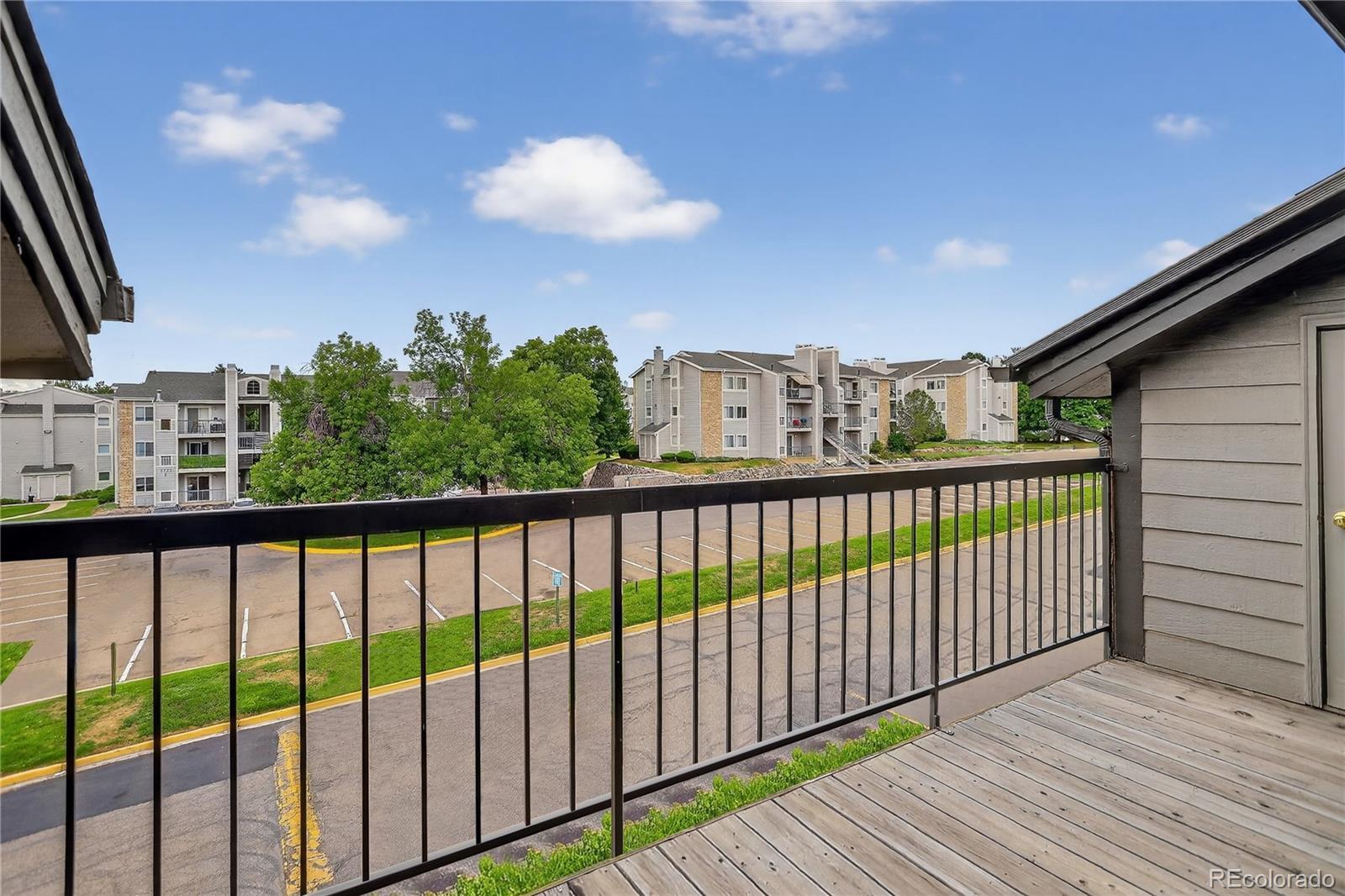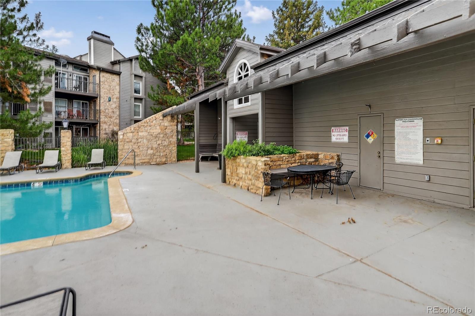This welcoming condo is ready for its next owner! This condo offers two bedrooms and one full bath. It is one of only several layouts in the community with no one above it making for a quiet living space. Other features of this home include a vaulted ceiling with skylight, and wood-burning fireplace in the living room, a comfortable sized kitchen, in-unit laundry (washer and dryer stay), and a newer water heater. The condo also offers its own balcony with access from the living room or the primary bedroom. Spend warm Summer days soaking up the sun at the community pool. Conveniently located nearby the Highline Canal Trail System, Cherry Creek Country Club, Restaurants, Parks, and Schools. Some furniture may be negotiable. Don't miss out on this one!