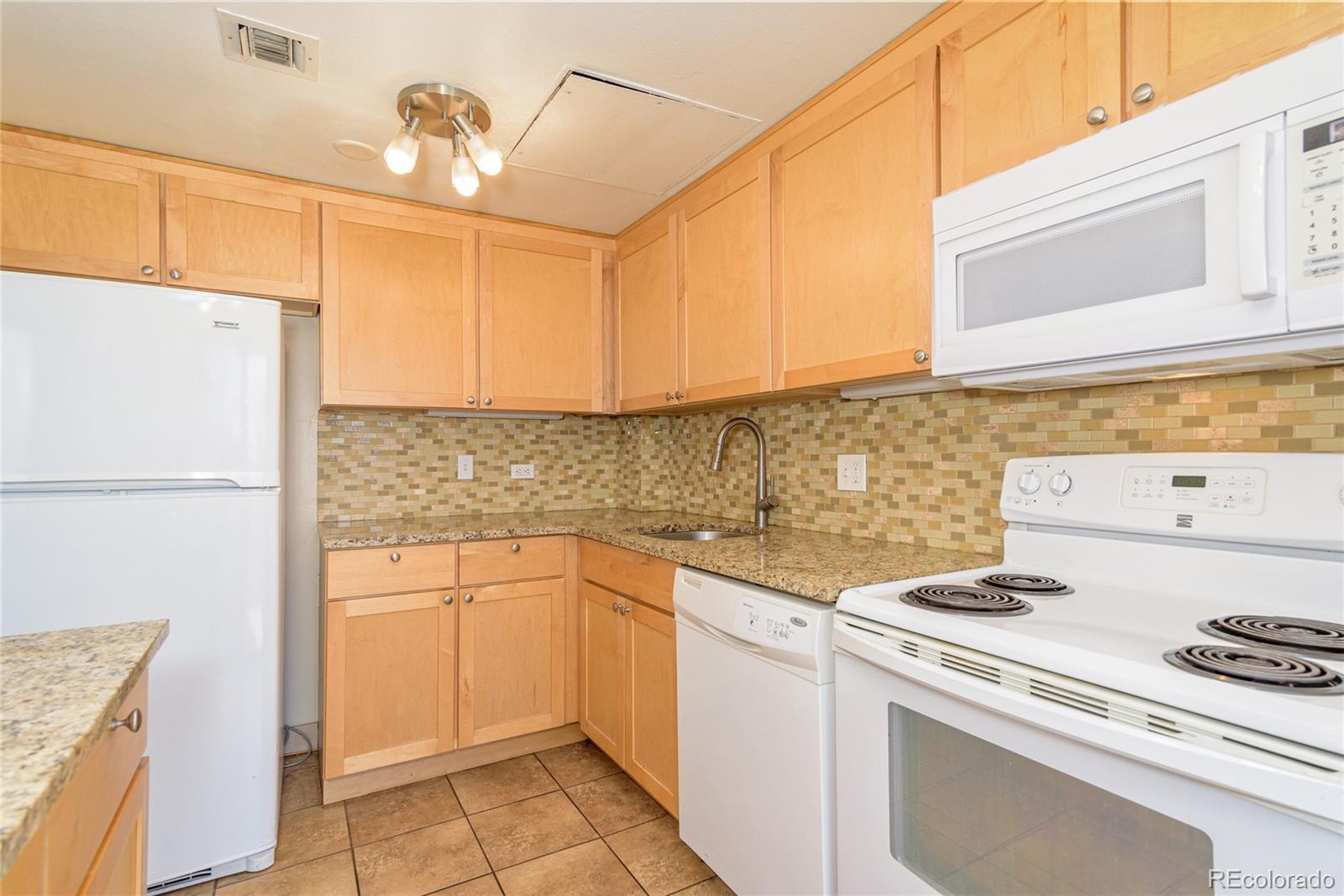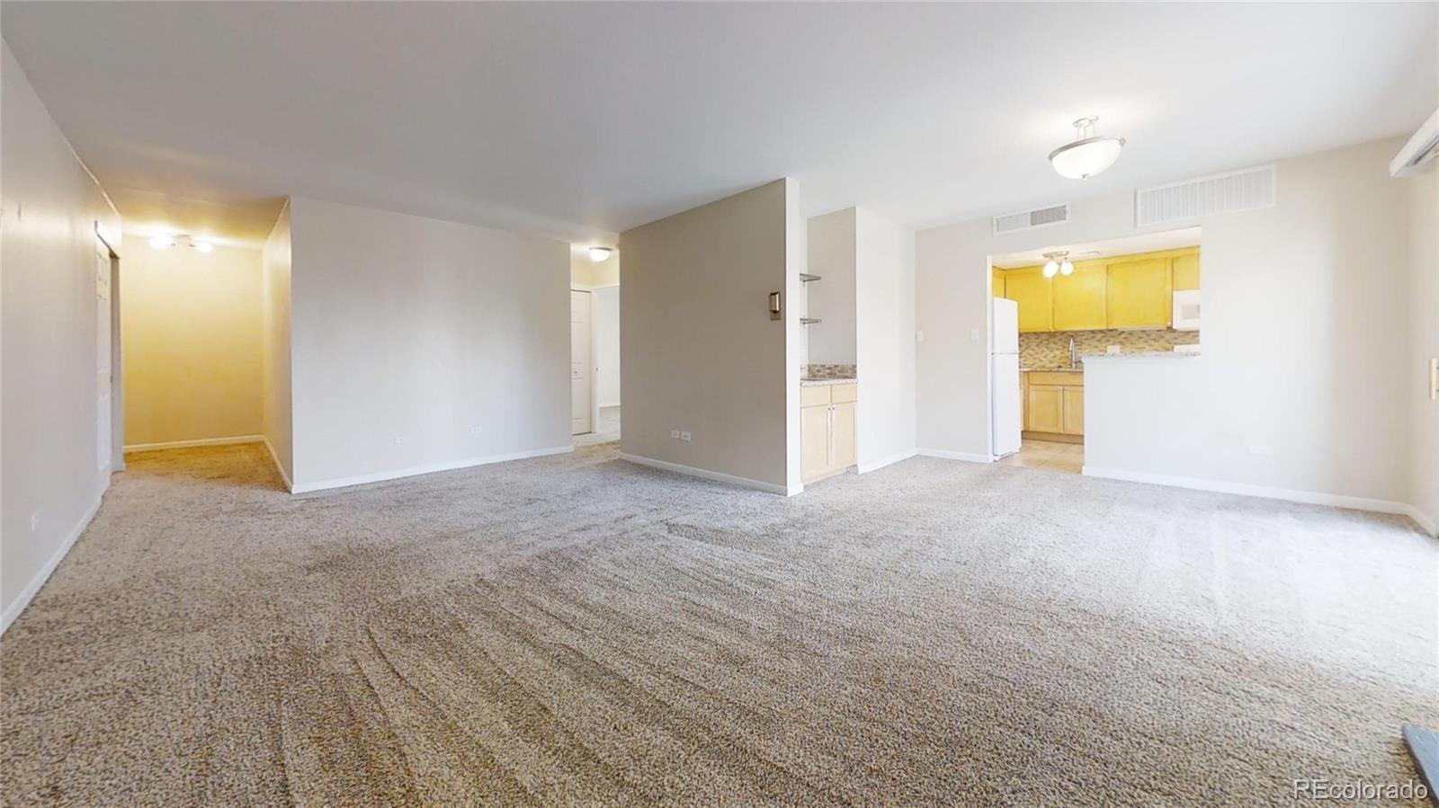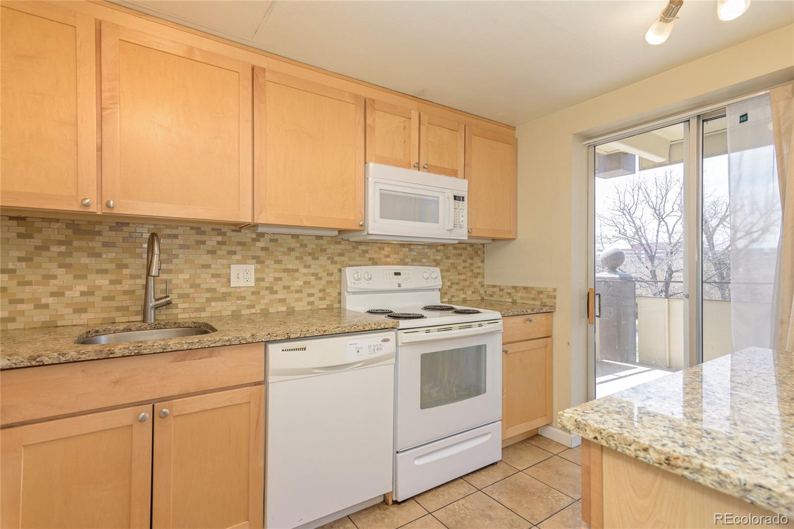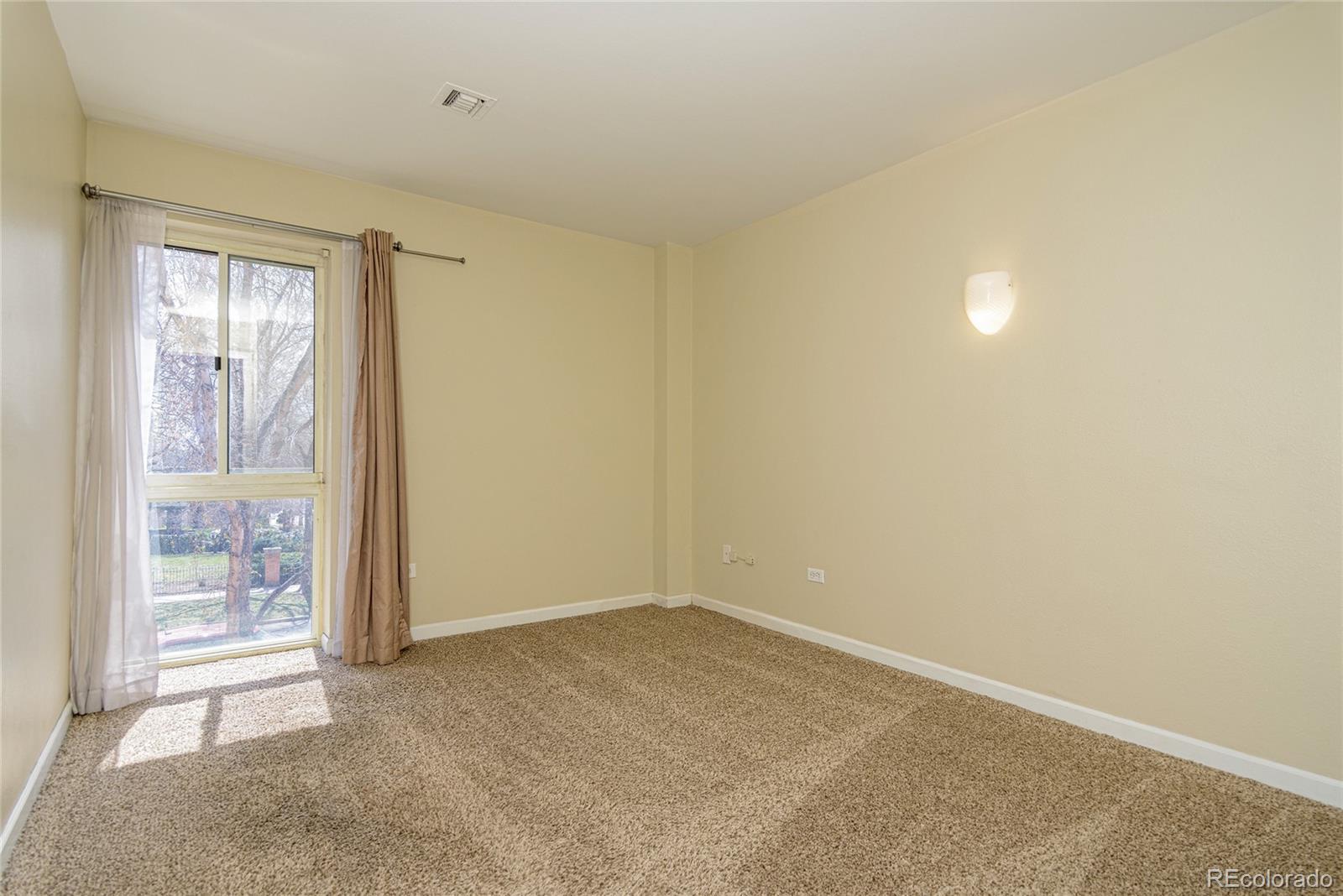 Discover this bright and spacious southwest-facing end unit, conveniently located on the second floor in the heart of Governor’s Park. Access your home easily via the lobby stairs or a secured back entrance, with two elevators also available on each floor. Inside, natural light floods the open floor plan, beginning with an inviting foyer and a large coat/storage closet. The generous living room features a classic brick fireplace with an electric insert, while the dining area offers built-in cabinetry and a wet bar—perfect for entertaining. Two sets of sliding glass doors open to a large balcony overlooking a tree-lined street, ideal for relaxing, entertaining, or enjoying a sunset. The kitchen boasts upgraded cabinetry, under-cabinet lighting, ample counter space, and a second balcony entrance for seamless indoor-outdoor flow. The primary suite includes two large closets leading to a full bath. A second bedroom with a walk-in closet is conveniently located across from the second bath. Recent updates throughout the unit include new carpet, updated tile, fresh paint, and new blinds. Parking is effortless with one deeded garage space (#21) in the secured parking area. Enjoy first-floor amenities such as an indoor pool, hot tub, sauna, steam room, private patio, fitness center, and community room, all directly below the unit. On-site management is available Monday through Friday. This prime location is just steps from shops, groceries, restaurants, parks, trails, and Trader Joe’s, with easy access to downtown and RTD. The hallway carpet on the second floor was also recently replaced.