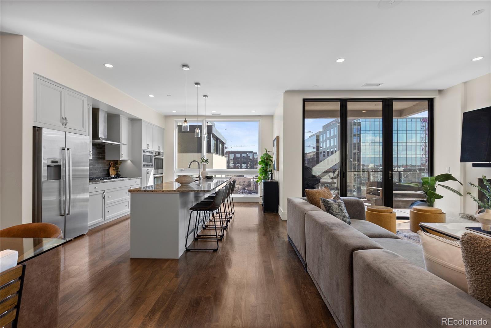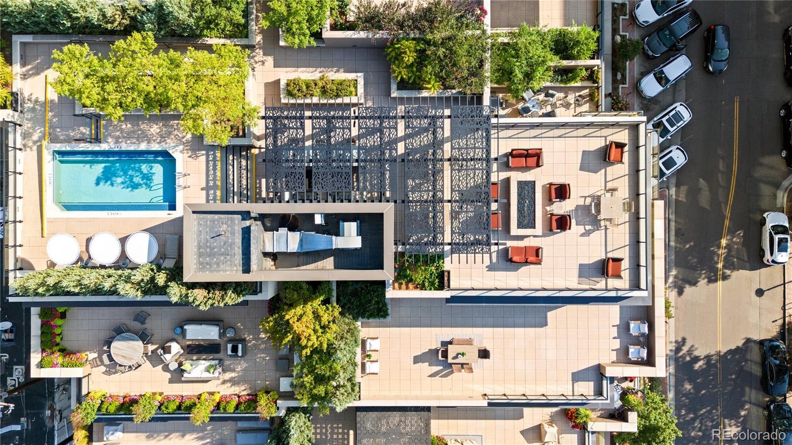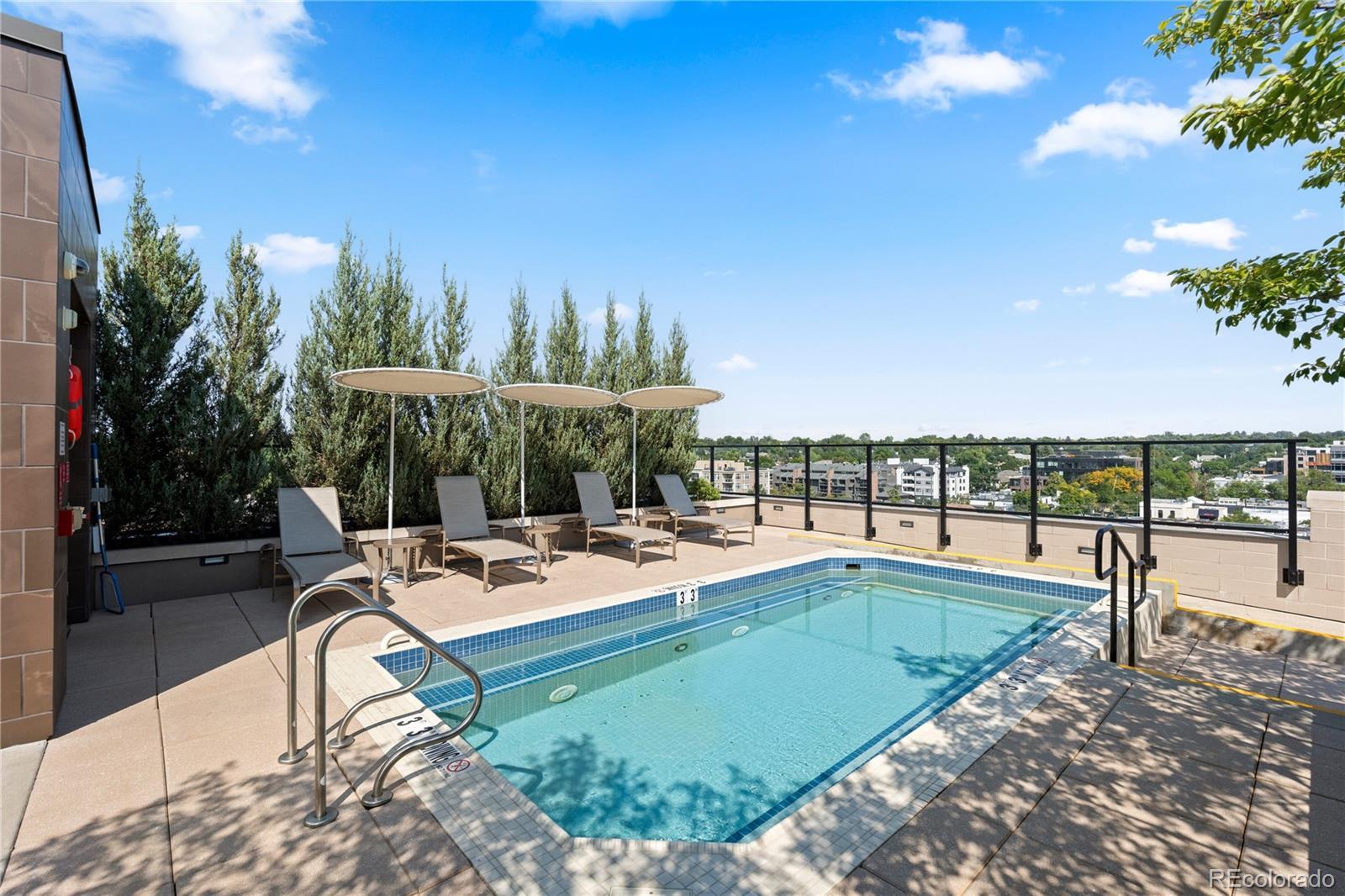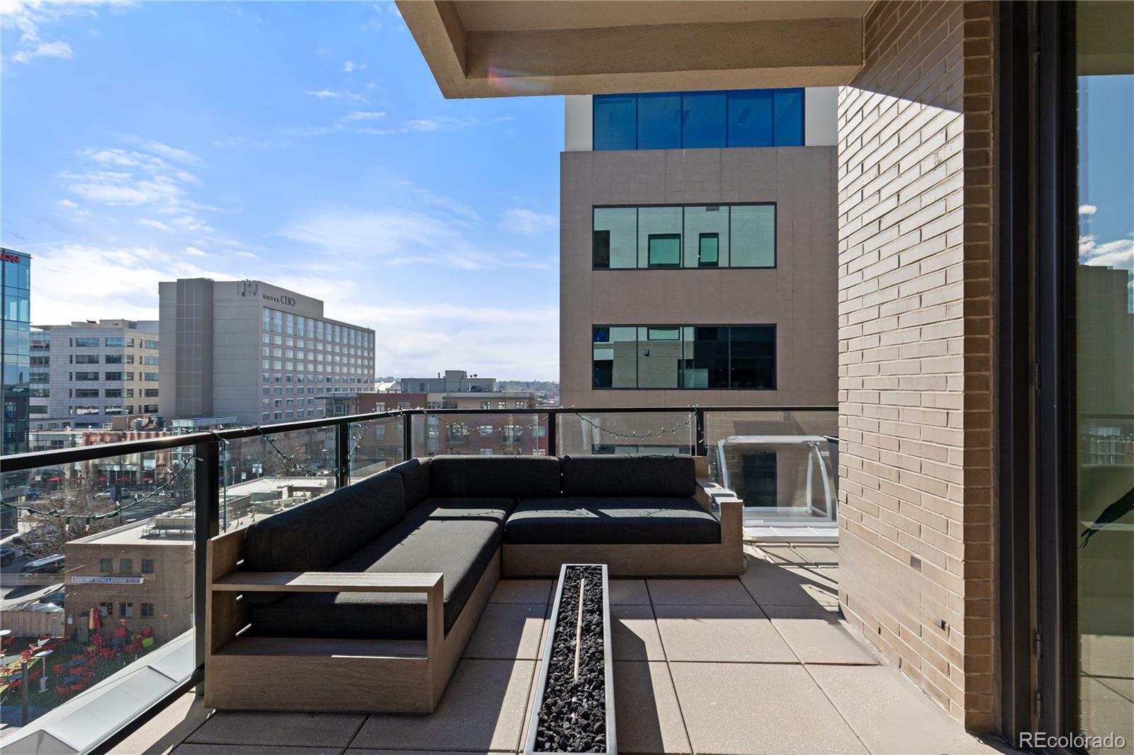 Welcome to Residence 507 at 250 Columbine, a sophisticated southeast-corner home offering 1,459 square feet of beautifully curated living space. From the moment you enter, the residence reveals a harmonious blend of modern design, abundant natural light & refined finishes that define upscale Cherry Creek living. The open floor plan is framed by floor-to-ceiling windows & enhanced by folding glass NanaWall doors, creating a seamless connection between the main living area & private terrace. A sleek Napoleon ribbon glass fireplace anchors the living room, adding both warmth & architectural elegance. Outside the generous 186-square-foot terrace, is complete with a grill, lounging sofa & firepit—a cozy extension of the home perfect for year-round enjoyment. The large kitchen is a showpiece, featuring top-of-the-line appliances & stunning granite island with ample space for both cooking & gathering. With a separate formal dining space providing an elegant setting for entertaining. The primary suite is a serene retreat, boasting a spa-like 5-piece bathroom with dual sinks, separate soaking tub & custom walk-in closet. The second bedroom provides comfort & privacy for guests, with easy access to a beautifully appointed bathroom. Additional features include hardwood flooring, automatic shades & thoughtful upgrades throughout. A full-sized laundry room, 2 reserved parking spaces & a separate storage locker complete the offering. Residents enjoy premier amenities, including a spacious gym & resort-style rooftop with a plunge pool, outdoor kitchen & lounge areas—offering some of the best views in Cherry Creek. A private lobby & concierge service welcome residents into this enviable address. Just steps away from world-class dining, luxury boutiques & art galleries of Cherry Creek North, Residence 507 offers a lifestyle defined by sophistication, comfort, and unmatched convenience.