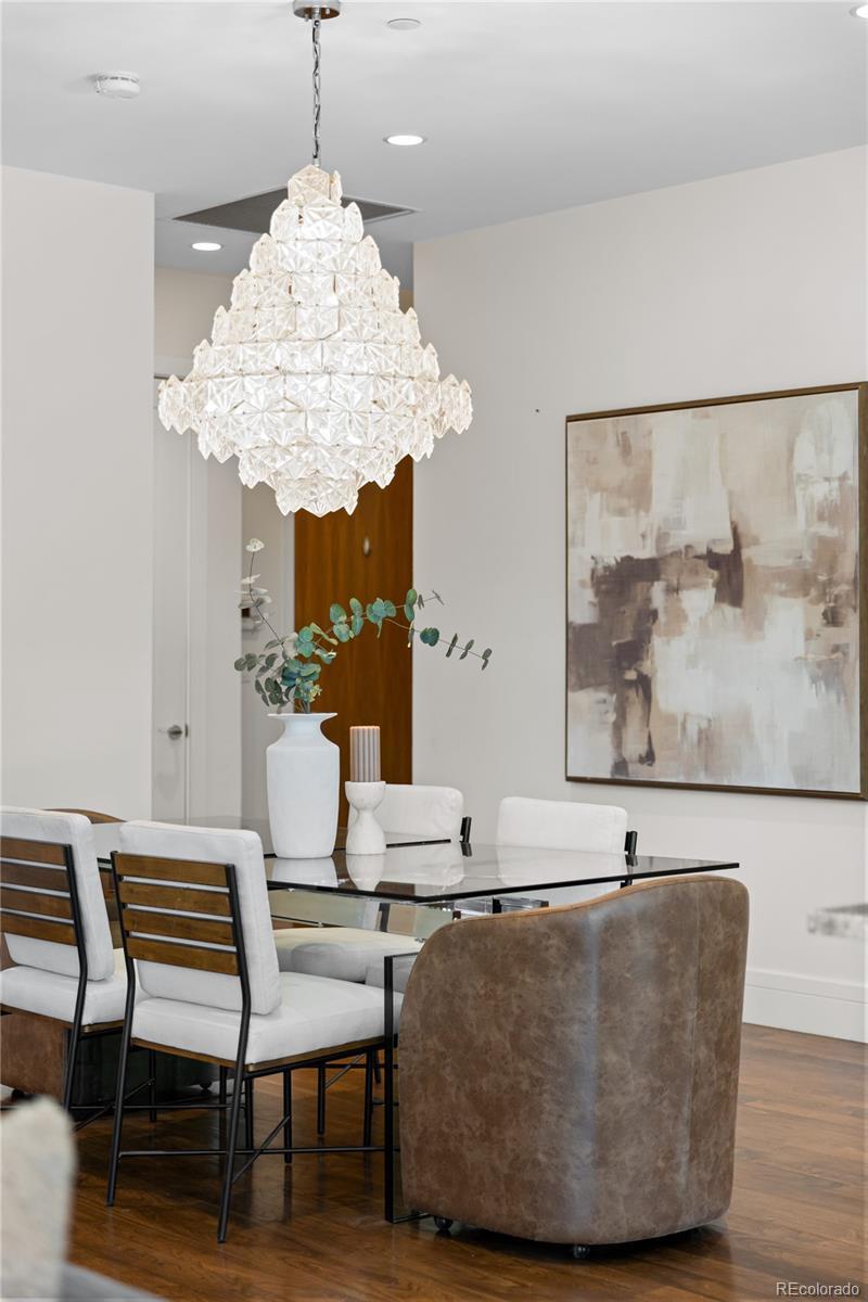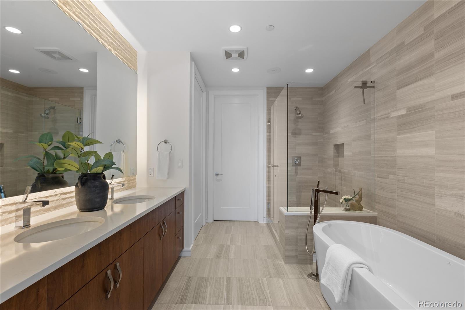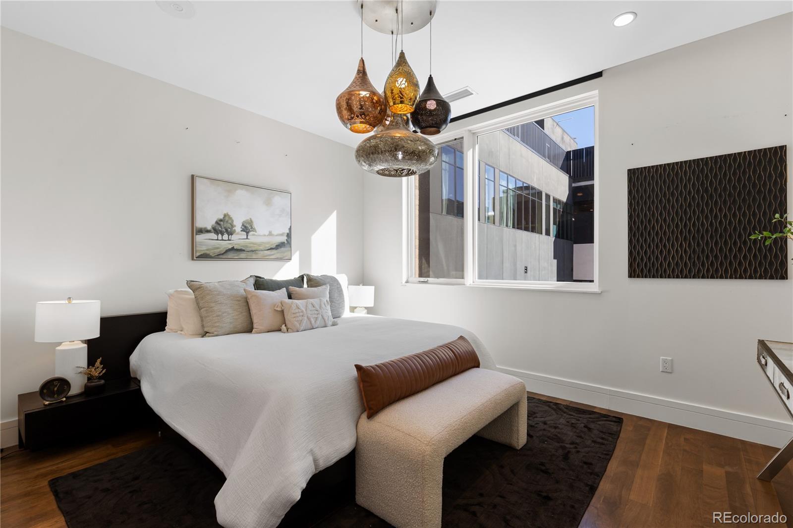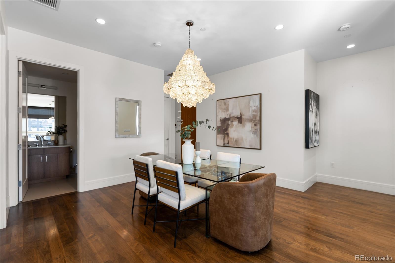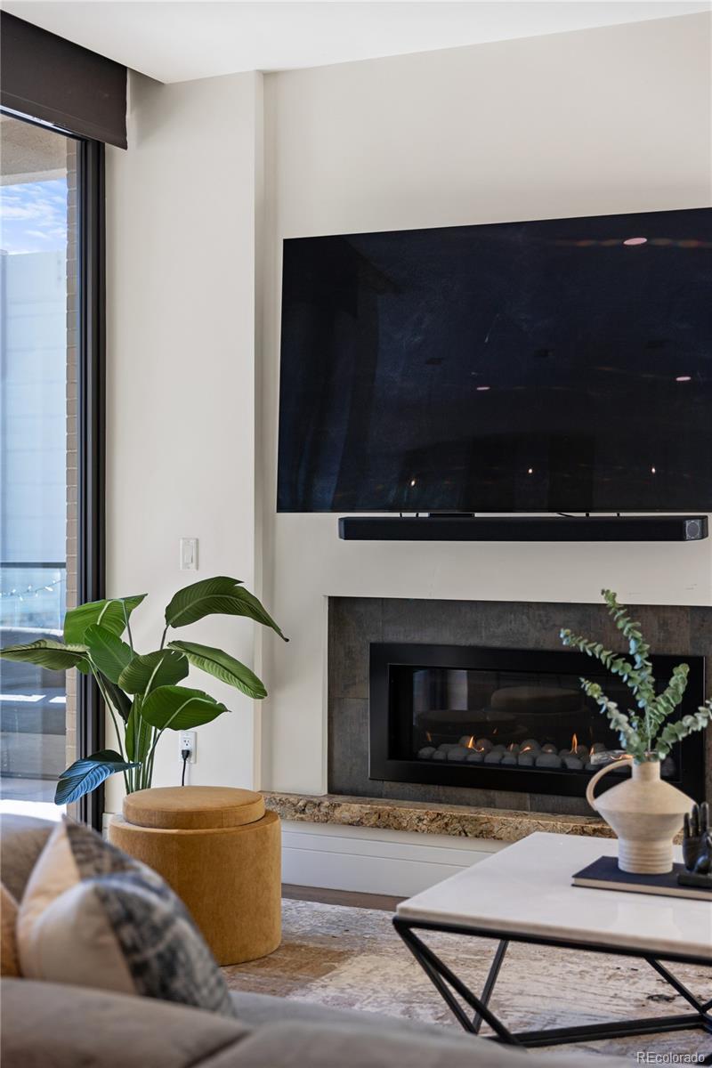 Welcome to Residence 507 at 250 Columbine, a sophisticated southeast-corner home offering 1,459 square feet of beautifully curated living space. From the moment you enter, the residence reveals a harmonious blend of modern design, abundant natural light & refined finishes that define upscale Cherry Creek living. The open floor plan is framed by floor-to-ceiling windows & enhanced by folding glass NanaWall doors, creating a seamless connection between the main living area & private terrace. A sleek Napoleon ribbon glass fireplace anchors the living room, adding both warmth & architectural elegance. Outside the generous 186-square-foot terrace, is complete with a grill, lounging sofa & firepit—a cozy extension of the home perfect for year-round enjoyment. The large kitchen is a showpiece, featuring top-of-the-line appliances & stunning granite island with ample space for both cooking & gathering. With a separate formal dining space providing an elegant setting for entertaining. The primary suite is a serene retreat, boasting a spa-like 5-piece bathroom with dual sinks, separate soaking tub & custom walk-in closet. The second bedroom provides comfort & privacy for guests, with easy access to a beautifully appointed bathroom. Additional features include hardwood flooring, automatic shades & thoughtful upgrades throughout. A full-sized laundry room, 2 reserved parking spaces & a separate storage locker complete the offering. Residents enjoy premier amenities, including a spacious gym & resort-style rooftop with a plunge pool, outdoor kitchen & lounge areas—offering some of the best views in Cherry Creek. A private lobby & concierge service welcome residents into this enviable address. Just steps away from world-class dining, luxury boutiques & art galleries of Cherry Creek North, Residence 507 offers a lifestyle defined by sophistication, comfort, and unmatched convenience.