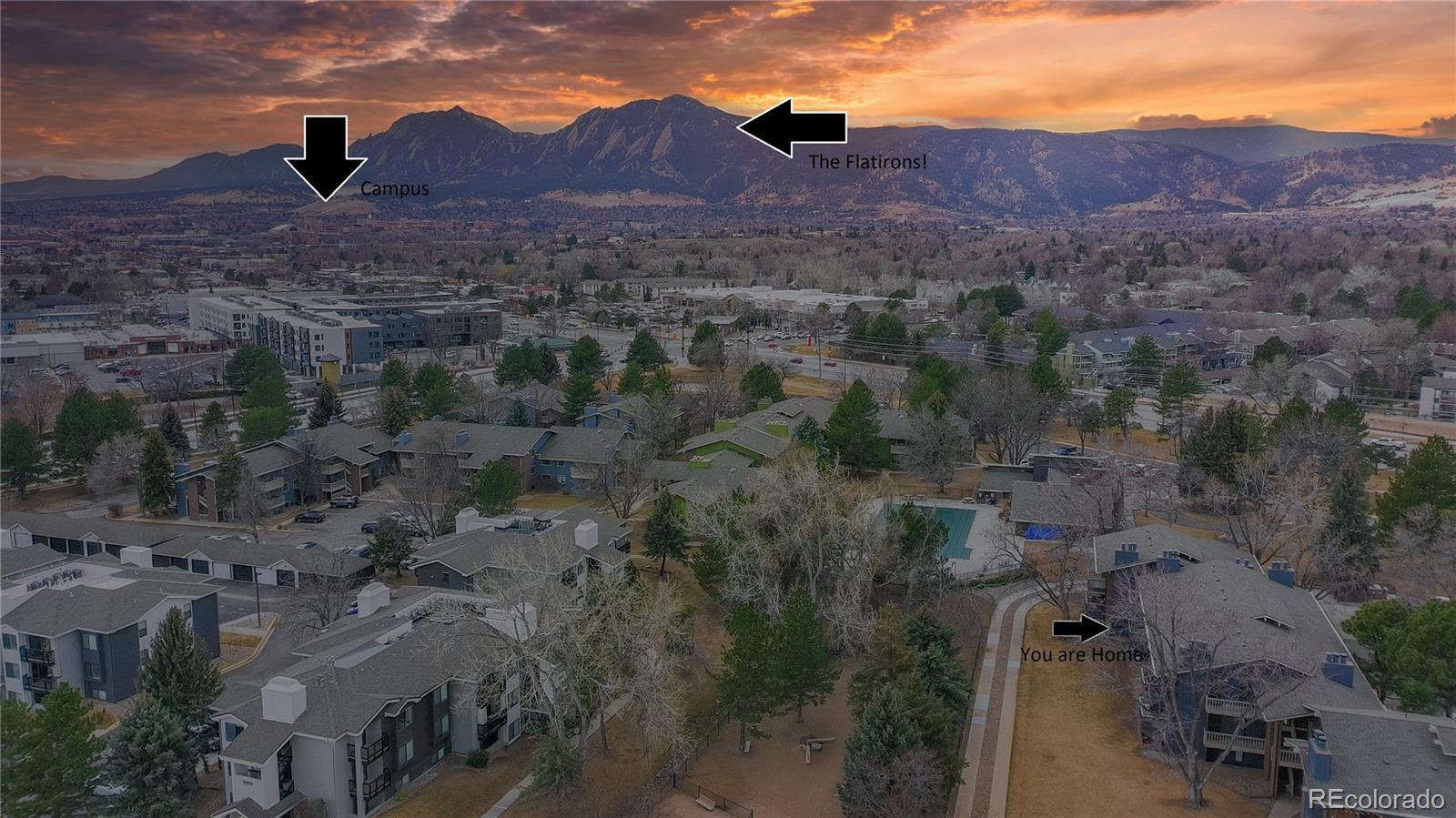 This flagship premier condo in Aspen Grove is finally on the market! This two-bedroom, two-bathroom, second-level condo is perched delightfully overlooking both the community park and the large community pool. A half-flight of stairs is all that stands between you and this spacious open floor plan with a balcony overlooking the pool and green area. The home is refreshed, turnkey, and ready for your arrival. Upon entering your new home, the south-facing windows escort vibrant sunbeams which warm and welcome you into the expansive entertaining space complete with a large fireplace, balcony, and grand window. The kitchen, dining and living room coalesce with the balcony, forming a cohesive entertaining space. Just down the hall two large bedrooms with ample closets and bathrooms make for cozy private retreats. This home has been recently updated with fresh molding, new doorknobs, new paint, and new flooring throughout. Ceiling fans in every room keep that fresh mountain air circulating in this vast open floor plan. Stainless appliances and an in-unit washer/dryer ensure stylish comfort and convenience. An additional storage closet is available in the basement, and a convenient covered parking space is included in addition to the numerous visitor parking spots nearby. The complex is enchanted with trees, parks, winding paths, and a dog park right outside. When the heat picks up, the pool is a stone's throw away for gatherings or maybe just to relax and unwind. This is a stellar location with access to the 28th St. bus stop a few hundred feet away. Easy access to shopping, nightlife, campus, and the mountains, as well as many northern bike routes. Enjoy this community with its common areas, and this unit only has half a flight of stairs to the 2nd level. Dogs and cats allowed and encouraged.