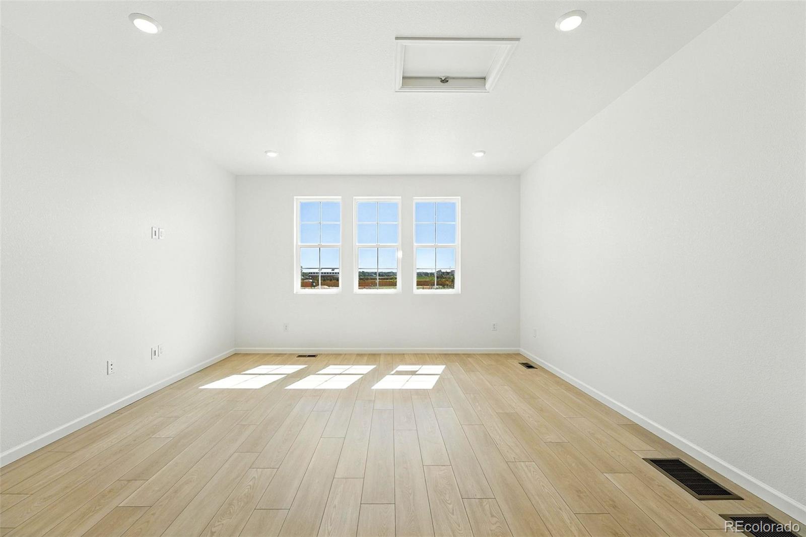 What's Special: Dedicated Study | Loft | Oversized Patio | Greenbelt Lot | Mountain View. New Construction - Ready Now! Built by America's Most Trusted Home Builder. Welcome to the Meridian at 1185 Prospect Aly in Farmlore. The spacious great room flows into the dining area and kitchen, creating a comfortable setting for everyday living and easy entertaining. Just down the hall, a bright private study offers a quiet retreat, while the functional garage entry across the way is ready for your personal touch. Upstairs, you’ll find a generous primary suite, three secondary bedrooms, a full bath, a loft, and a convenient laundry room. Set in Brighton’s newest community, Farmlore blends suburban charm with access to downtown Brighton, Denver, and beyond. Residents enjoy three neighborhood parks, a rec center with an outdoor pool, over 11 miles of trails, and a restored farmhouse designed as a future hub for connection and creativity—just 2 miles from Barr Lake. Additional highlights include: gas range, patio, loft, additional sink at upstairs secondary bath, craftsman railing and spindles at stairs. Photos are for representative purposes only. MLS#3031651