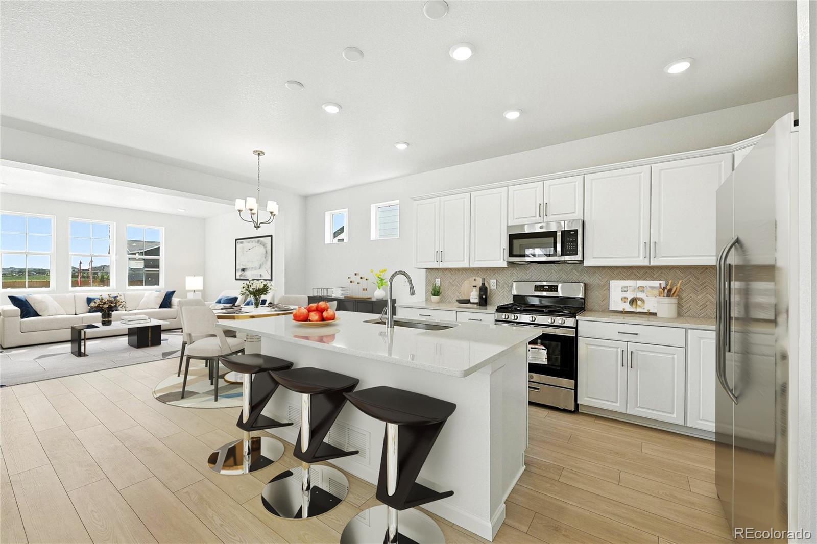 What's Special: Dedicated Study | Loft | Oversized Patio | Greenbelt Lot | Mountain View. New Construction - December Completion! Built by America's Most Trusted Homebuilder. Welcome to the Meridian at 1185 Prospect Aly in Farmlore. The spacious great room flows into the dining area and kitchen, creating a comfortable setting for everyday living and easy entertaining. Just down the hall, a bright private study offers a quiet retreat, while the functional garage entry across the way is ready for your personal touch. Upstairs, you’ll find a generous primary suite, three secondary bedrooms, a full bath, a loft, and a convenient laundry room. Set in Brighton’s newest community, Farmlore blends suburban charm with access to downtown Brighton, Denver, and beyond. Residents enjoy three neighborhood parks, a rec center with an outdoor pool, over 11 miles of trails, and a restored farmhouse designed as a future hub for connection and creativity—just 2 miles from Barr Lake. Additional highlights include: gas range, patio, loft, additional sink at upstairs secondary bath, craftsman railing and spindles at stairs. Photos are for representative purposes only. MLS#3031651