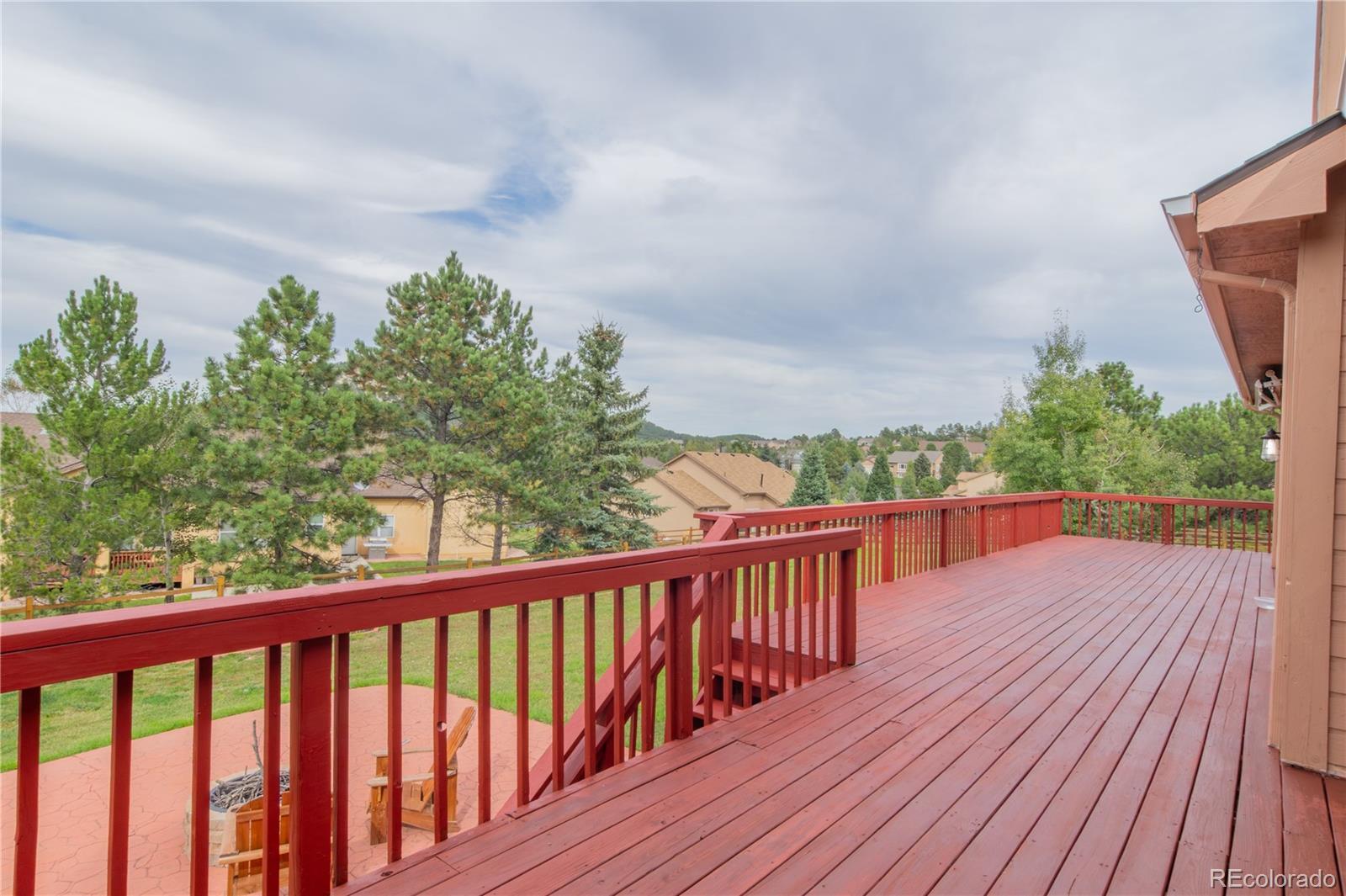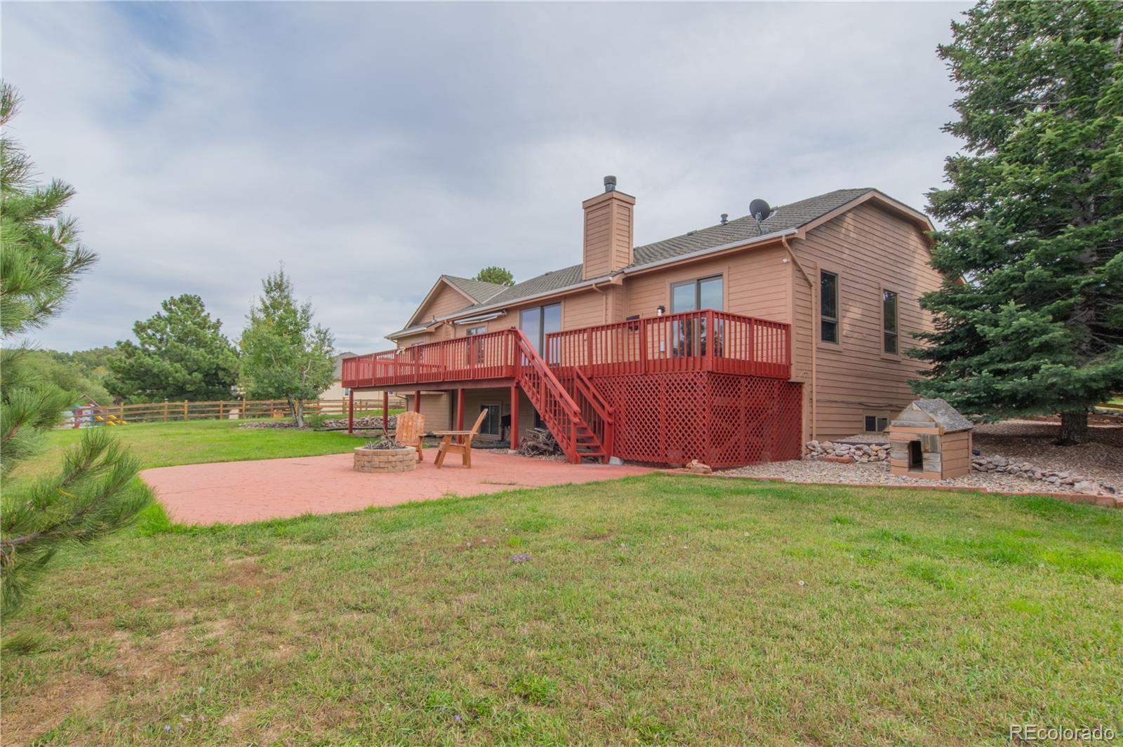 Welcome Home! Located in the highly desirable Woodmoor neighborhood, this stunning 5-bedroom, 4-bathroom custom home sits on over a half-acre lot. The breathtaking views from the back deck will leave you speechless! As you step inside, you’ll be impressed by the expansive family room with vaulted ceilings, a cozy fireplace, and a walkout to the oversized deck perfect for relaxing or entertaining. The chef’s kitchen is a dream, featuring a large island, stainless steel appliances, abundant storage, and a casual dining space with its own walkout to the deck. The spacious primary suite offers a private retreat with a beautiful fireplace, deck access, and a spa-like en suite bathroom complete with a soaking tub and walk-in shower. The lower level is designed for both relaxation and fun, with two generous living areas, another fireplace, and plenty of room for a pool table, gaming area, or home theater. Three large bedrooms are located on this level, each connected to a bathroom, providing comfort and privacy for family or guests. Step outside to the backyard oasis, where you can gather around the firepit in the evenings and enjoy the gorgeous views and peaceful surroundings. Conveniently located just two minutes from I-25, this home offers an easy commute to Denver or Colorado Springs. You’ll also love being close to hiking trails, shopping, and restaurants. Don’t miss the opportunity to make this exceptional home yours!
