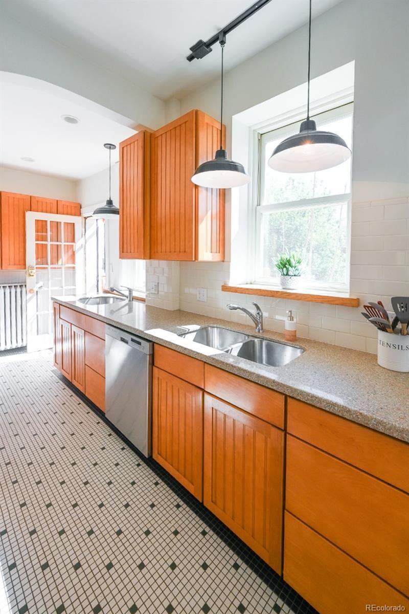 **Open house this Saturday (3/7) will be only opportunity to see both units**This City Park South duplex sits on a beautiful wide street less than two blocks from Denver’s largest park. Just steps to the Bluebird Theater Art District where you can see live music at this legendary venue or browse boutiques. Gyms, art studios, coffee shops and restaurants abound. This 1895 “Denver Square” top/down duplex has Victorian and period details which include carved corbels, dentil moulding, stained glass and fluted columns. Fresh landscaping and a bright bay window offer immediate curb appeal, but the real magic is the versatility of the space. Rent both units or live in one while your tenant offsets your mortgage for the ultimate house hack. The upper unit is a sun-drenched retreat featuring two bedrooms, tin ceilings, clawfoot tub, rare 2 bath configuration, and the convenience of in-unit laundry (new machines stay!). Soaring vaulted ceilings and exposed brick create an airy, sophisticated loft feel, while the large living room opens onto a private balcony. The lower unit (vacant 3/31) is being sold fully furnished and offers two spacious bedrooms, a full bath, and charming built-ins. Both units boast original hardwoods, high-efficiency windows, and gorgeous heritage wood details. Outside enjoy a dreamy wooden deck, new concrete patio for fire pit, outdoor dining and entertaining. The stone raised bed gardens are a dream. New mini-spit AC for the main floor and an evaporative cooler on second floor keep things cool. Radiant boiler system keeps things hot. The property sits on a double lot with a large 2 car garage on the alley. With a separate side entrance, there may be a possibility for a third unit in the basement which already has a bathroom and two sinks. There’s room for a detached ADU over the garage too. All three district schools: Teller Elementary, Morey Middle and East High School are rated 8+.