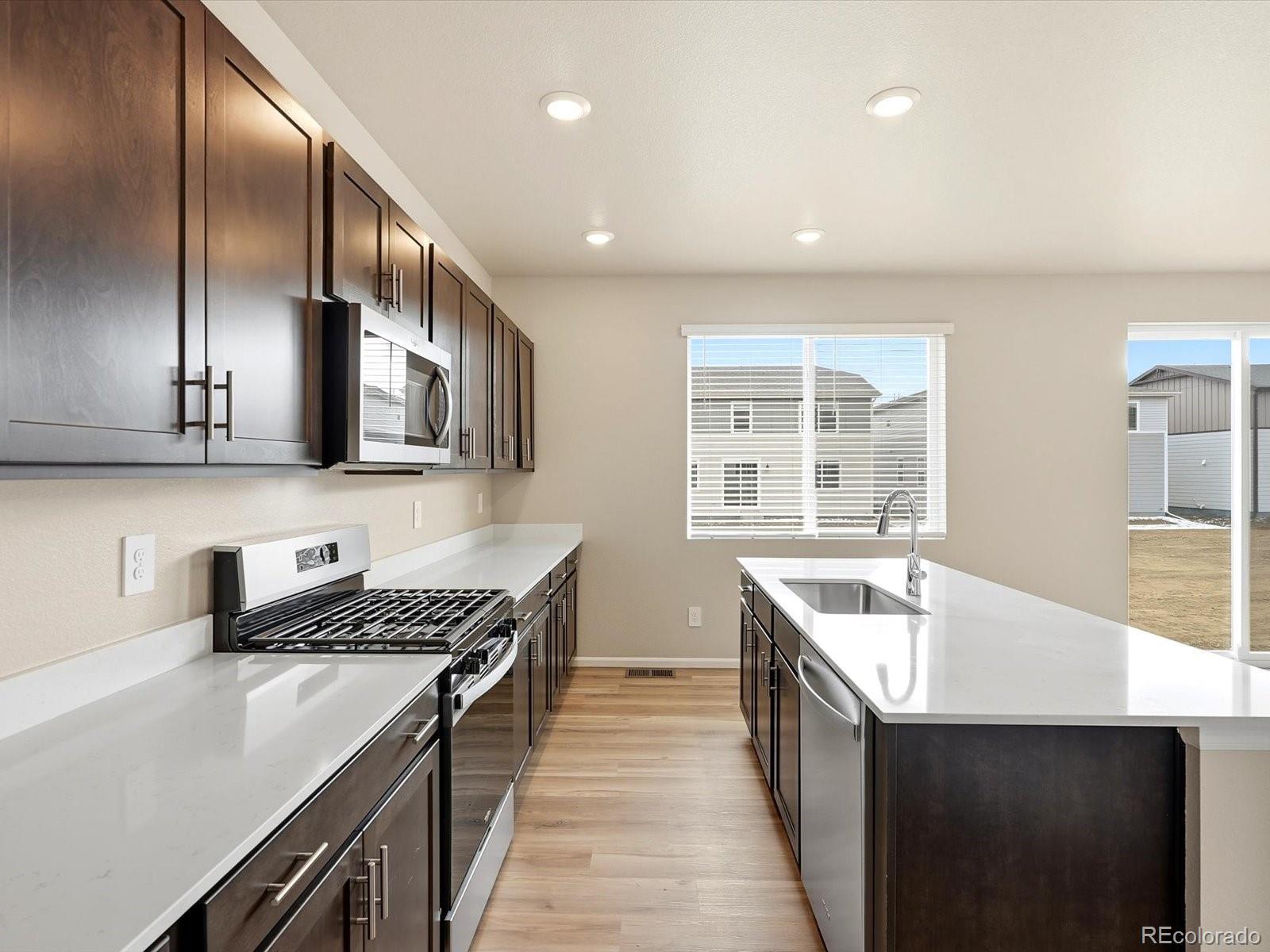 Ask a sales counselor about optional rear yard fencing!! Open concept kitchen with quartz countertops and espresso cabinets! The Monarch is a spacious two-story home featuring an open-concept kitchen, dining, and great room, plus a main-floor flex space and upstairs loft. With four bedrooms, 2.5 baths, and a two-bay garage across 2,371 sq. ft., this design blends comfort and versatility. The Meritage Home difference includes spray-foam insulation, advanced air filtration for year-round comfort and healthier air, and durable cementitious siding known for its strength, fire-resistance, and long-lasting performance. A Whirlpool appliance package, and full home blinds are also included for move-in convenience. Welcome home where every detail is built for comfort, efficiency, and LIFE . BUILT. BETTER. Revere at Johnstown offers playgrounds, picnic areas, and walking trails in a scenic setting near the Rocky Mountain foothills. With easy access to I-25, enjoy a connected community and convenient commutes or weekend getaways.
