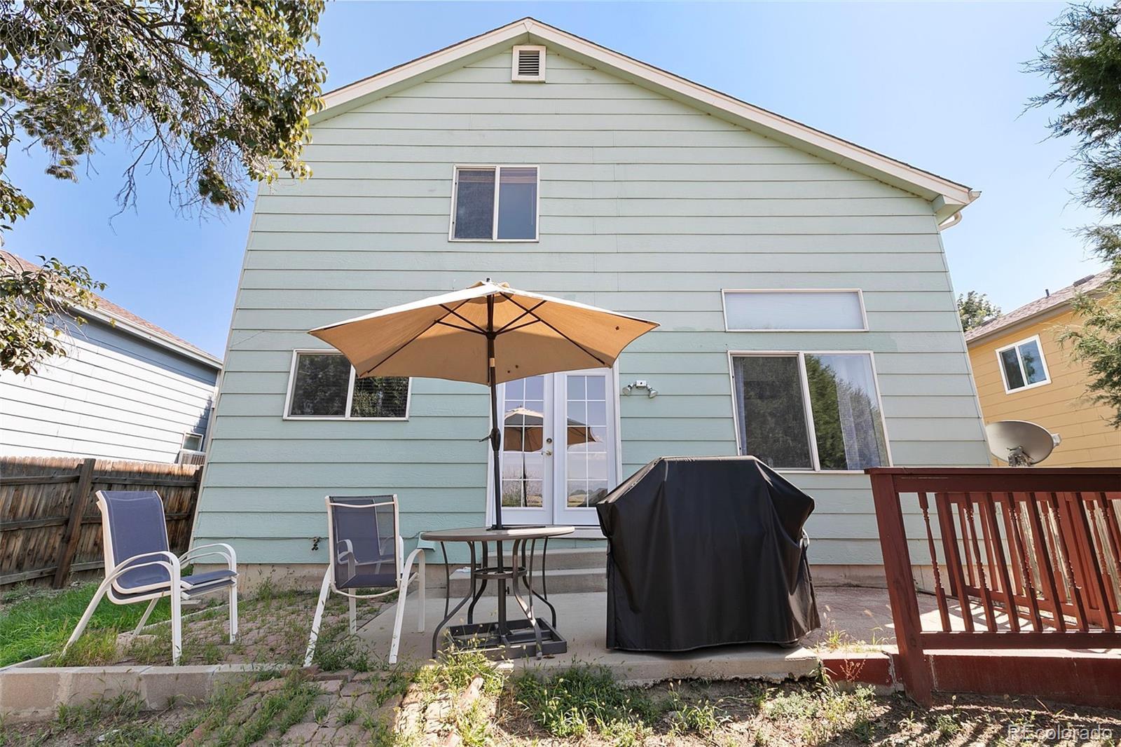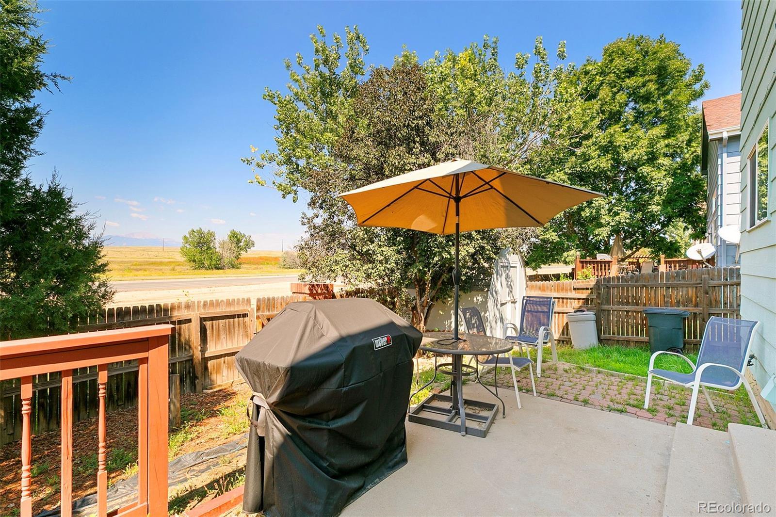 Magnificent Mountain Views of the Front Range for you to enjoy in your private backyard, with no neighbors behind. Move right in to this newly painted and newly carpeted 3-bed, 3-bath, 2-garage! Enjoy an updated kitchen with new Corian countertops, new cabinets, a KitchenAid microwave, flat cooktop, and black stainless Samsung smart fridge. Main level features solid-surface flooring, LVP in kitchen/half bath, and a spacious walk-in pantry. Upstairs, you'll find a primary suite with a 5-piece bath & walk-in closet, along with two more bedrooms and a jack-and-jill bathroom. Other perks for you include a shed, a gas grill and patio set, LG clothes washer/dryer, flat TV mounts, and an unfinished basement for storage or future space needs. Conveniently located near Peterson Space Force Base, Schriever Space Force Base, and Fort Carson. The neighborhood was just updated with new sidewalks and paving throughout.