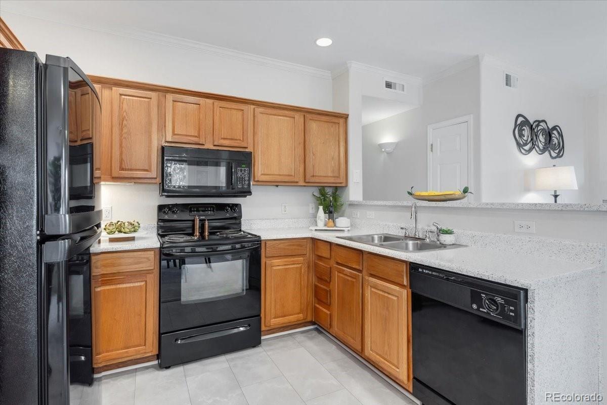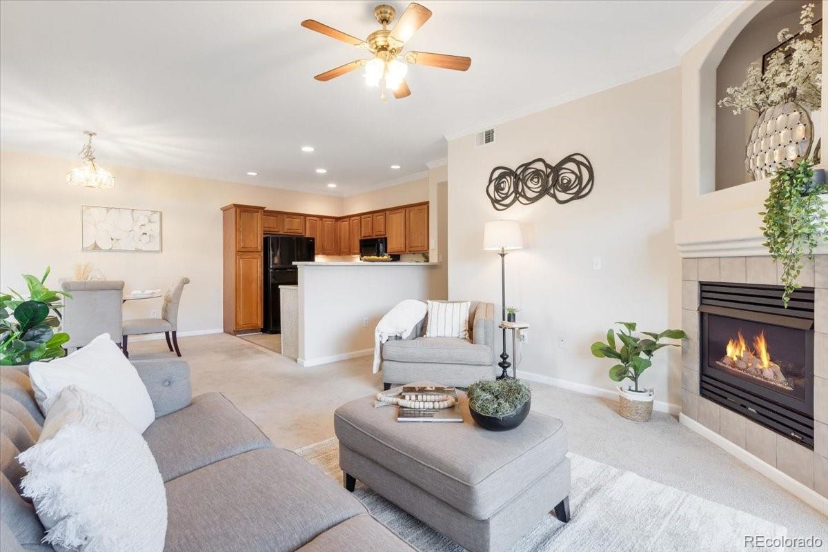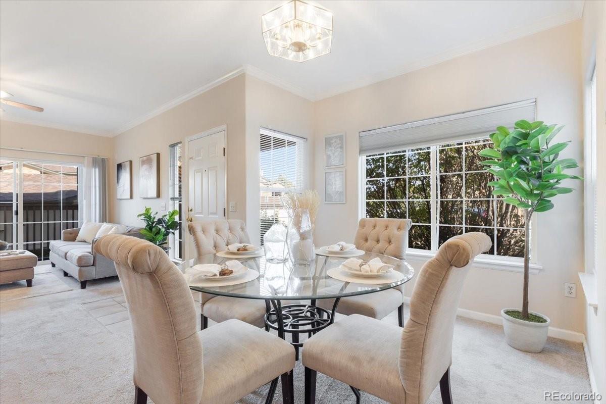 Welcome to Pinnacle Ranch — a gated community in the heart of the Dayton Triangle neighborhood. This charming and clean 3-bedroom, 2-bathroom home offers the convenience of ground-level living with both a 1-car detached garage and a reserved uncovered parking space. Inside, the open-concept layout creates a natural flow between the living room, dining nook, and kitchen. The home is light-filled and functional, with new kitchen flooring and refreshed countertops creating an ideal setting for any home chef. A private balcony extends the living area outdoors — perfect for enjoying morning coffee or quiet evenings. The primary suite features a walk-in closet, and a full bathroom with dual sinks. Two additional bedrooms and a second full bath add flexibility for guests, a home office, or hobbies. The laundry closet includes a washer, dryer, and storage shelf. Enjoy resort-style amenities including a pool, hot tub, fitness center, and clubhouse with reservable meeting space. All of this in a central location close to shopping, dining, grocery stores, and commuter routes. Whether you’re searching for a new home or an investment opportunity, this property offers comfort, convenience, and a prime location. For a great financial incentive, work with our preferred lender Starla Kizzar with The Mortgage Co. (NMLS #1839874 | 720-404-1847). Qualified buyers can receive up to 1% of the loan amount in lender credits (up to $5,000) when not using a down payment assistance program.