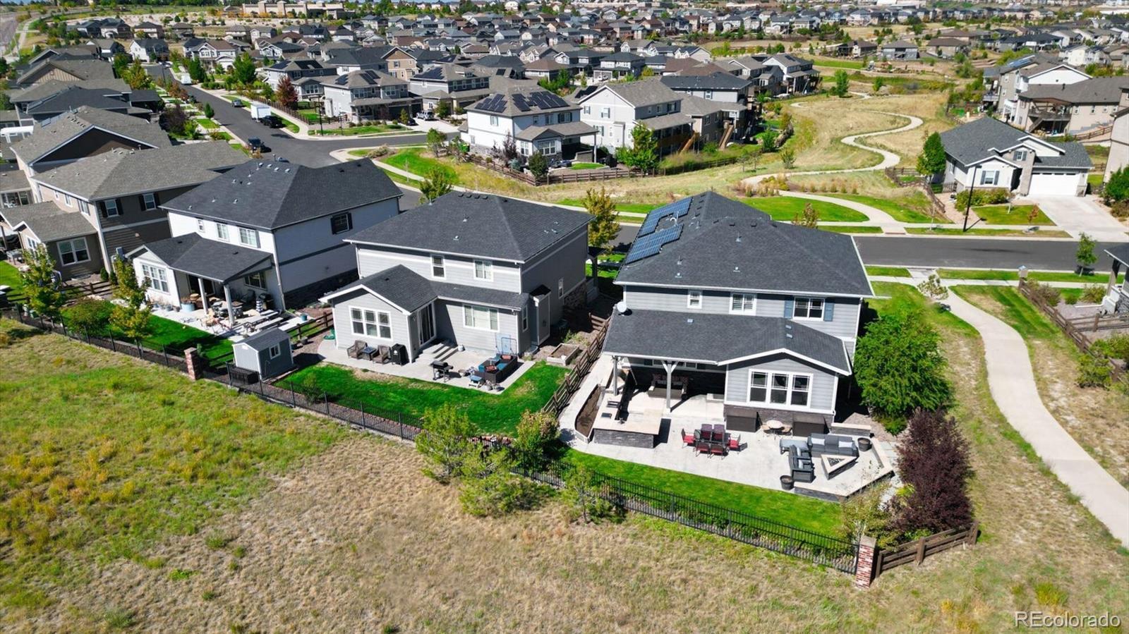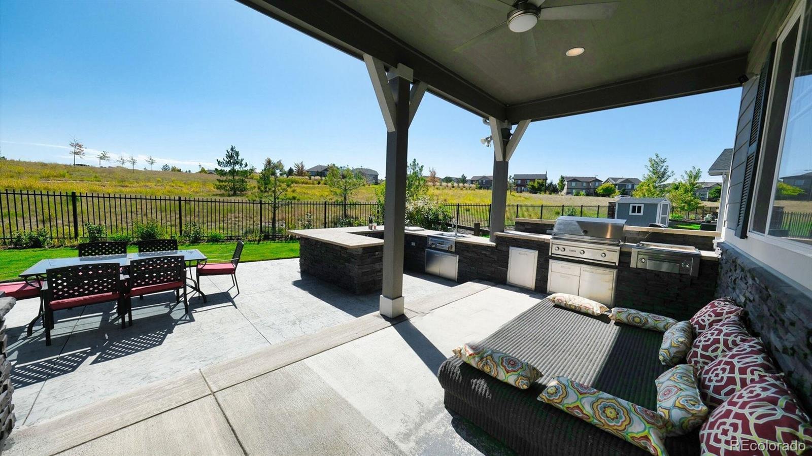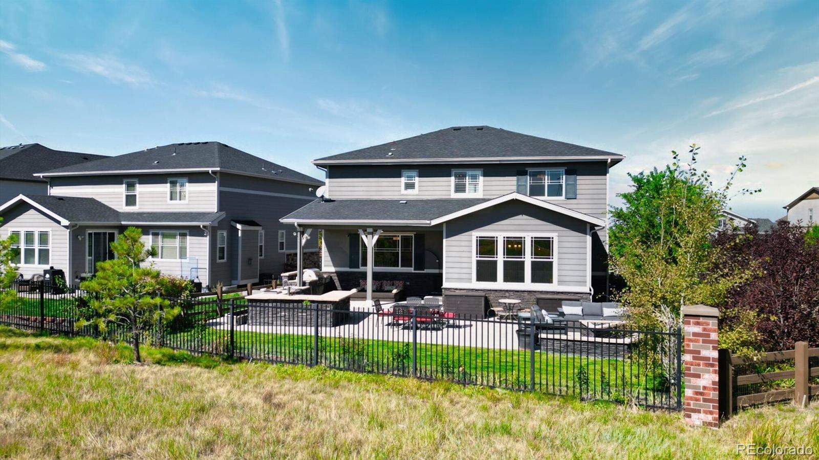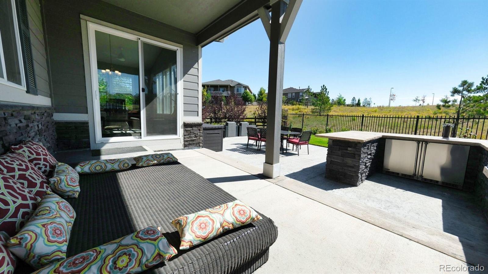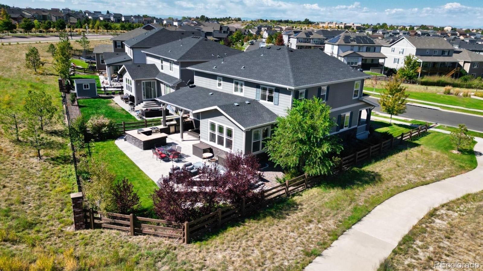 Better than new SETH! Walk tro top rated Cherry Creek School District K-12, backs to greenbelt, across the street from walking trails, you couldn't ask for a better location! This exquisite 2-story home epitomizes comfort, luxury, and convenience! Boasting 5 bedrooms and 3 bathrooms, this immaculate residence is impeccably maintained and awaits your immediate enjoyment. Upon entry, the open layout of the main level creates an inviting atmosphere, perfect for entertaining guests. The cozy family room, complete with a gas fireplace, sets the stage for intimate gatherings, while the formal dining room provides an elegant backdrop for memorable meals. Additionally, a main floor bedroom easily transitions to a convenient home office. The heart of the home, the gourmet kitchen is a Chef's dream! It features stainless steel appliances 42" upper cabinets, granite counters, a walk-in pantry and a remarkable oversized island. Upstairs, the spacious owner's suite offers a luxurious retreat, with a spa-like 5-piece bath and dual walk in closets. Three additional bedrooms, 2 bathrooms, a generous loft and a super handy laundry room complete the upper level. Step outside into your private backyard oasis, complete with an outdoor kitchen with two beer taps and top of the line Lynx appliances. The covered patio provides ample space for outdoor entertaining. Enjoy the tranquility of a wonderfully landscaped yard and gather around the fire pit for cozy evenings under the stars. With direct access to open space and trails, this home offers unparalleled opportunities for outdoor recreation and exploration. Experience the unique lifestyle of Southshore! Walk to the new K-12 and Rec Center in minutes! Residents enjoy access to a wealth of amenities, including the newly opened 9,000 square feet recreation center. Features such as year-round natural light, high end finishes, and a serene, quiet street add to the allure of this exceptional property. It's a rare opportunity not to be missed!