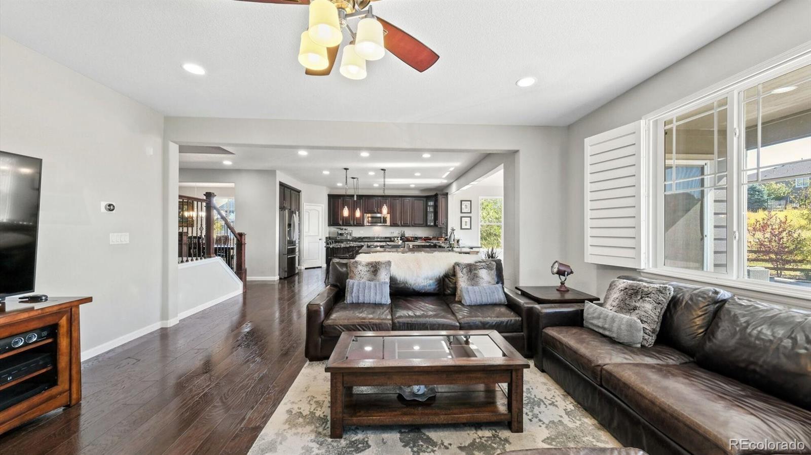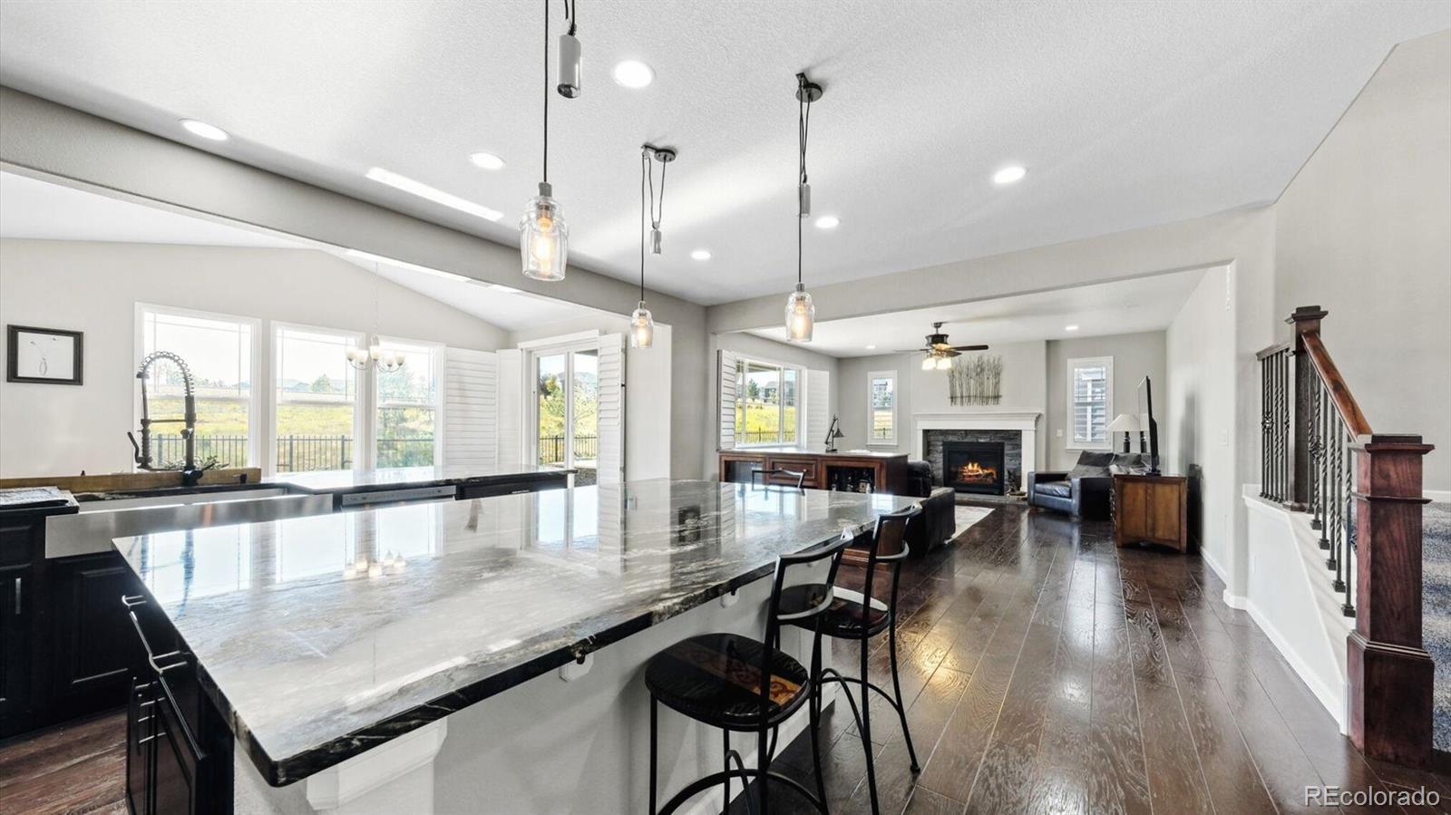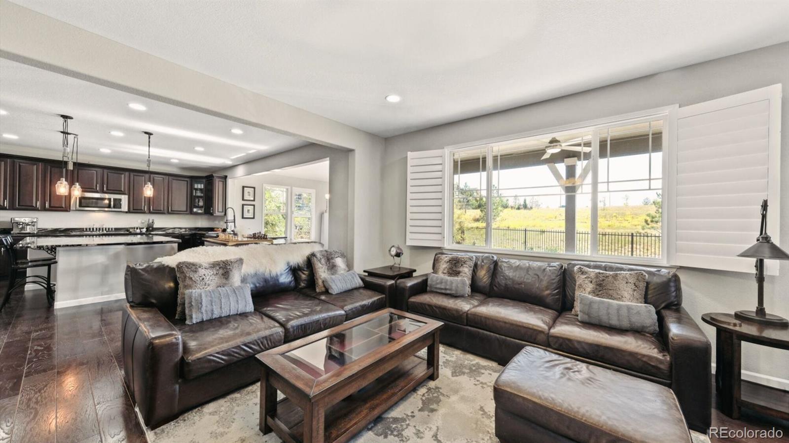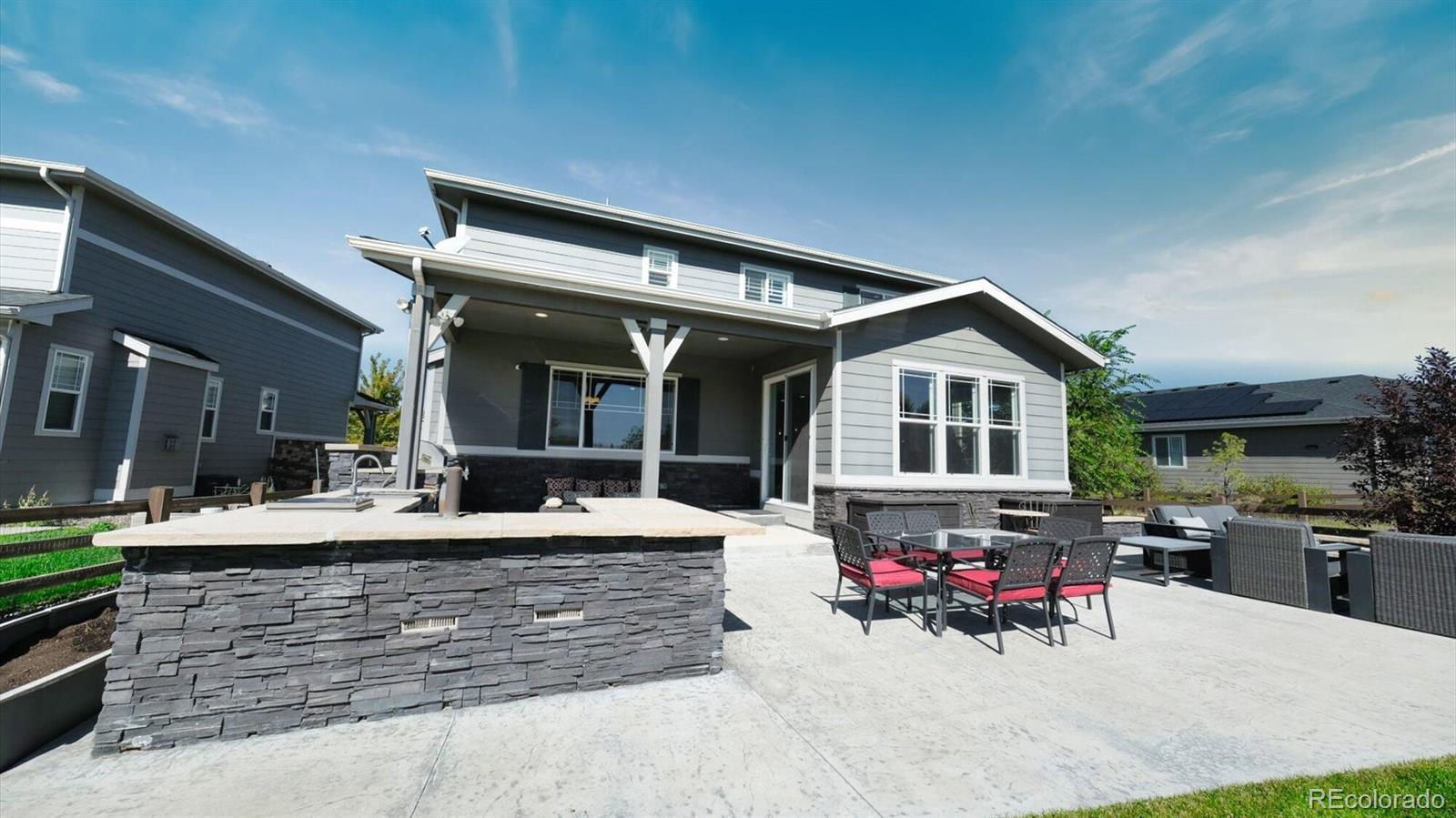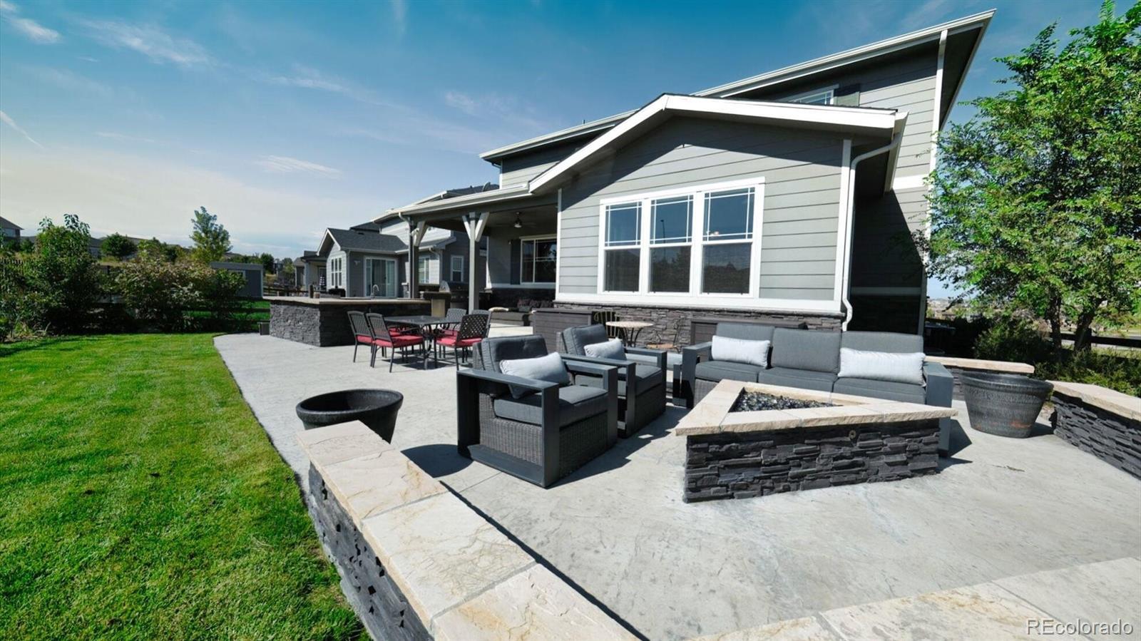 Better than new SETH! Walk tro top rated Cherry Creek School District K-12, backs to greenbelt, across the street from walking trails, you couldn't ask for a better location! This exquisite 2-story home epitomizes comfort, luxury, and convenience! Boasting 5 bedrooms and 3 bathrooms, this immaculate residence is impeccably maintained and awaits your immediate enjoyment. Upon entry, the open layout of the main level creates an inviting atmosphere, perfect for entertaining guests. The cozy family room, complete with a gas fireplace, sets the stage for intimate gatherings, while the formal dining room provides an elegant backdrop for memorable meals. Additionally, a main floor bedroom easily transitions to a convenient home office. The heart of the home, the gourmet kitchen is a Chef's dream! It features stainless steel appliances 42" upper cabinets, granite counters, a walk-in pantry and a remarkable oversized island. Upstairs, the spacious owner's suite offers a luxurious retreat, with a spa-like 5-piece bath and dual walk in closets. Three additional bedrooms, 2 bathrooms, a generous loft and a super handy laundry room complete the upper level. Step outside into your private backyard oasis, complete with an outdoor kitchen with two beer taps and top of the line Lynx appliances. The covered patio provides ample space for outdoor entertaining. Enjoy the tranquility of a wonderfully landscaped yard and gather around the fire pit for cozy evenings under the stars. With direct access to open space and trails, this home offers unparalleled opportunities for outdoor recreation and exploration. Experience the unique lifestyle of Southshore! Walk to the new K-12 and Rec Center in minutes! Residents enjoy access to a wealth of amenities, including the newly opened 9,000 square feet recreation center. Features such as year-round natural light, high end finishes, and a serene, quiet street add to the allure of this exceptional property. It's a rare opportunity not to be missed!