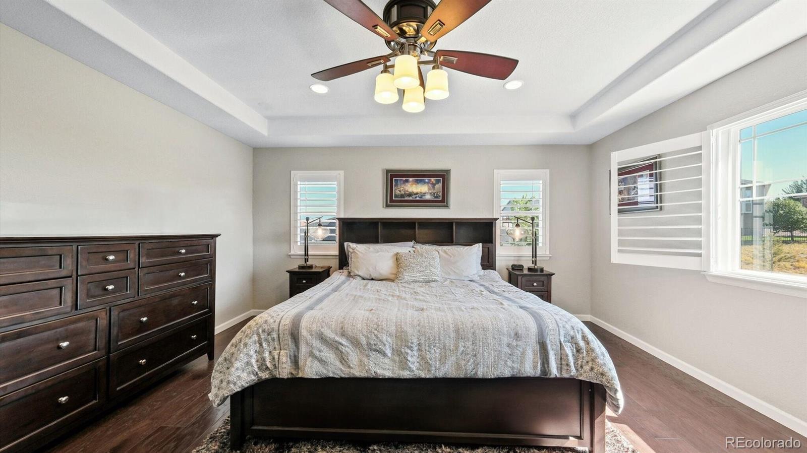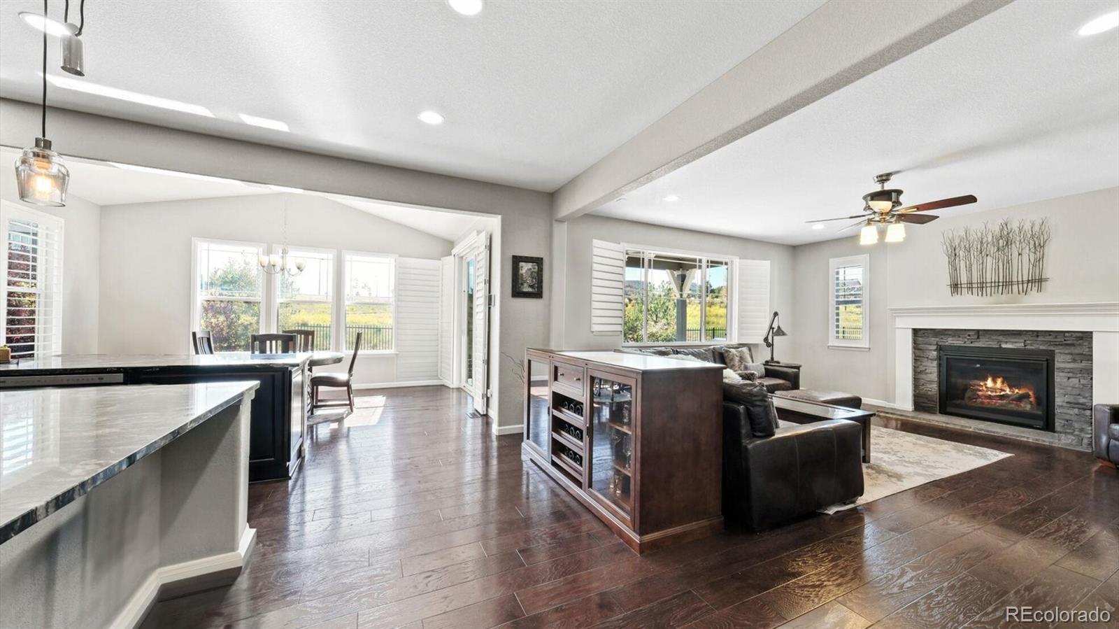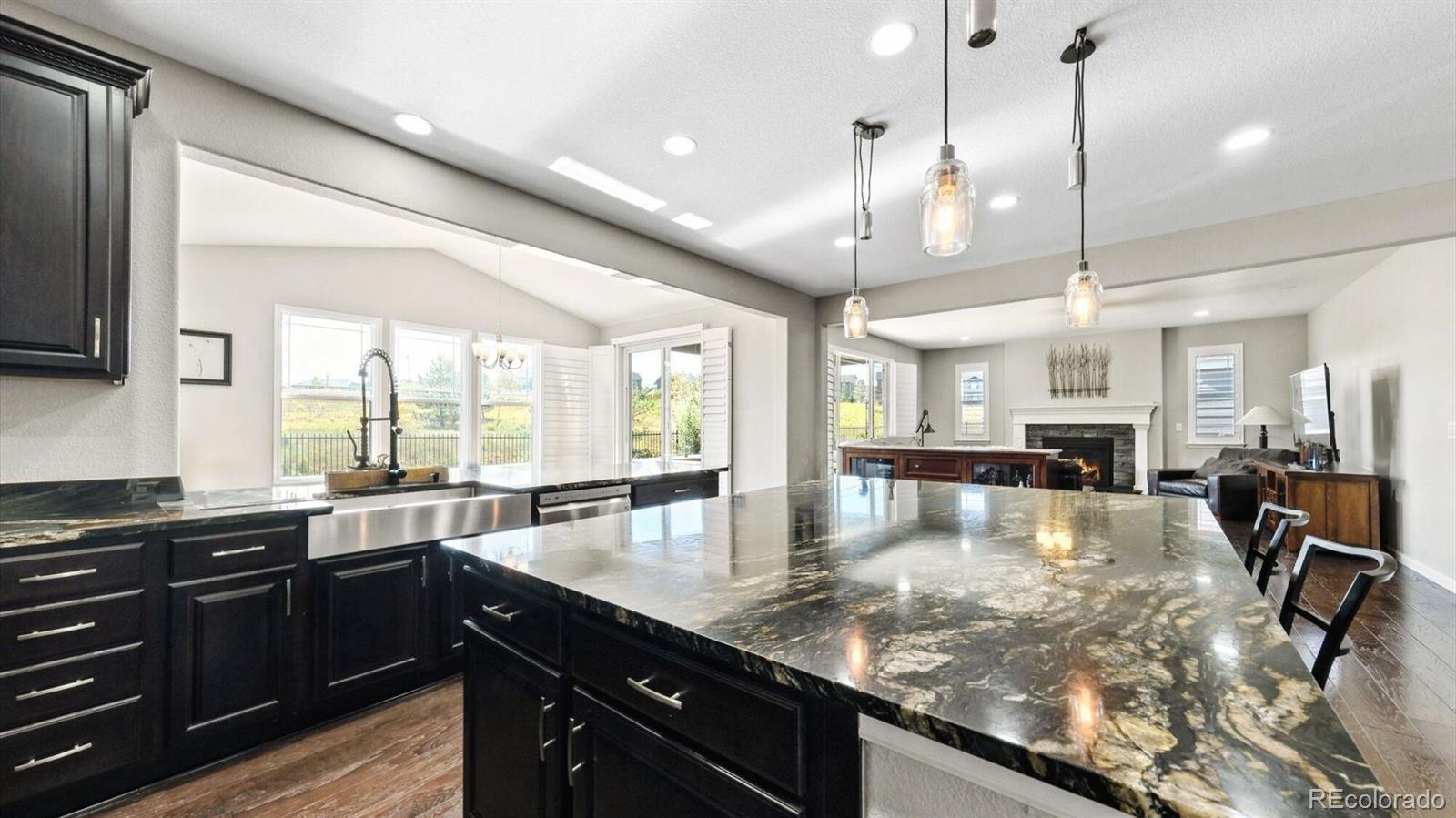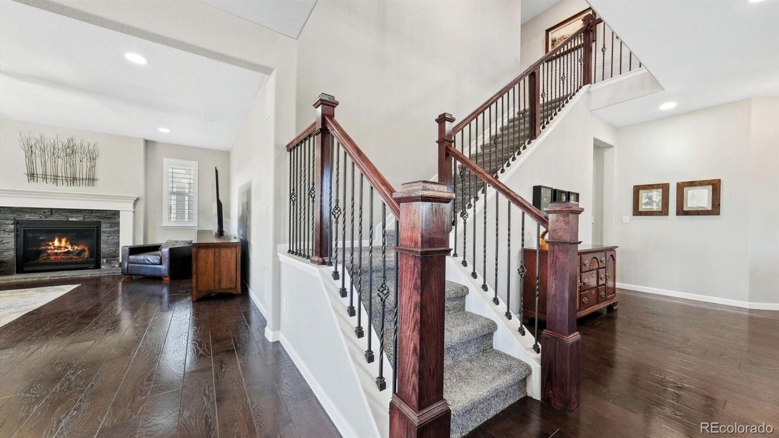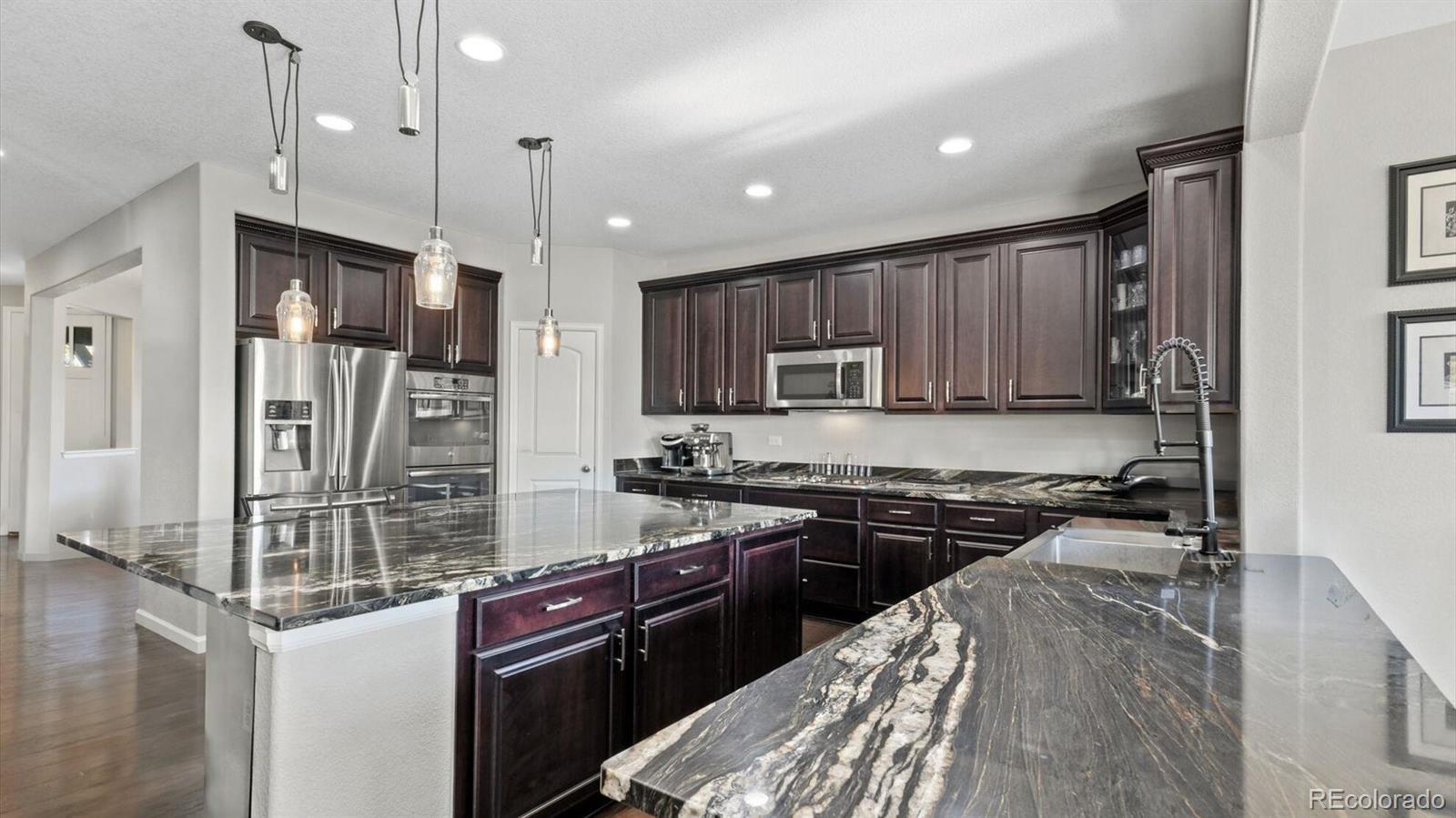 Better than new SETH! Walk tro top rated Cherry Creek School District K-12, backs to greenbelt, across the street from walking trails, you couldn't ask for a better location! This exquisite 2-story home epitomizes comfort, luxury, and convenience! Boasting 5 bedrooms and 3 bathrooms, this immaculate residence is impeccably maintained and awaits your immediate enjoyment. Upon entry, the open layout of the main level creates an inviting atmosphere, perfect for entertaining guests. The cozy family room, complete with a gas fireplace, sets the stage for intimate gatherings, while the formal dining room provides an elegant backdrop for memorable meals. Additionally, a main floor bedroom easily transitions to a convenient home office. The heart of the home, the gourmet kitchen is a Chef's dream! It features stainless steel appliances 42" upper cabinets, granite counters, a walk-in pantry and a remarkable oversized island. Upstairs, the spacious owner's suite offers a luxurious retreat, with a spa-like 5-piece bath and dual walk in closets. Three additional bedrooms, 2 bathrooms, a generous loft and a super handy laundry room complete the upper level. Step outside into your private backyard oasis, complete with an outdoor kitchen with two beer taps and top of the line Lynx appliances. The covered patio provides ample space for outdoor entertaining. Enjoy the tranquility of a wonderfully landscaped yard and gather around the fire pit for cozy evenings under the stars. With direct access to open space and trails, this home offers unparalleled opportunities for outdoor recreation and exploration. Experience the unique lifestyle of Southshore! Walk to the new K-12 and Rec Center in minutes! Residents enjoy access to a wealth of amenities, including the newly opened 9,000 square feet recreation center. Features such as year-round natural light, high end finishes, and a serene, quiet street add to the allure of this exceptional property. It's a rare opportunity not to be missed!