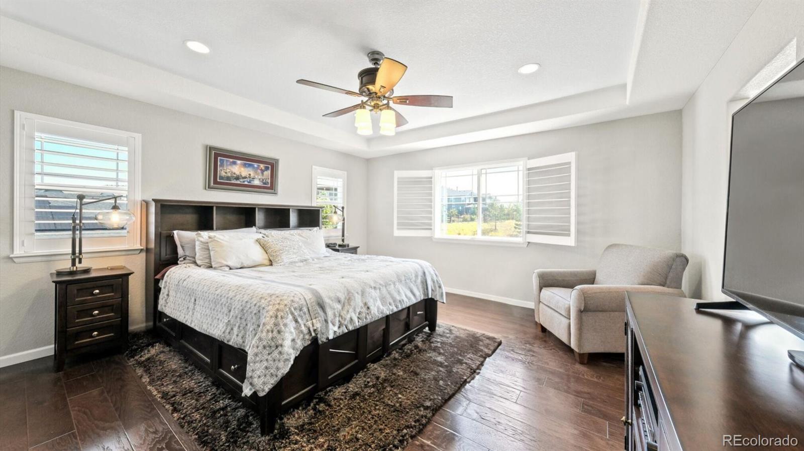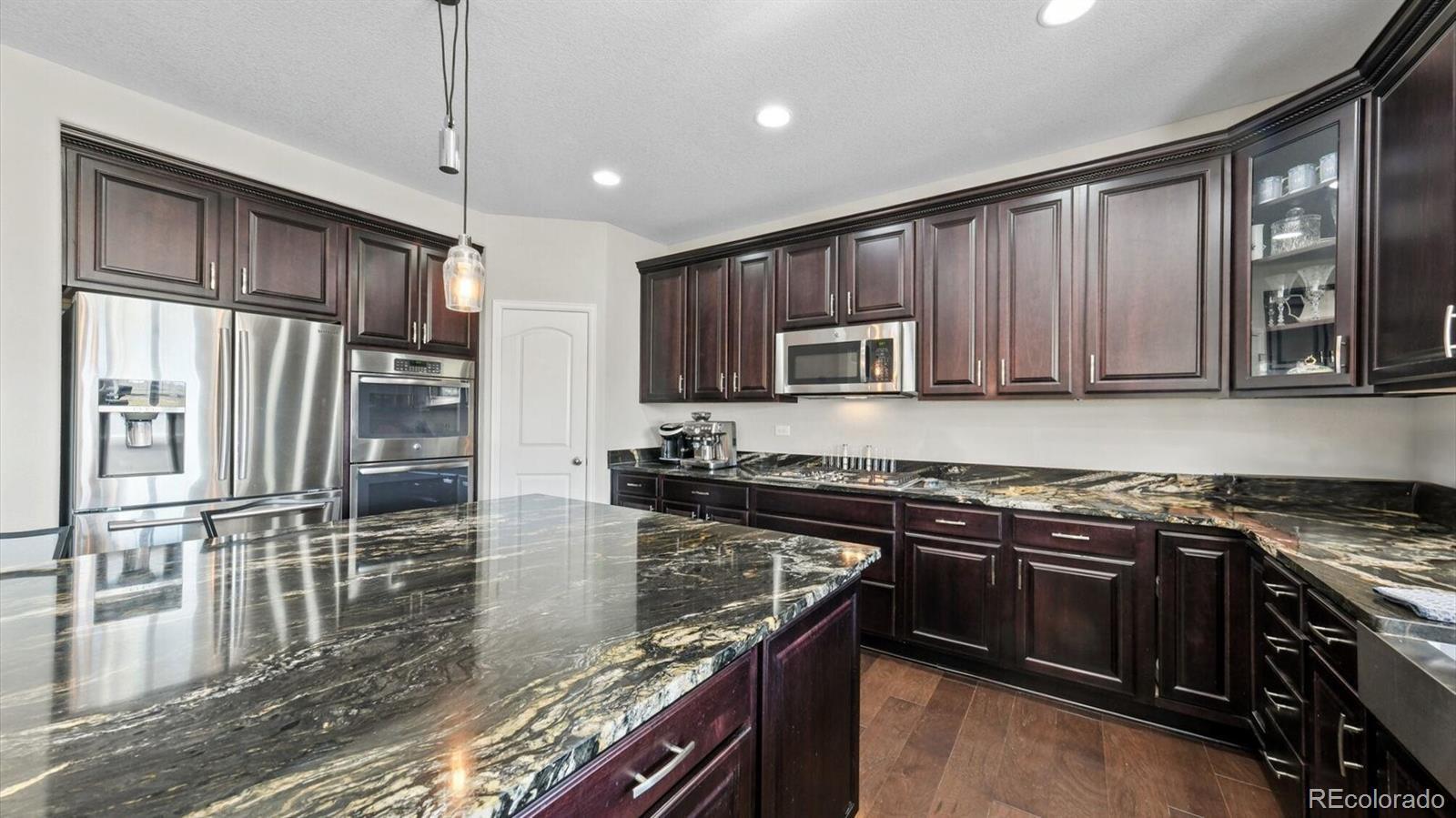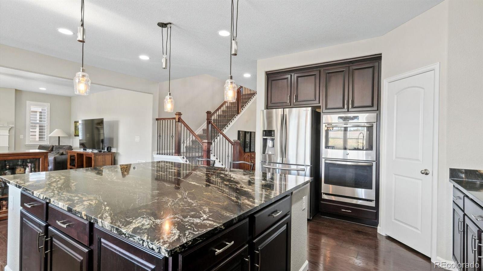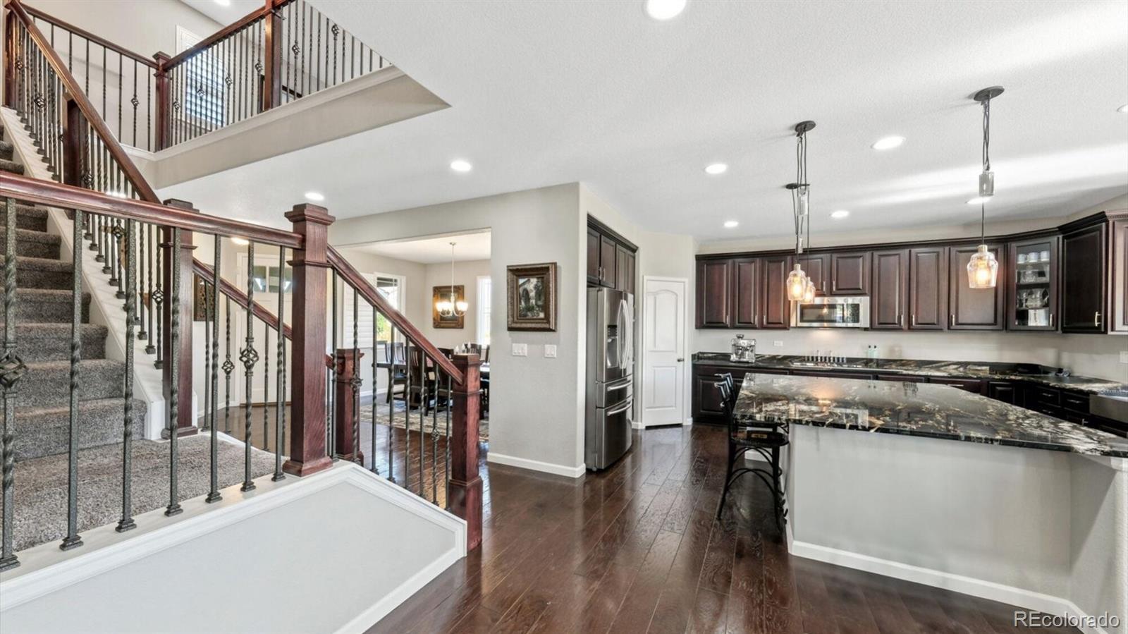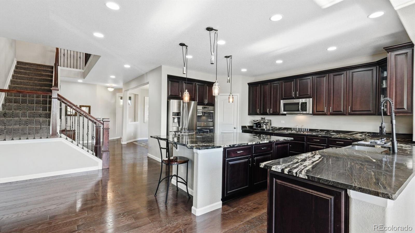 Better than new SETH! Walk tro top rated Cherry Creek School District K-12, backs to greenbelt, across the street from walking trails, you couldn't ask for a better location! This exquisite 2-story home epitomizes comfort, luxury, and convenience! Boasting 5 bedrooms and 3 bathrooms, this immaculate residence is impeccably maintained and awaits your immediate enjoyment. Upon entry, the open layout of the main level creates an inviting atmosphere, perfect for entertaining guests. The cozy family room, complete with a gas fireplace, sets the stage for intimate gatherings, while the formal dining room provides an elegant backdrop for memorable meals. Additionally, a main floor bedroom easily transitions to a convenient home office. The heart of the home, the gourmet kitchen is a Chef's dream! It features stainless steel appliances 42" upper cabinets, granite counters, a walk-in pantry and a remarkable oversized island. Upstairs, the spacious owner's suite offers a luxurious retreat, with a spa-like 5-piece bath and dual walk in closets. Three additional bedrooms, 2 bathrooms, a generous loft and a super handy laundry room complete the upper level. Step outside into your private backyard oasis, complete with an outdoor kitchen with two beer taps and top of the line Lynx appliances. The covered patio provides ample space for outdoor entertaining. Enjoy the tranquility of a wonderfully landscaped yard and gather around the fire pit for cozy evenings under the stars. With direct access to open space and trails, this home offers unparalleled opportunities for outdoor recreation and exploration. Experience the unique lifestyle of Southshore! Walk to the new K-12 and Rec Center in minutes! Residents enjoy access to a wealth of amenities, including the newly opened 9,000 square feet recreation center. Features such as year-round natural light, high end finishes, and a serene, quiet street add to the allure of this exceptional property. It's a rare opportunity not to be missed!