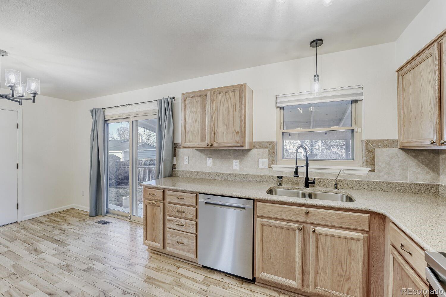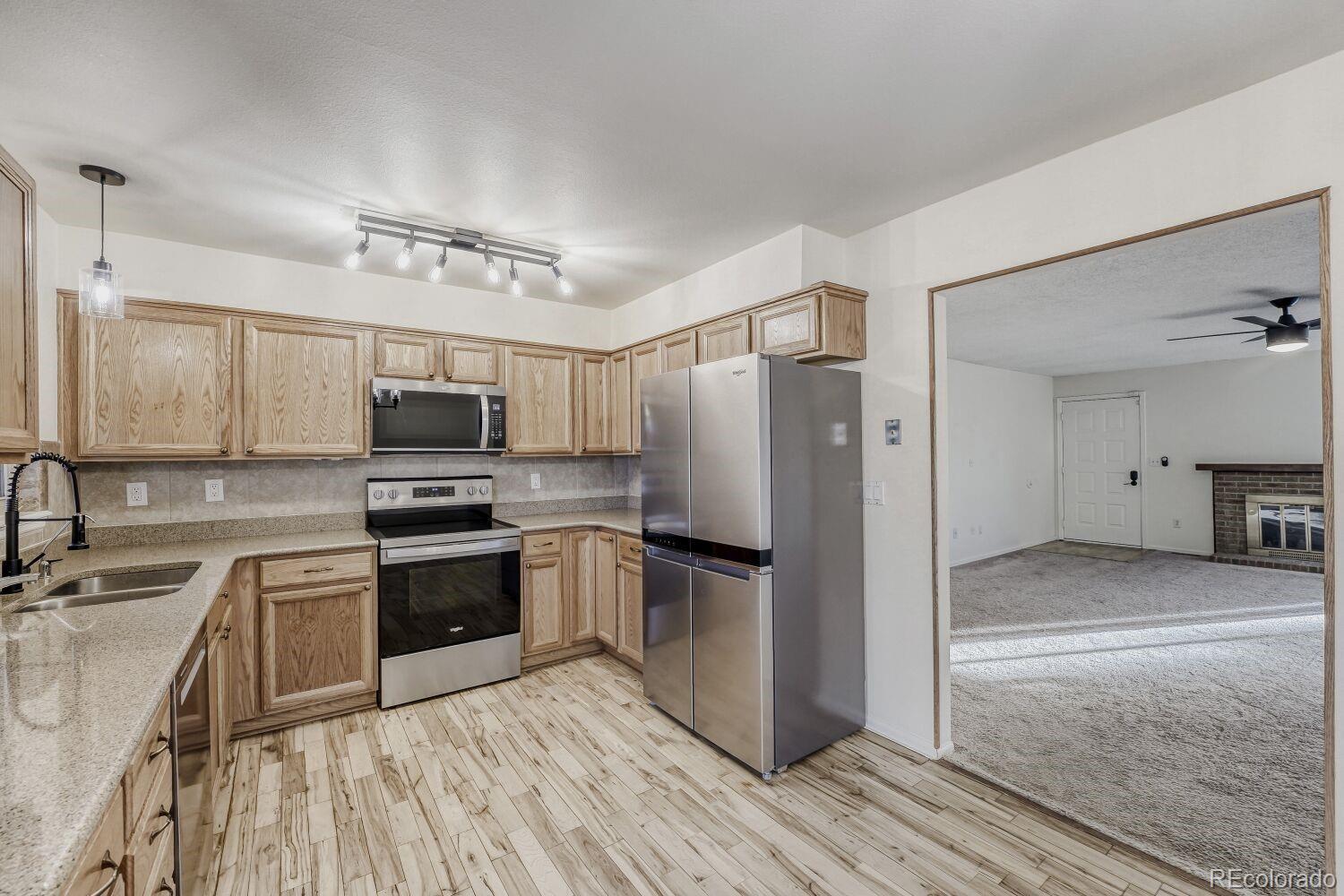 Welcome to 16897 E Napa Drive, a well-maintained and thoughtfully updated 4 bedroom, 3 bath home located in the award-winning Cherry Creek School District. The main level features a spacious, light-filled living area with neutral finishes and a cozy brick fireplace, creating a comfortable space for everyday living and entertaining. The kitchen offers granite countertops, stainless steel appliances, soft-close cabinets and drawers, and an adjoining dining area with direct access to the patio. The primary bedroom includes plush carpeting, ample natural light, and an updated en-suite bathroom with a walk-in tiled shower. A full secondary bathroom on the main floor provides added convenience. The partially finished basement adds significant square footage and flexibility, featuring a newly added conforming bedroom with an egress window, recessed lighting, durable flooring, and a dedicated laundry and utility area. Plenty of additional space allows you to make the basement your own. Ideally situated near Mission Viejo Park, a 21.4-acre neighborhood amenity featuring four baseball and softball diamonds, a playground, reservable shelter, restrooms, and access to the West Toll Gate Creek Trail. Conveniently close to shopping, dining, and commuter routes, this home offers comfort, functionality, and an excellent location.