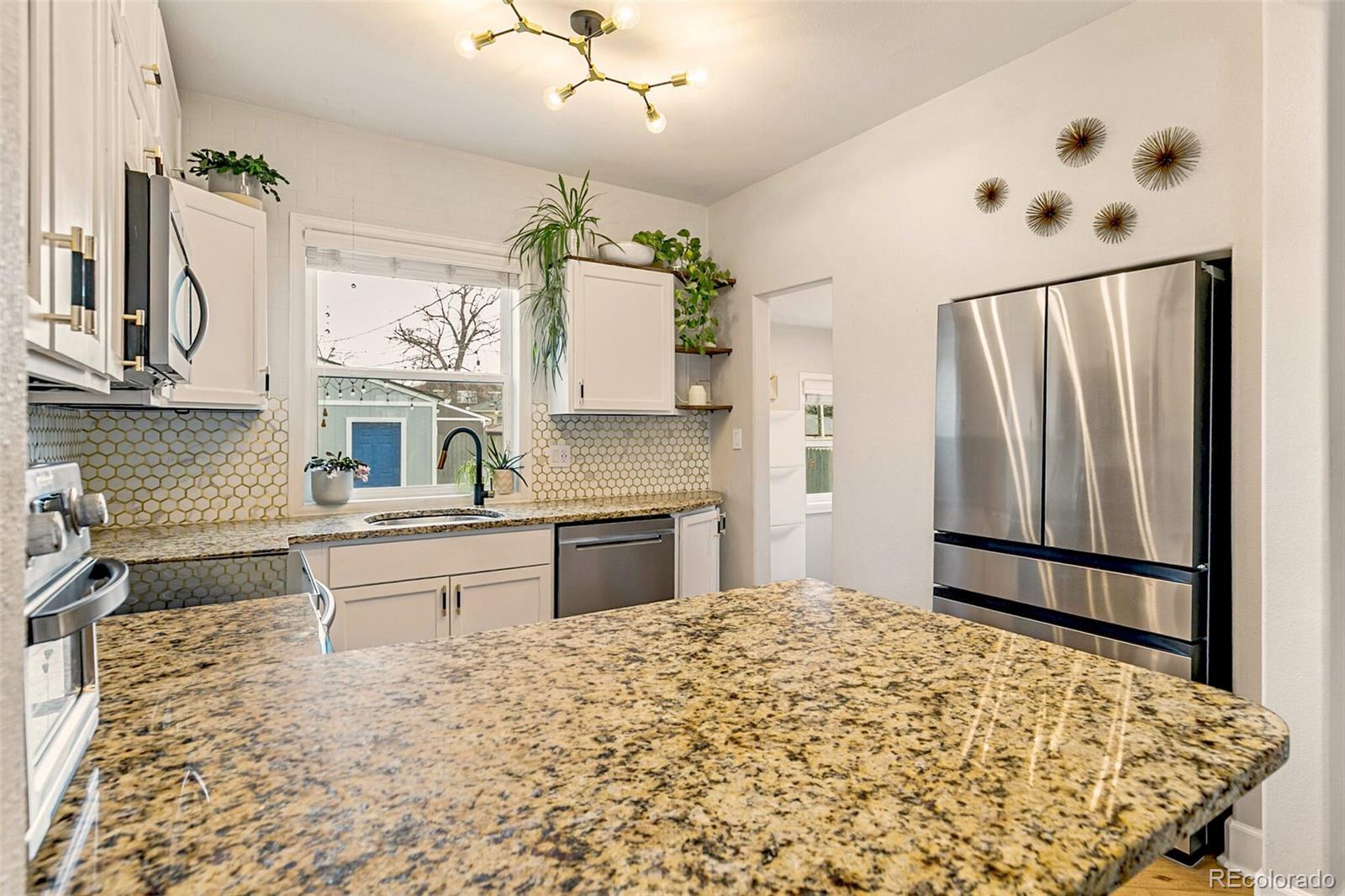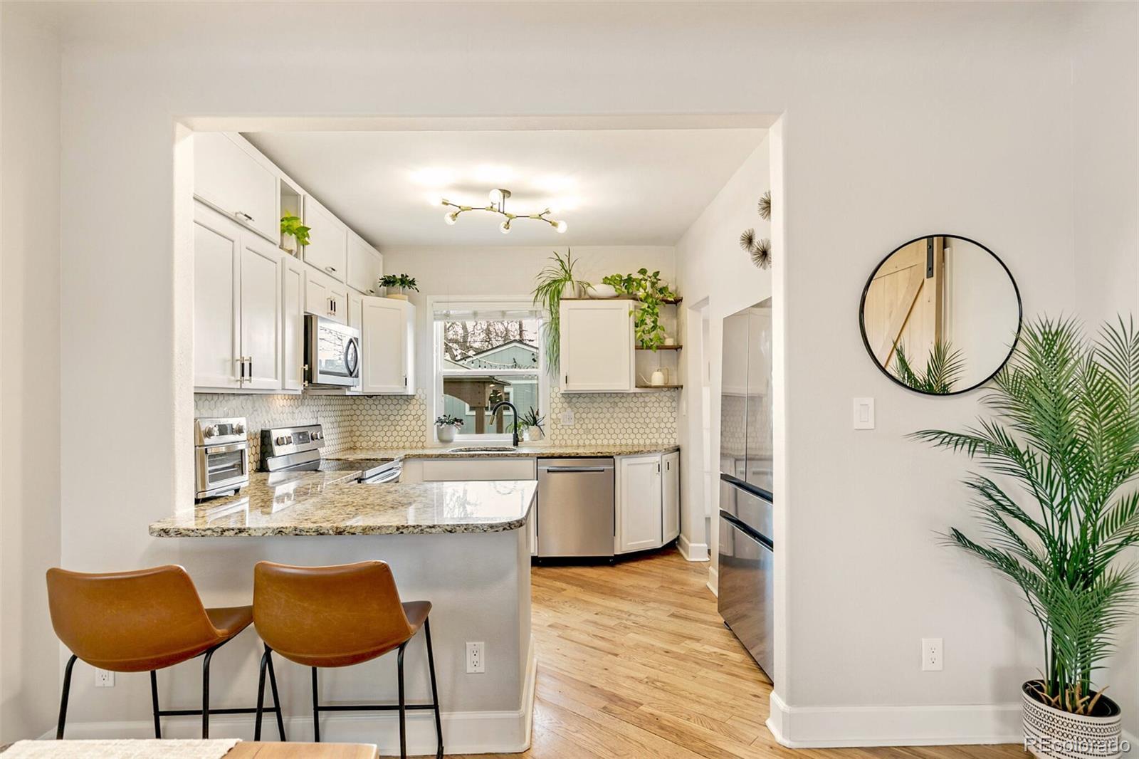 Charm and quality await in this loved and meticulosly cared for single family home in Regis University area. The main floor greets you with an open floor plan, high ceilings, and gleaming oak hardwood flooring. Two bedrooms are located on main level: the primary bedroom showcases an ensuite bath with dual vanity and three closets(!), while second bedroom- currently used as an office- features its own walk-in closet. The bright & spacious living room flows into the dining area and onto the open kitchen, where you'll find an abundance of cabinetry, granite countertops, stylish backsplash and appliances, and wonderful natural light. Second bathroom completes the main level. The conforming basement with private entry boasts refined finishes and offers exciting options: claim it as your primary suite and enjoy a walk-in closet, a European-style ensuite bath with a dual-head oversized shower, a cozy kitchenette/wet bar nook, and charming vintage accents; or offer the space as a rental for additional income, as the seller has done successfully. The fully fenced backyard is professionally landscaped, featuring multiple areas for every occasion: relax under a large pergola, play games year-round on the astroturfed area, dine al fresco on the paved patio, or tend to your raised beds garden. Easy to maintain and stunning to look at, it feels straight out of a design magazine. 2-car oversized garage and an additional large parking spot are framing the yard from the west side, providing shade and privacy. This property is tucked away in a quiet neighborhood, yet the best of Berkeley and Regis is just moments away: breakfast, bakery, cafe,and micro-brewery are all within a few blocks. Highway access is easy, making Downtown Denver a quick 7-minute drive, and the foothills effortlessly within reach to the west. Recent upgrades include a brand new roof with class 4 shingles- instant savings on your property insurance, new exterior finishes and paint and tankless water heater.