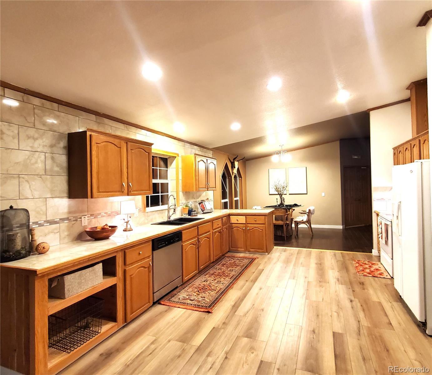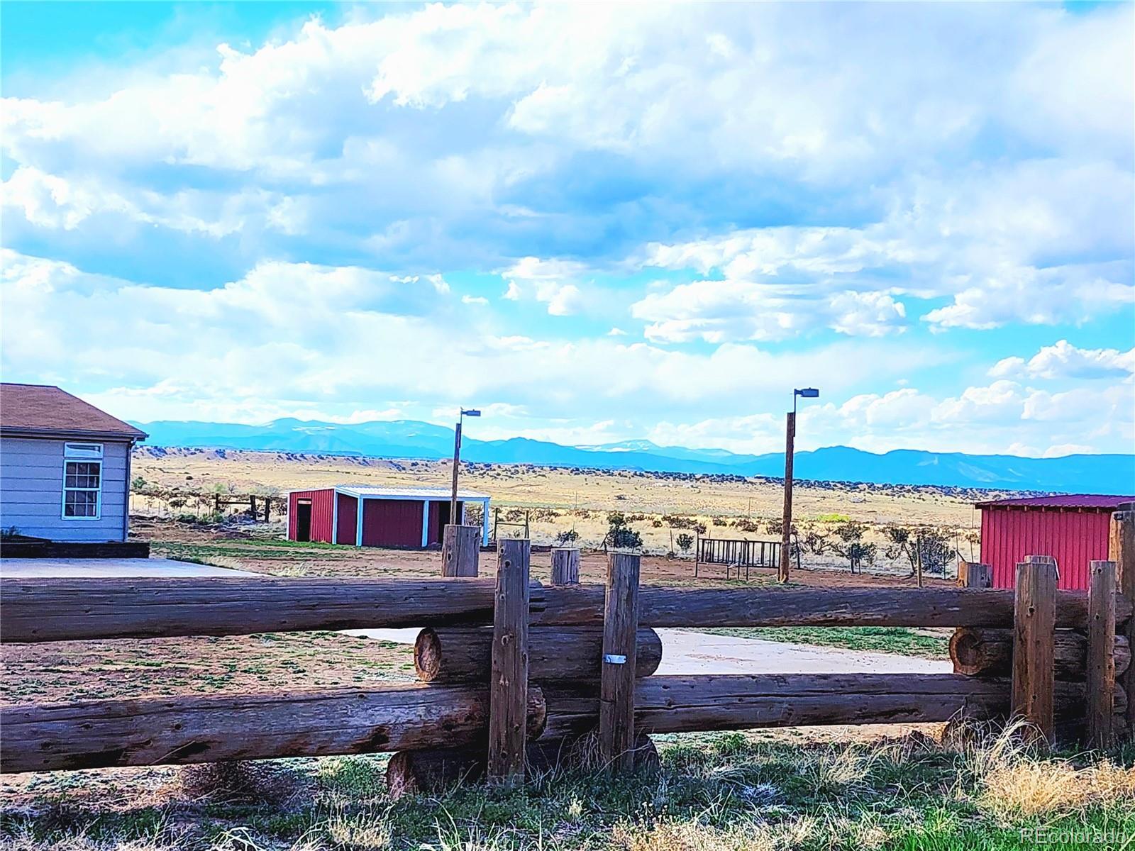 The versatile homestead- 5-acre ranch with mountain views and versatile workshop near Florence with New roof installed! Discover the perfect blend of mountain tranquility and practical functionality on this 5-acre homestead. This open-concept, one-level ranch provides a spacious, inviting atmosphere with 4 bedrooms and 3 full baths. A separate office offers the ideal space for remote work, while the master suite presents panoramic views of Pikes Peak to start your day. Cozy up in one of two distinct living areas, each featuring its own wood-burning fireplace to ward off the winter chill. The large kitchen is a canvas for your culinary vision, with extensive oak cabinetry and a beautiful ceramic tile backsplash that extends to the ceiling. The formal dining area is a sun-drenched space, offering stunning views of the Wet Mountains through its cathedral windows. This property is exceptionally well-equipped for hobbies and animal care. The fully fenced grounds include a 2-stall barn with lights and electricity, a separate hay storage barn, and an additional loafing shed. The property also features a large garage/workshop with a heater, a separate two-car drive-through garage for vehicles or toys, plus additional storage shed. For your furry friends, a special dog room with an attached fenced run provides a dedicated space. Conveniently located just minutes from historic downtown Florence and 20 minutes from Lake Pueblo, you can enjoy rural seclusion while remaining close to all the amenities you need. The 10,000-gallon cistern for the home provides reliable water infrastructure. This unique property offers unmatched potential—come and explore all the possibilities today!
