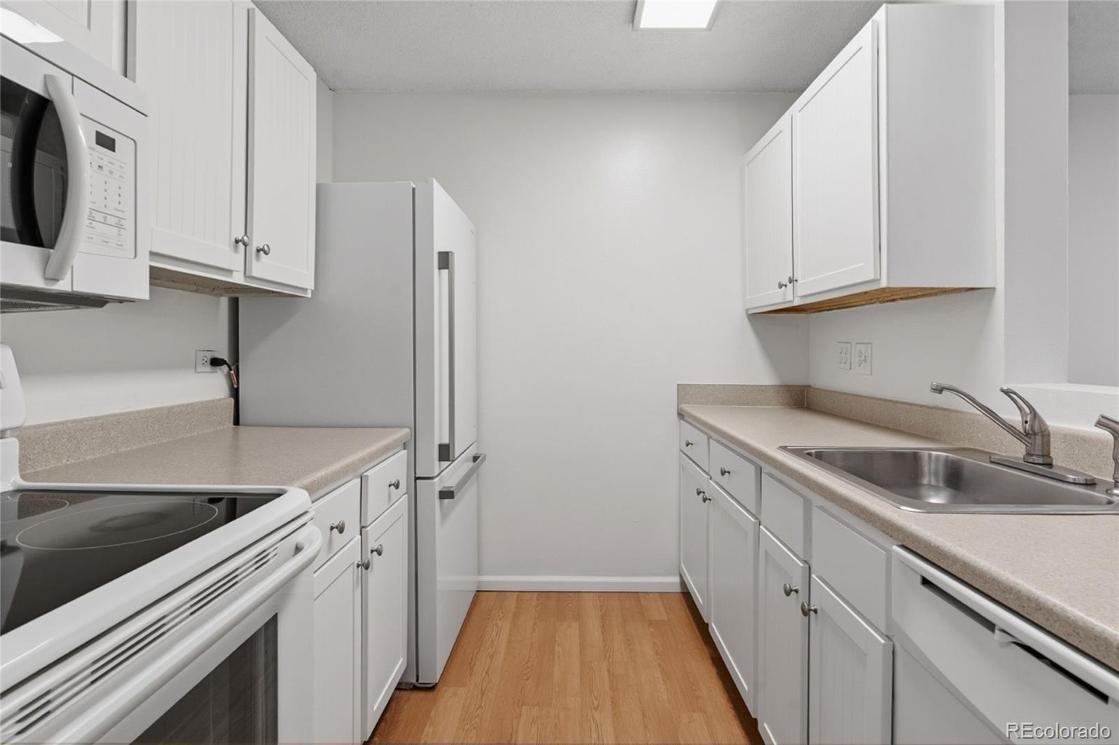 Welcome to 2231 S. Vaughn Way 216B, a beautiful renovated Corner Condo in Torrey Pines. Move in ready and NO STAIRS LIVING! The openness and large space of this 972 square feet 2 bedroom and 2 bathroom condo will impress you. This is a corner condo in a great location with great accessibility. There is an elevator and no snow removal required. Even heat and water is included in the HOA fee! The wonderful thing about an established neighborhood is plenty of greenspace and even a swimming pool in the shared yard. This 2 bedroom 2 bathroom condo is light and bright with new carpet throughout, neutral paint and fantastic bathrooms. All the rooms are spacious and there is generous closet space in the entry and both of the bedrooms. Enter the condo and you will have a large closet separated from the dining room and living room so you will not see any clutter. Plenty of space to put away shoes and coats. The open floor plan creates an inviting space ideal for both relaxing and entertaining. You will enjoy brand new carpet throughout and the bathrooms feature neutral color tile floors. Recent Updates Include: Brand new carpet, fresh paint, new light fixtures, updated bathrooms with beautiful tile floors and new vanities, the shower is large with safety bars and the bathtub in the primary bathroom is huge. Additional Features: One reserved parking space and a basement storage unit. Unbeatable Location: You'll enjoy immediate access to scenic trails and open space, very close proximity to a great Heather Ridge Golf Course. Commuters will appreciate quick access to I-225, the Denver Tech Center, light rail, and RTD bus lines. Everything you need is nearby—restaurants, shopping, the Medical Center of Aurora, Cherry Creek Reservoir, and DIA are all just minutes away. You will not be disappointed when you take a look at this spacious 972 square foot condo in desirable Torrey Pines community!