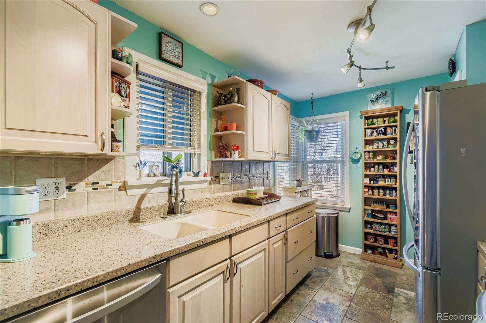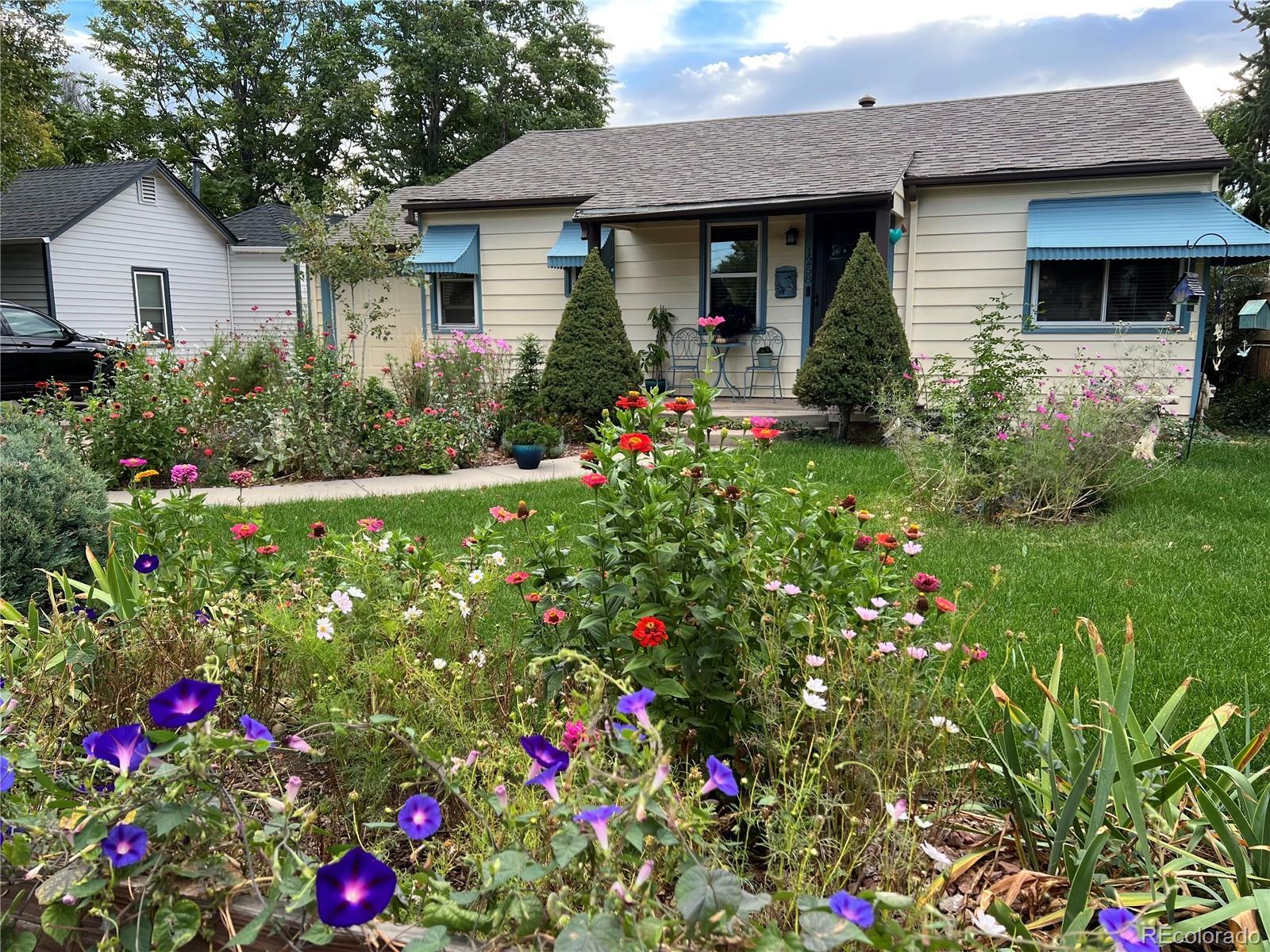 Charming cottage style home in the heart of the neighborhood with a community park nearby and access to great schools. The curb appeal really shines come spring, summer, and fall with many perennials creating a sea of color in both the front and back yards. Inside, ample windows overlook the yards and flood the floor plan with natural light. There are hardwood floors throughout much of the main floor with tile in the kitchen, dining, and bathroom. The kitchen features new stainless appliances with a built-in microwave. On the main floor, two bedrooms share a full bath. The finished basement, with egress, doubles the space. There is a large 3rd bedroom or family room or the space could be divided to provide both. There are 2 walk-in closets and a recently remodeled 3/4 bath with oversized shower with dual shower heads. The laundry room is a tidy space with storage, stacked washer/dryer and utility sink. A new furnace was recently installed. Outside, the backyard is tranquil retreat with landscape lighting, a dedicated garden area, and a pergola topped patio. Truly a gem! The location on a quiet block with friendly neighbors is hard to beat with Lowry due South, Central Park to the North and easy access to popular destinations around town - like Cherry Creek, Downtown, and City Park with the Denver Zoo and Museum of Nature & Science.