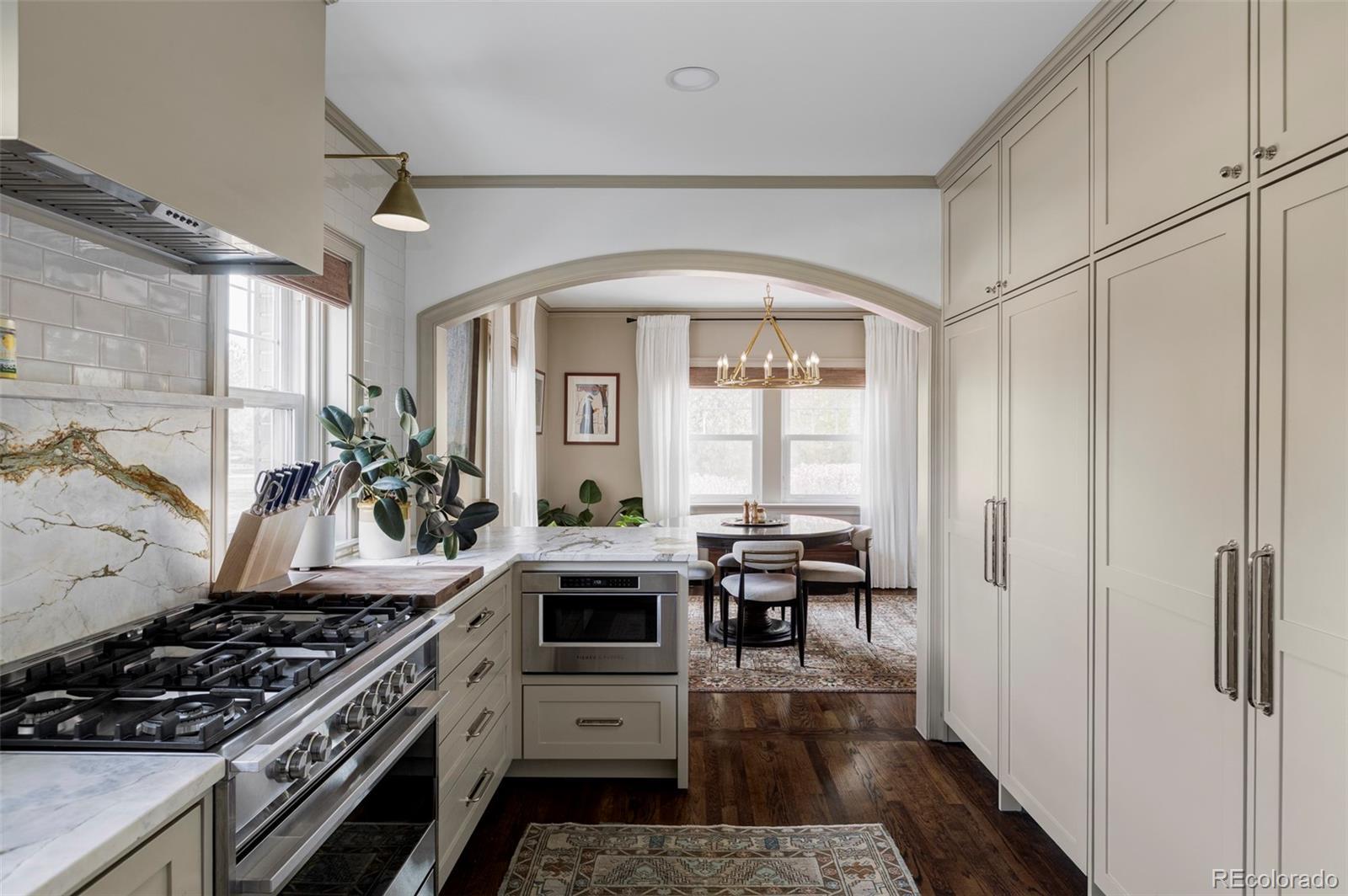 Perched on an oversized (10,500sf) corner lot overlooking the southwest edge of Washington Park, this rare Colonial Revival home represents a once-in-a-generation opportunity to own one of Denver's most coveted addresses. Elevated above street level, the property creates an urban oasis where park views meet remarkable tranquility. Every detail of this home reflects the vision of renowned designers Pratt and Deutsch, who orchestrated an extensive whole-home renovation that honors the home's historic character while delivering modern luxury. Custom lighting illuminates open shelving in both the kitchen and bar, creating gallery-like focal points that blend functionality with artistry. The kitchen anchors the home with thoughtfully integrated Fisher & Paykel appliances—a paneled refrigerator and dual-drawer dishwasher maintain clean sightlines, while the 36-inch stainless gas range commands attention. Flowing seamlessly into living and bar areas, the space is designed for both daily life and sophisticated entertaining. The primary suite offers a private retreat with generous walk-in closet and a spa-inspired bath featuring heated floors, a soaking tub with heating function, dual vanity, and custom shower—all bathed in western light. The rare 10,500 square foot lot provides space that's nearly impossible to find this close to the park—and it's been transformed into a private sanctuary. A custom-built cedar spa hot tub by local artisan Cedarwood Spas LTD anchors the outdoor living space, offering a therapeutic retreat crafted from premium western red cedar with meticulous attention to detail and functionality. This isn't a mass-produced hot tub—it's a bespoke wellness amenity that elevates the entire property. A detached 2-car garage plus attached 1-car garage offer flexibility for vehicles, storage, or workshop space. Walk out your door to Washington Park's 165 acres. This is Denver at its finest.