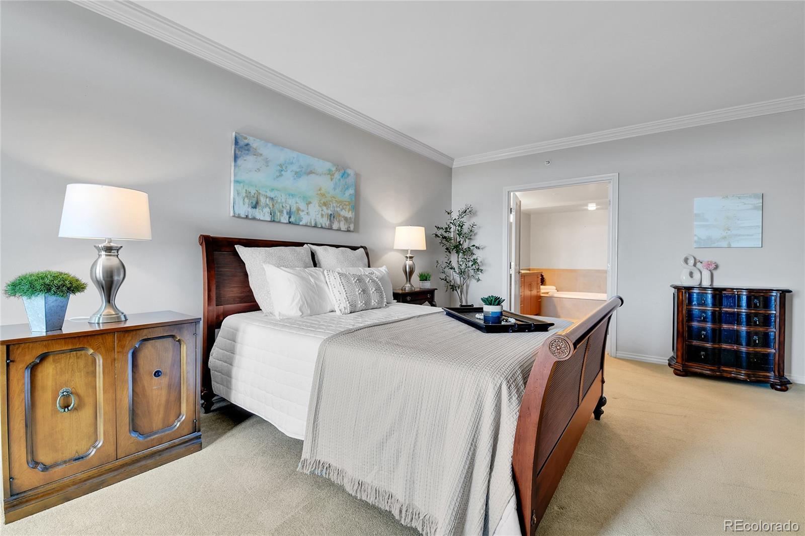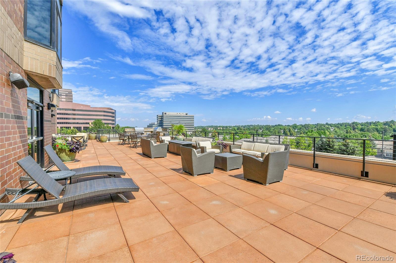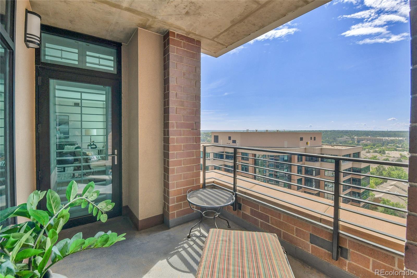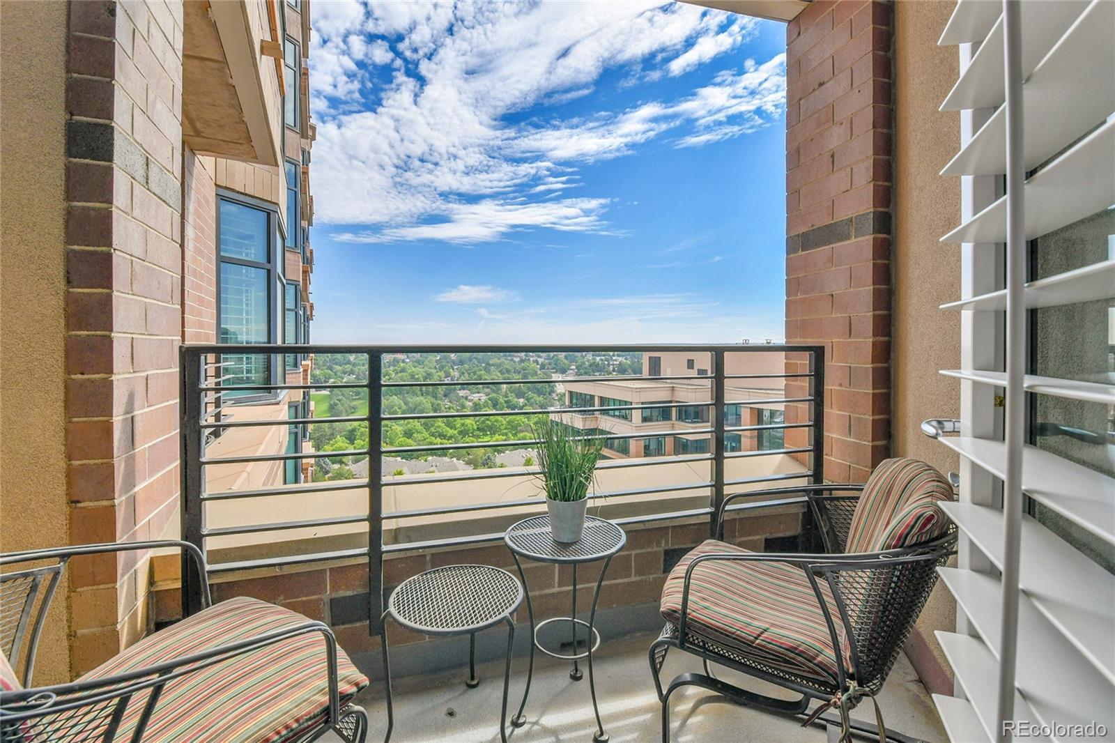 Luxurious, presitgious, urban living in heart of DTC. This beautifully appointed 2 bedroom, 2 1/2 bath residence on the 14th level of Penterra Plaza is now available. Step inside this gracious living area with an open floor plan of 1999 square feet highlighted by a gourmet kitchen with slab granite countertops, pantry, stainless steel appliances and ample cabinitry. Enjoy the dedicated dining area, an oversized living room, and a private office with built-in features. Wake up with morning coffee or wind down the evening on one of TWO private balconies with views looking towards Cherry Creek Reservoir. Both primary suites are generous size and feature walk-in closets and luxurious 5 piece en-suite bathrooms. Throughout the home you will find plantation shutters and elegant crown molding, a separate laundry room with included washer, dryer plus, multiple storage closets for convenience. This home will not disappoint and is move in ready. Your new home also comes with 2 deeded parking spaces with an additional storage unit. The building is pet friendly, with 24 hour concierge, security, on site management, a fully equipped fitness center, business center, community room with a full kitchen, new restaurant in the building coming soon, plus an expansive party terrace. Within walking distance to the DTC restaurants, parks, trails, guest parking. If you are looking to live in Denver's most desirable urban address, this is the building and home for you!
