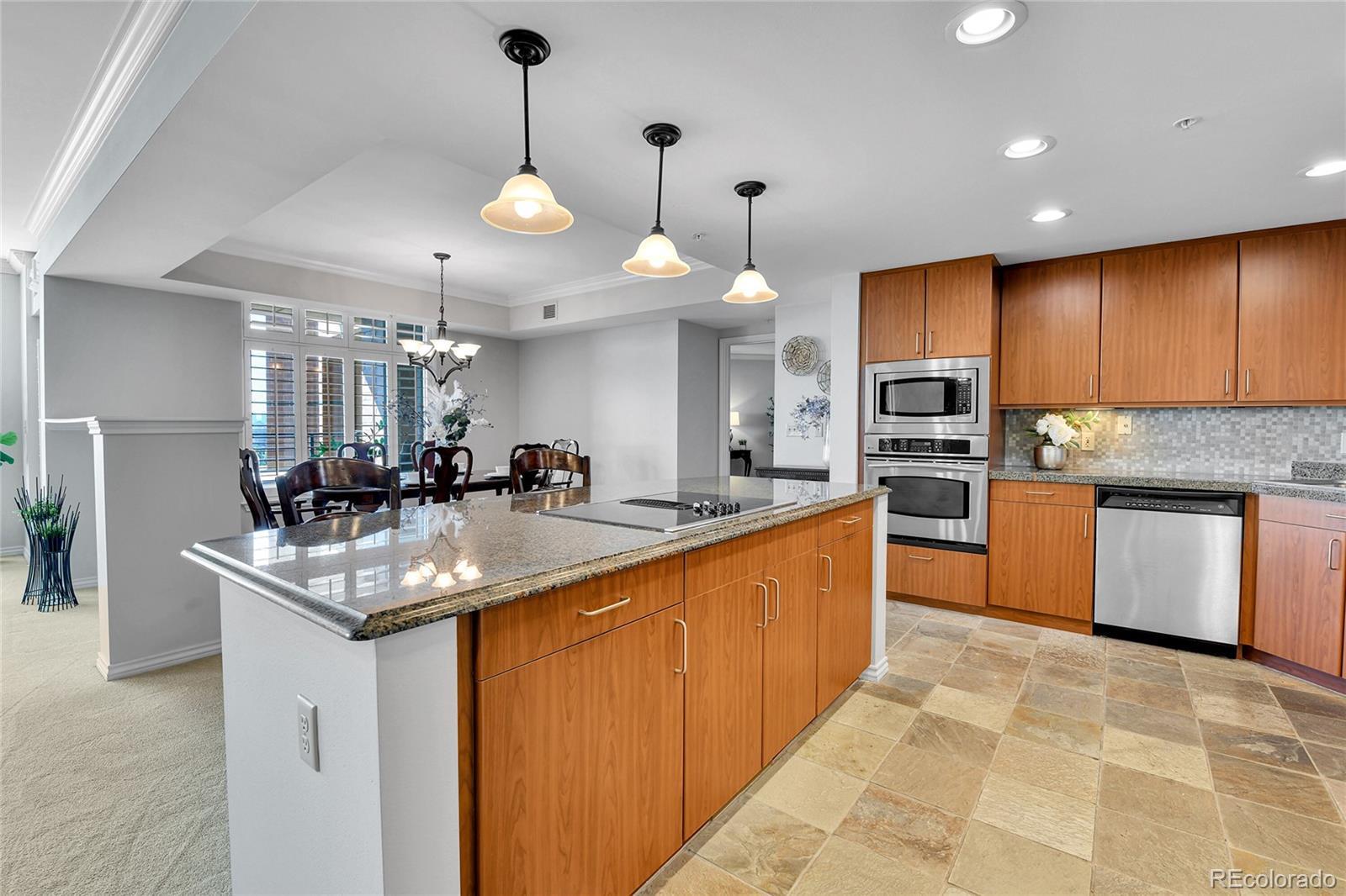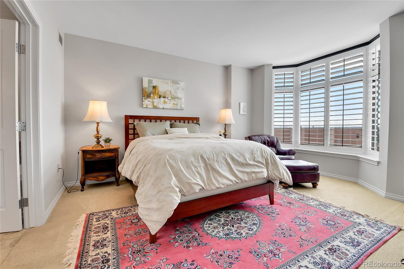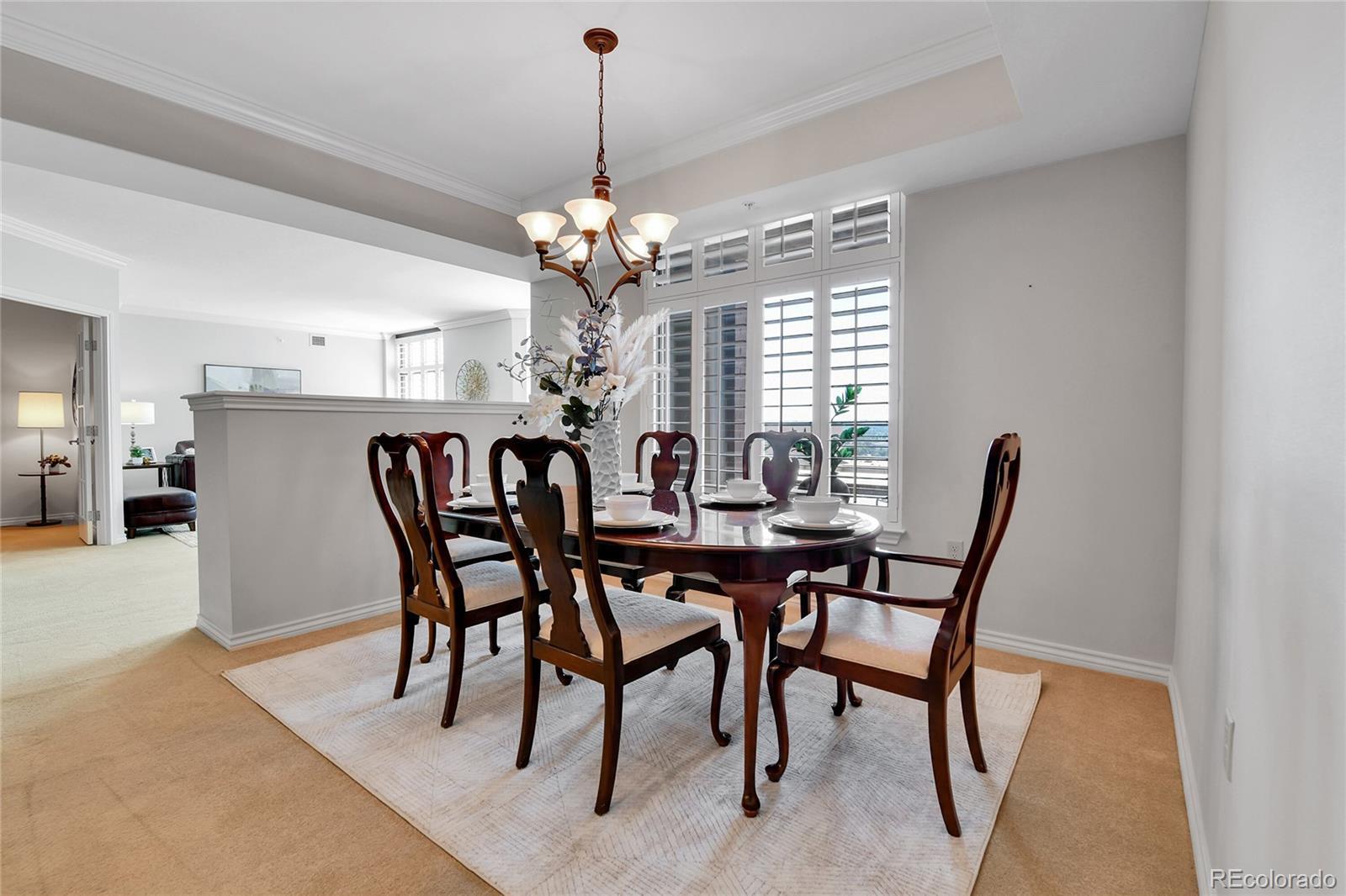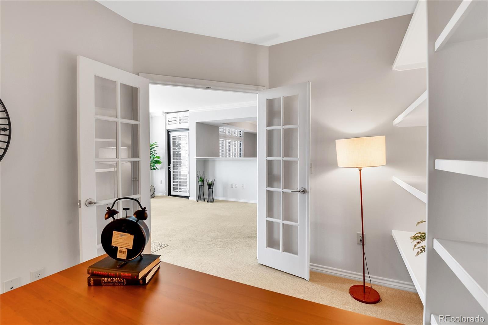 Luxurious, presitgious, urban living in heart of DTC. This beautifully appointed 2 bedroom, 2 1/2 bath residence on the 14th level of Penterra Plaza is now available. Step inside this gracious living area with an open floor plan of 1999 square feet highlighted by a gourmet kitchen with slab granite countertops, pantry, stainless steel appliances and ample cabinitry. Enjoy the dedicated dining area, an oversized living room, and a private office with built-in features. Wake up with morning coffee or wind down the evening on one of TWO private balconies with views looking towards Cherry Creek Reservoir. Both primary suites are generous size and feature walk-in closets and luxurious 5 piece en-suite bathrooms. Throughout the home you will find plantation shutters and elegant crown molding, a separate laundry room with included washer, dryer plus, multiple storage closets for convenience. This home will not disappoint and is move in ready. Your new home also comes with 2 deeded parking spaces with an additional storage unit. The building is pet friendly, with 24 hour concierge, security, on site management, a fully equipped fitness center, business center, community room with a full kitchen, new restaurant in the building coming soon, plus an expansive party terrace. Within walking distance to the DTC restaurants, parks, trails, guest parking. If you are looking to live in Denver's most desirable urban address, this is the building and home for you!