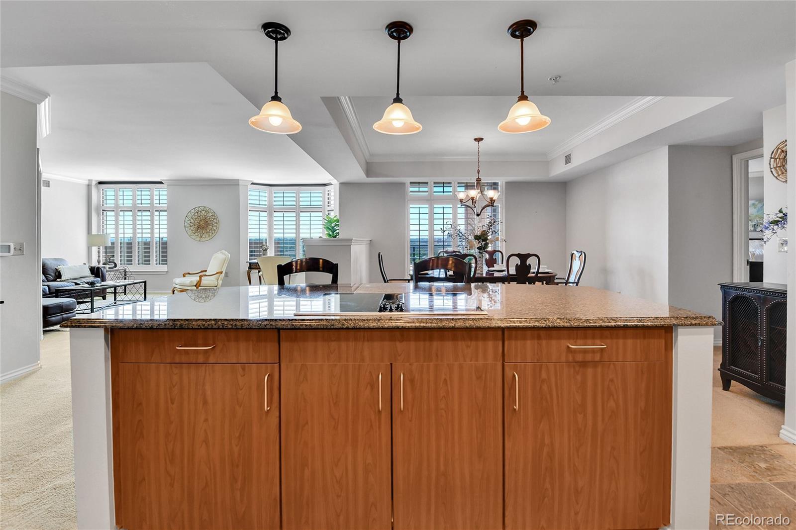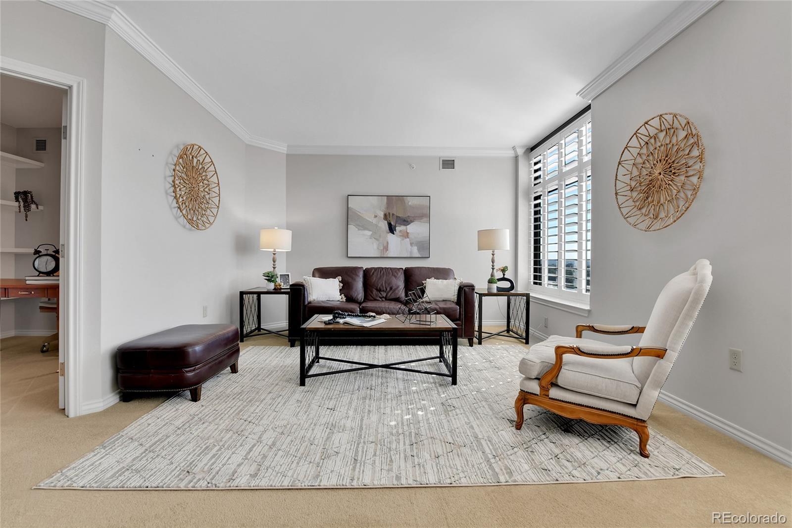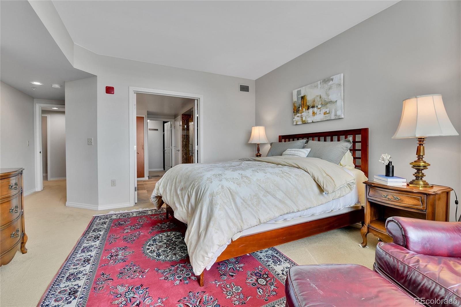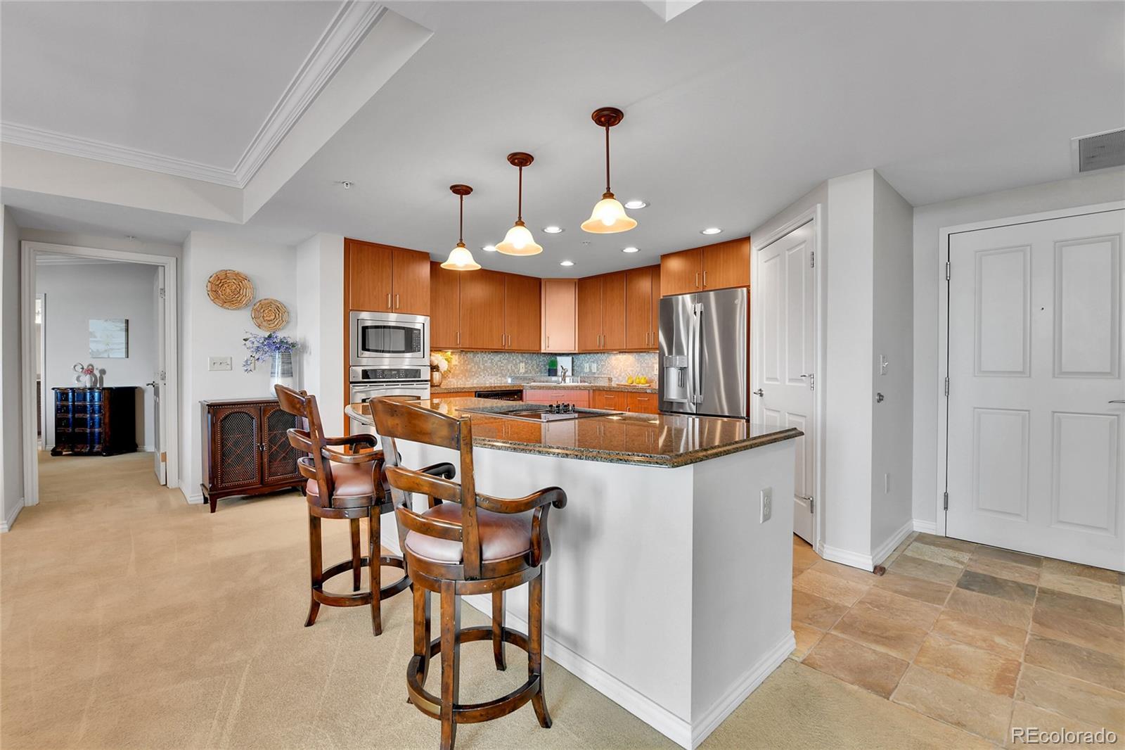 Luxurious, presitgious, urban living in heart of DTC. This beautifully appointed 2 bedroom, 2 1/2 bath residence on the 14th level of Penterra Plaza is now available. Step inside this gracious living area with an open floor plan of 1999 square feet highlighted by a gourmet kitchen with slab granite countertops, pantry, stainless steel appliances and ample cabinitry. Enjoy the dedicated dining area, an oversized living room, and a private office with built-in features. Wake up with morning coffee or wind down the evening on one of TWO private balconies with views looking towards Cherry Creek Reservoir. Both primary suites are generous size and feature walk-in closets and luxurious 5 piece en-suite bathrooms. Throughout the home you will find plantation shutters and elegant crown molding, a separate laundry room with included washer, dryer plus, multiple storage closets for convenience. This home will not disappoint and is move in ready. Your new home also comes with 2 deeded parking spaces with an additional storage unit. The building is pet friendly, with 24 hour concierge, security, on site management, a fully equipped fitness center, business center, community room with a full kitchen, new restaurant in the building coming soon, plus an expansive party terrace. Within walking distance to the DTC restaurants, parks, trails, guest parking. If you are looking to live in Denver's most desirable urban address, this is the building and home for you!