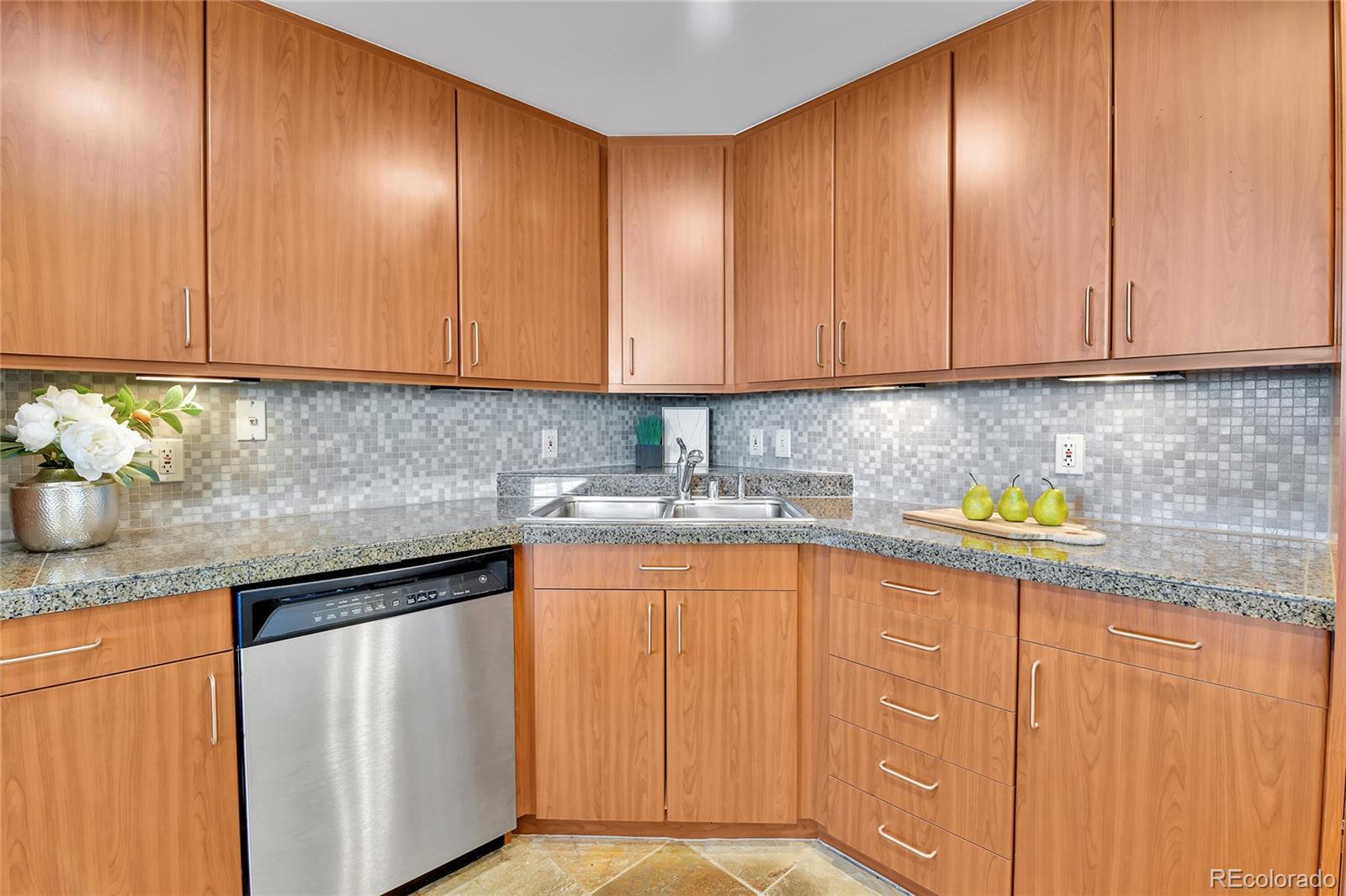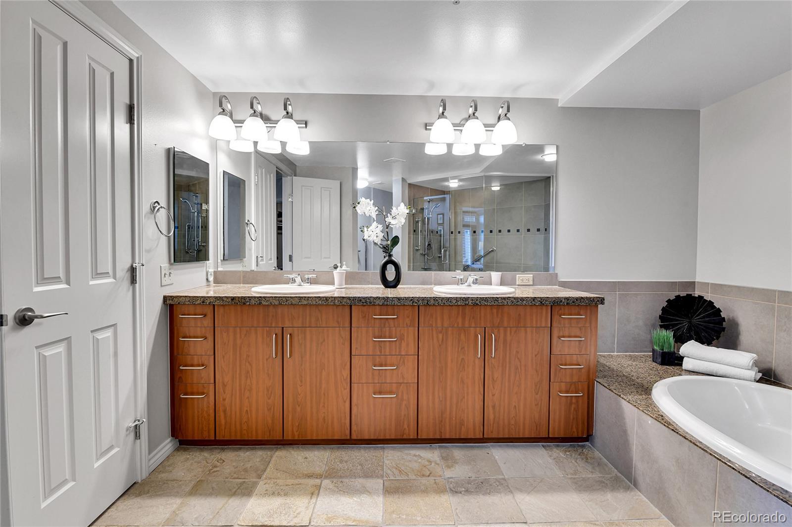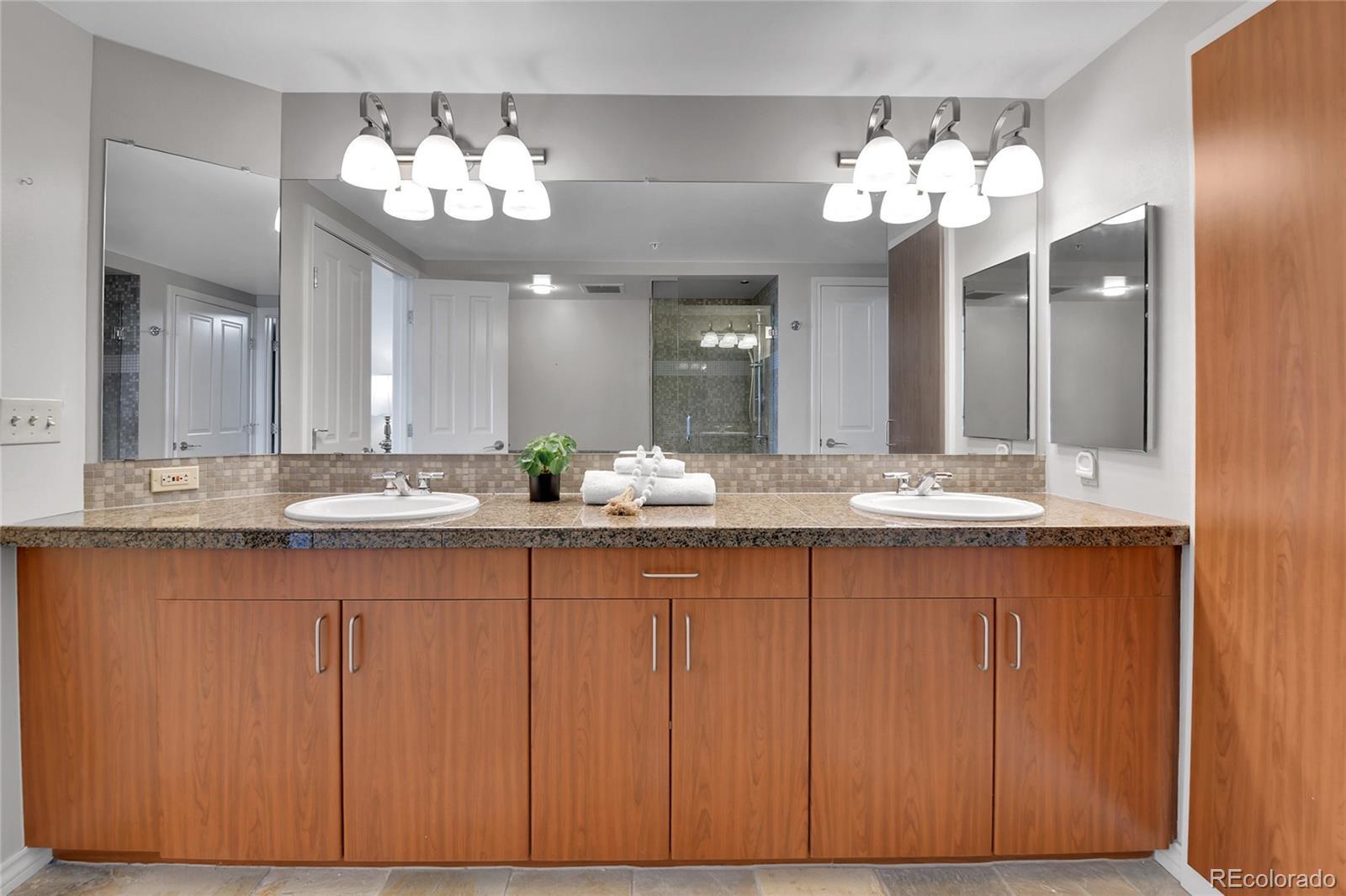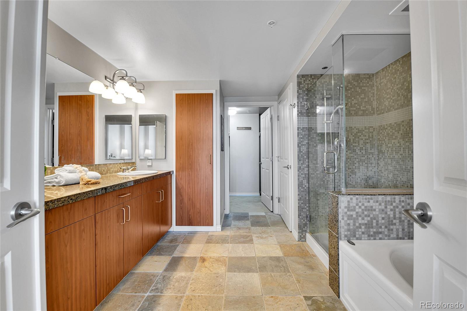 Luxurious, presitgious, urban living in heart of DTC. This beautifully appointed 2 bedroom, 2 1/2 bath residence on the 14th level of Penterra Plaza is now available. Step inside this gracious living area with an open floor plan of 1999 square feet highlighted by a gourmet kitchen with slab granite countertops, pantry, stainless steel appliances and ample cabinitry. Enjoy the dedicated dining area, an oversized living room, and a private office with built-in features. Wake up with morning coffee or wind down the evening on one of TWO private balconies with views looking towards Cherry Creek Reservoir. Both primary suites are generous size and feature walk-in closets and luxurious 5 piece en-suite bathrooms. Throughout the home you will find plantation shutters and elegant crown molding, a separate laundry room with included washer, dryer plus, multiple storage closets for convenience. This home will not disappoint and is move in ready. Your new home also comes with 2 deeded parking spaces with an additional storage unit. The building is pet friendly, with 24 hour concierge, security, on site management, a fully equipped fitness center, business center, community room with a full kitchen, new restaurant in the building coming soon, plus an expansive party terrace. Within walking distance to the DTC restaurants, parks, trails, guest parking. If you are looking to live in Denver's most desirable urban address, this is the building and home for you!