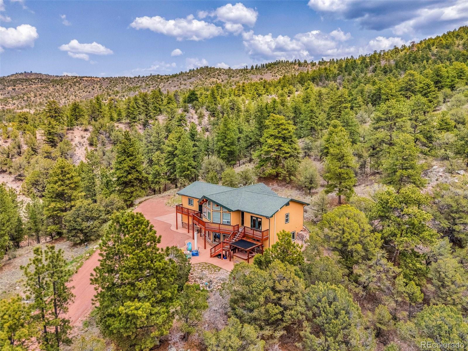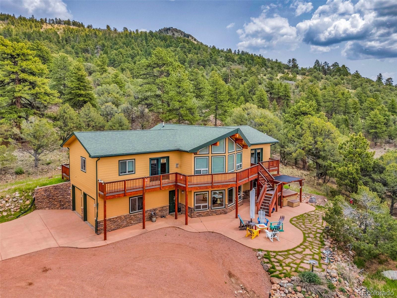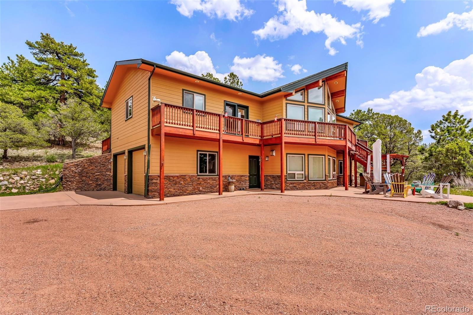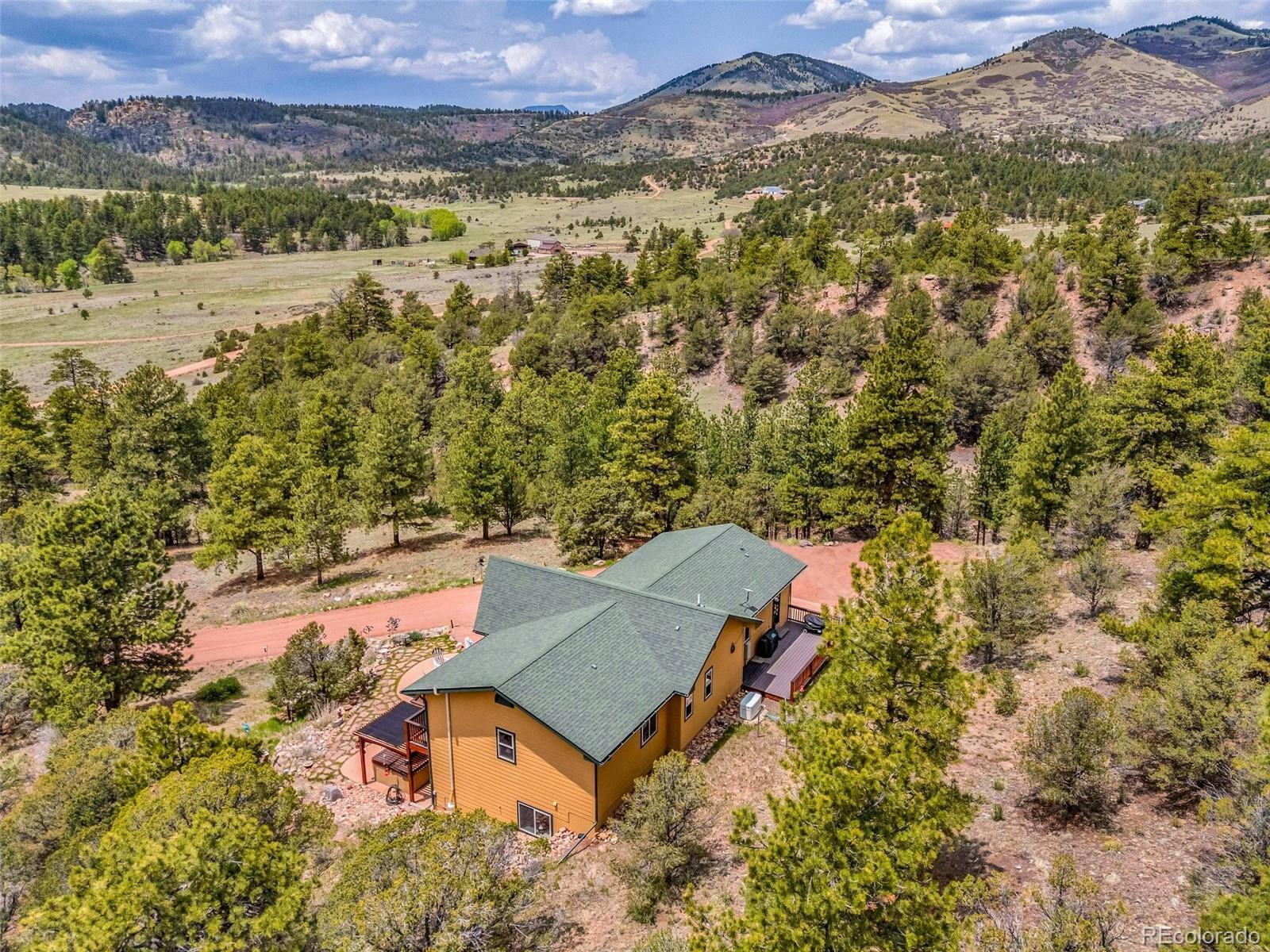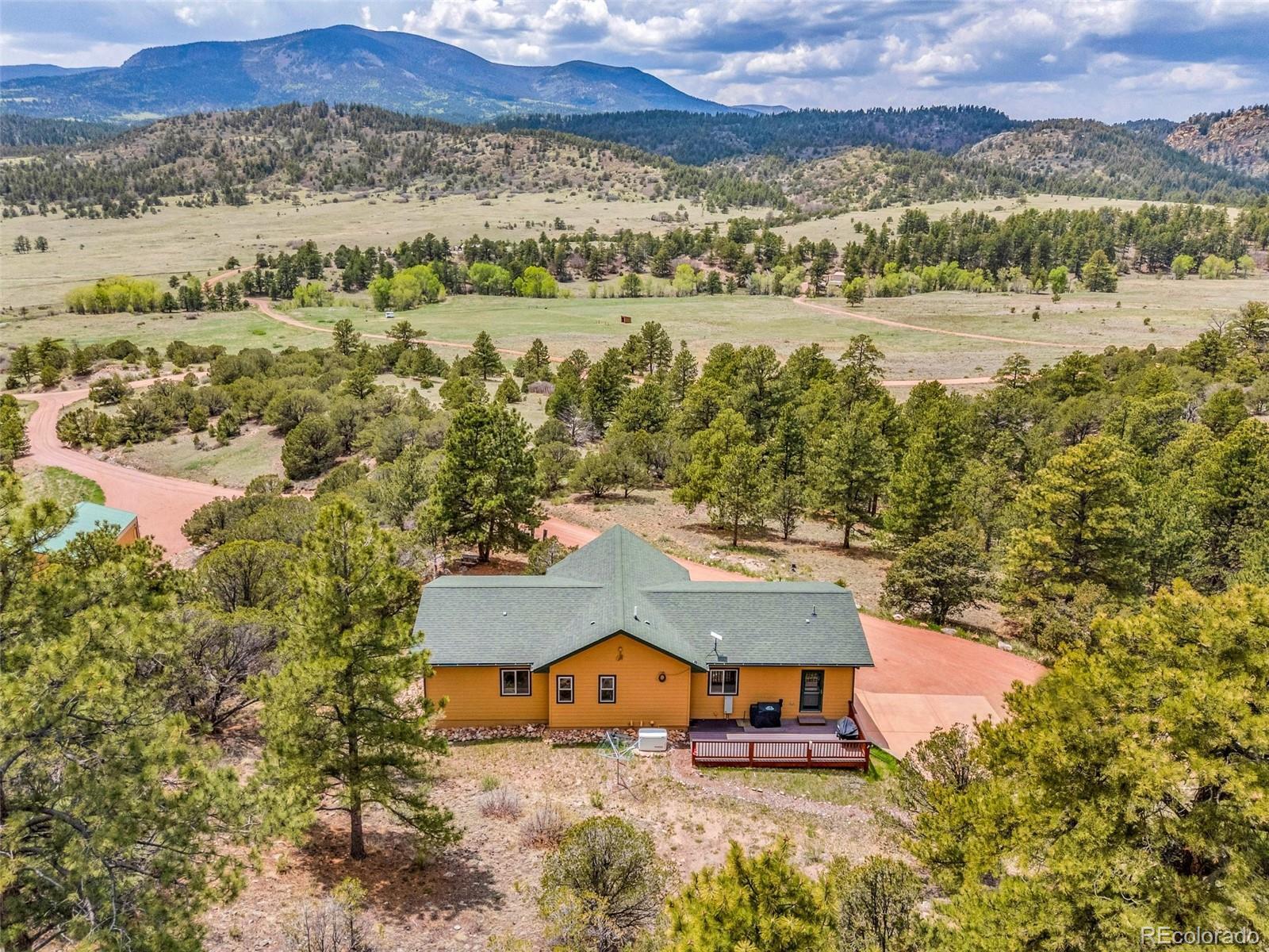 Welcome to your dream mountain escape! Nestled on 35 pristine acres with breathtaking views, this stunning home offers a peaceful lifestyle with every luxury you could imagine. The striking exterior, large deck in front and back, and expansive patio space set the tone for what's inside. Step into a warm, inviting kitchen featuring cherry cabinetry, granite countertops, and ample room to cook and entertain. Unwind in the dry sauna located in one of the home's well appointed bathrooms-perfect after a day outdoors. This home is equipped with thoughtful upgrades throughout, including a central whole-house vacuum system, a Generac 11kw whole-house generator, and a 1,700-gallon cistern for added self-sufficiency and Reverse Osmosis System. A bonus room that can be used as a home office, gym or even a nursery. Enjoy the incredible 30x42 detached insulated garage with 220v power and its own fireplace-ideal for a workshop, vehicle storage. Whether you're relaxing in the hot tub under the starts or enjoying morning coffee while soaking in the panoramic mountain views, this home delivers the ultimate Colorado lifestyle. Don't miss your opportunity to own this on-of-a-kind property that perfectly blends comfort, style, and unmatched natural beauty.