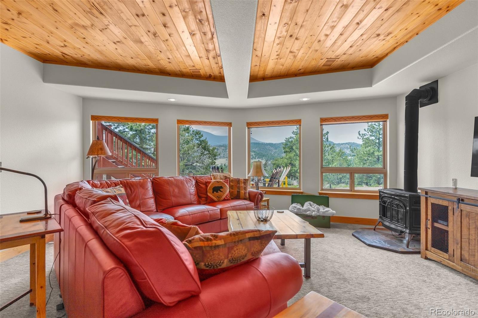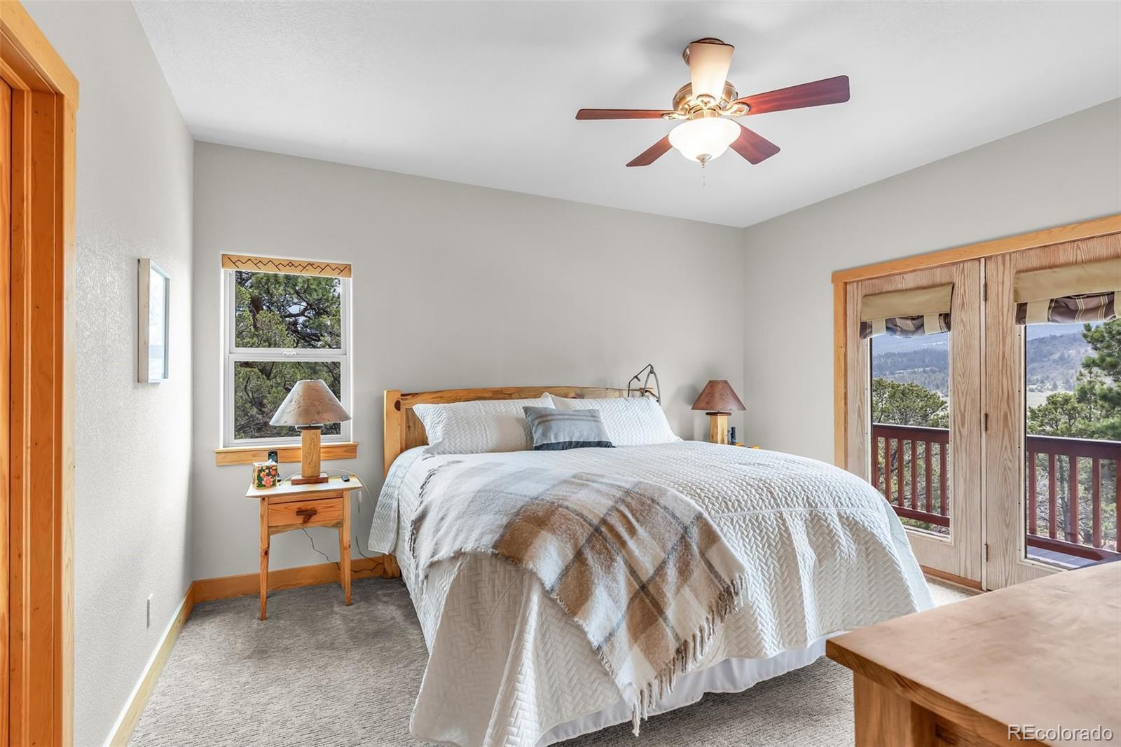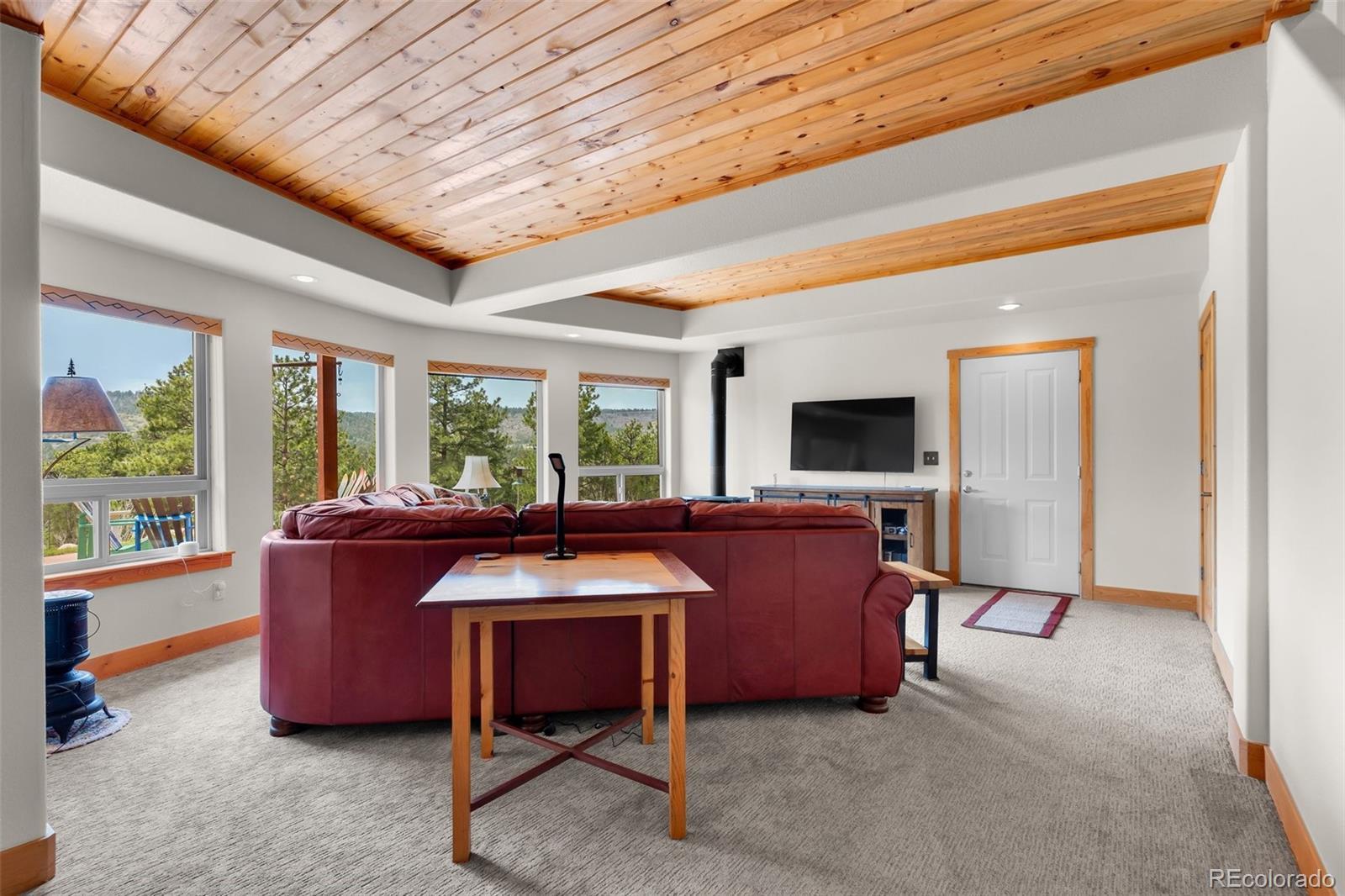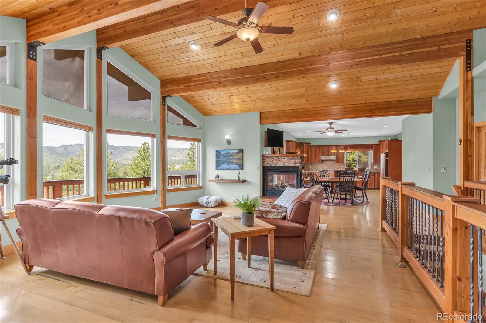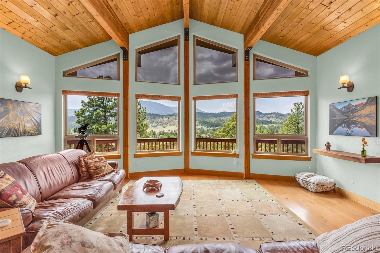 Welcome to your dream mountain escape! Nestled on 35 pristine acres with breathtaking views, this stunning home offers a peaceful lifestyle with every luxury you could imagine. The striking exterior, large deck in front and back, and expansive patio space set the tone for what's inside. Step into a warm, inviting kitchen featuring cherry cabinetry, granite countertops, and ample room to cook and entertain. Unwind in the dry sauna located in one of the home's well appointed bathrooms-perfect after a day outdoors. This home is equipped with thoughtful upgrades throughout, including a central whole-house vacuum system, a Generac 11kw whole-house generator, and a 1,700-gallon cistern for added self-sufficiency and Reverse Osmosis System. A bonus room that can be used as a home office, gym or even a nursery. Enjoy the incredible 30x42 detached insulated garage with 220v power and its own fireplace-ideal for a workshop, vehicle storage. Whether you're relaxing in the hot tub under the starts or enjoying morning coffee while soaking in the panoramic mountain views, this home delivers the ultimate Colorado lifestyle. Don't miss your opportunity to own this on-of-a-kind property that perfectly blends comfort, style, and unmatched natural beauty.