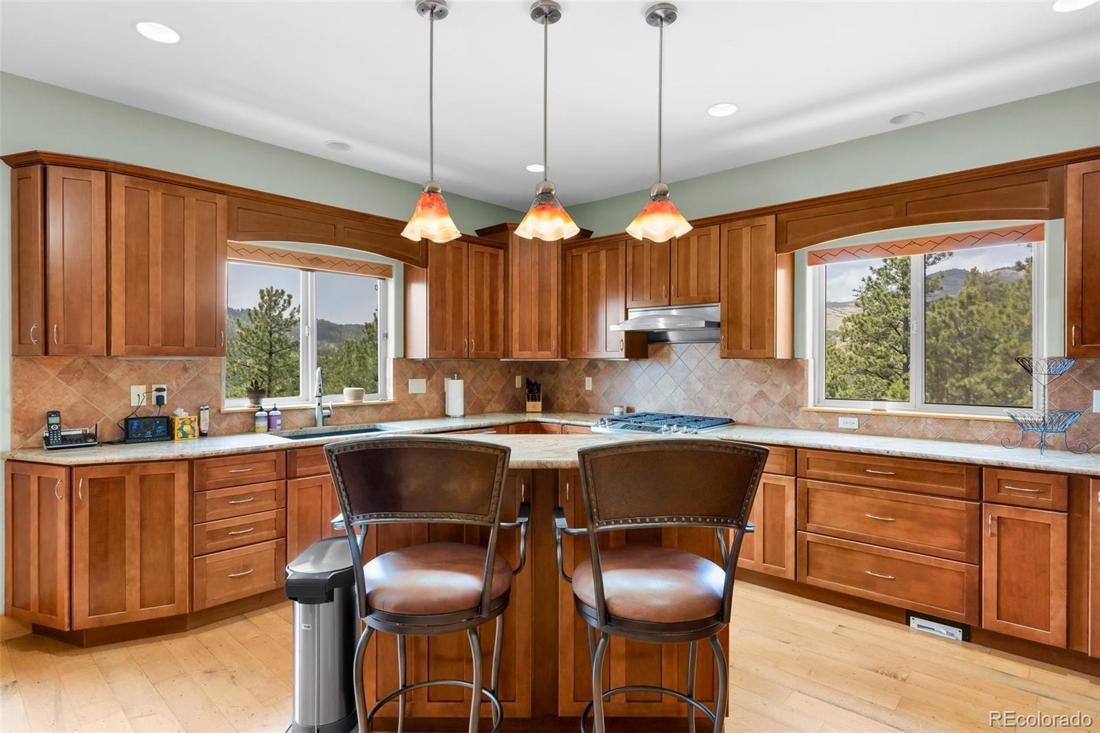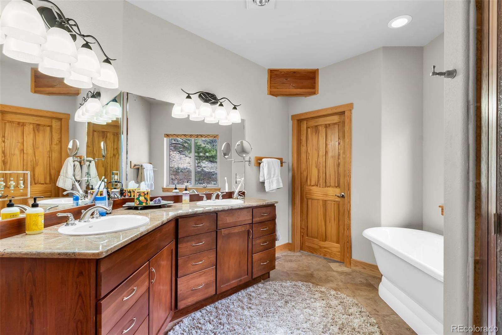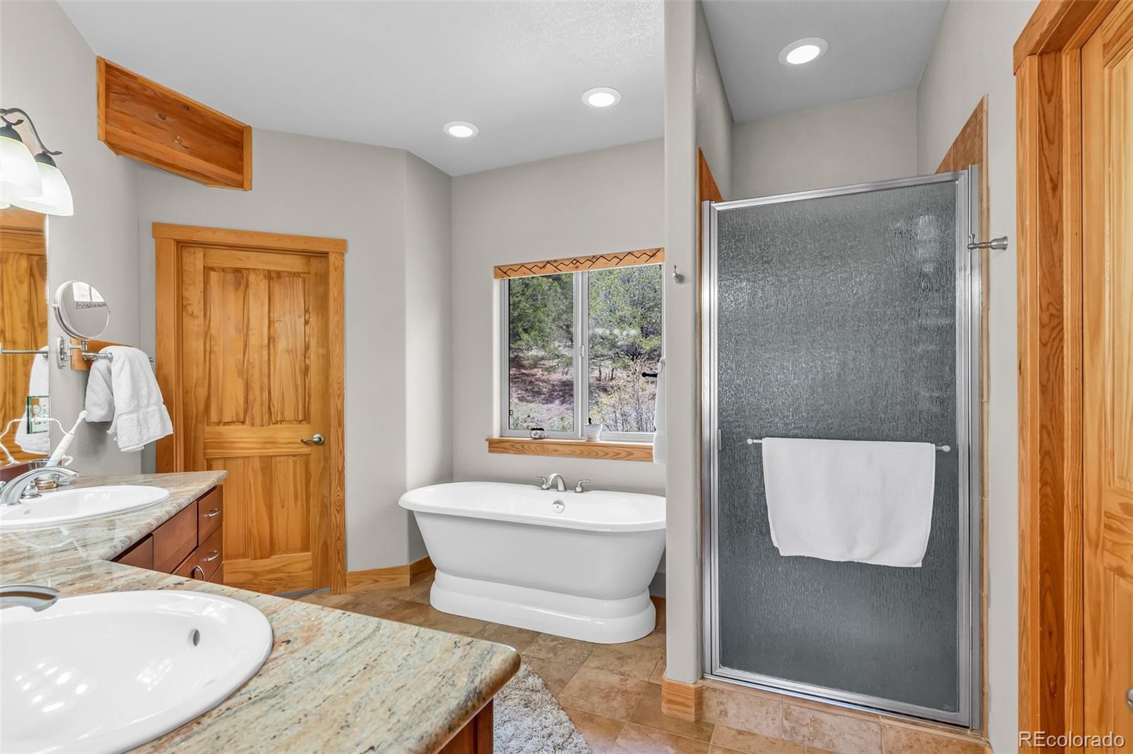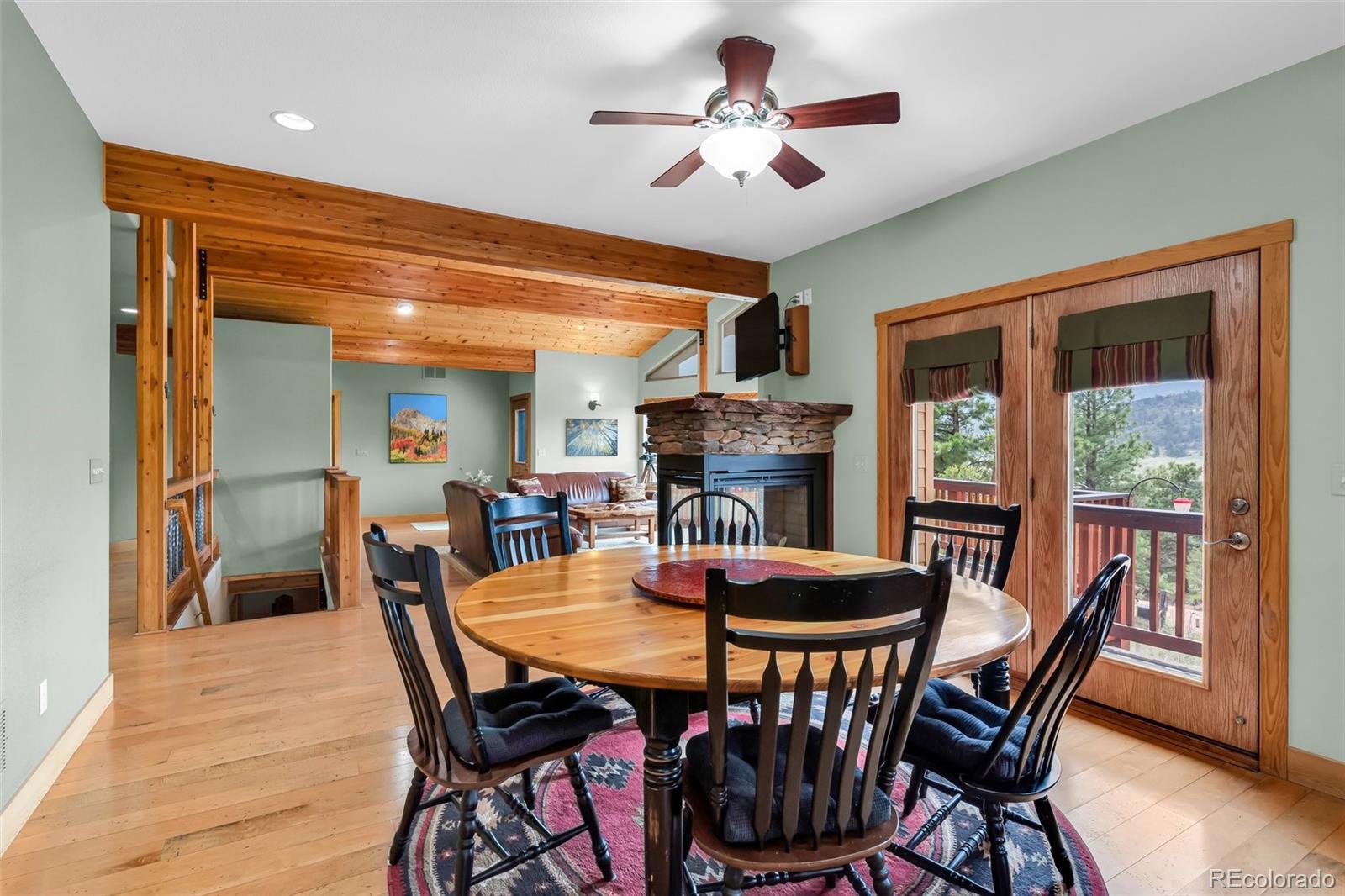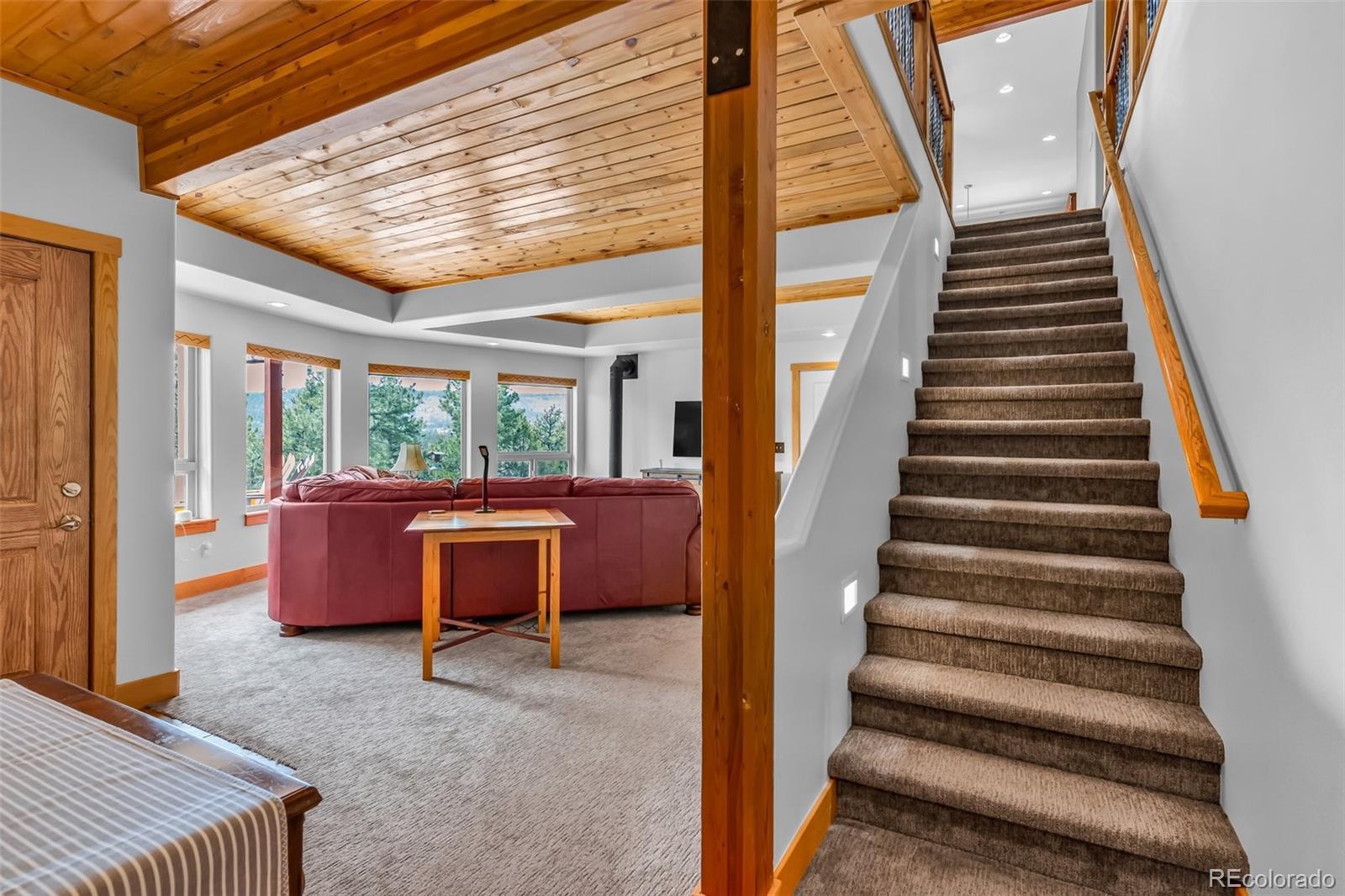 Welcome to your dream mountain escape! Nestled on 35 pristine acres with breathtaking views, this stunning home offers a peaceful lifestyle with every luxury you could imagine. The striking exterior, large deck in front and back, and expansive patio space set the tone for what's inside. Step into a warm, inviting kitchen featuring cherry cabinetry, granite countertops, and ample room to cook and entertain. Unwind in the dry sauna located in one of the home's well appointed bathrooms-perfect after a day outdoors. This home is equipped with thoughtful upgrades throughout, including a central whole-house vacuum system, a Generac 11kw whole-house generator, and a 1,700-gallon cistern for added self-sufficiency and Reverse Osmosis System. A bonus room that can be used as a home office, gym or even a nursery. Enjoy the incredible 30x42 detached insulated garage with 220v power and its own fireplace-ideal for a workshop, vehicle storage. Whether you're relaxing in the hot tub under the starts or enjoying morning coffee while soaking in the panoramic mountain views, this home delivers the ultimate Colorado lifestyle. Don't miss your opportunity to own this on-of-a-kind property that perfectly blends comfort, style, and unmatched natural beauty.