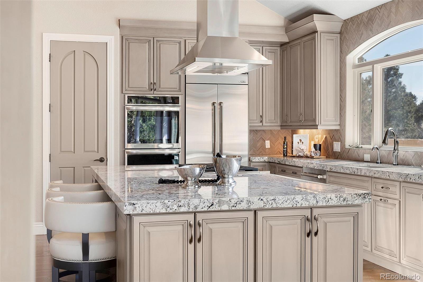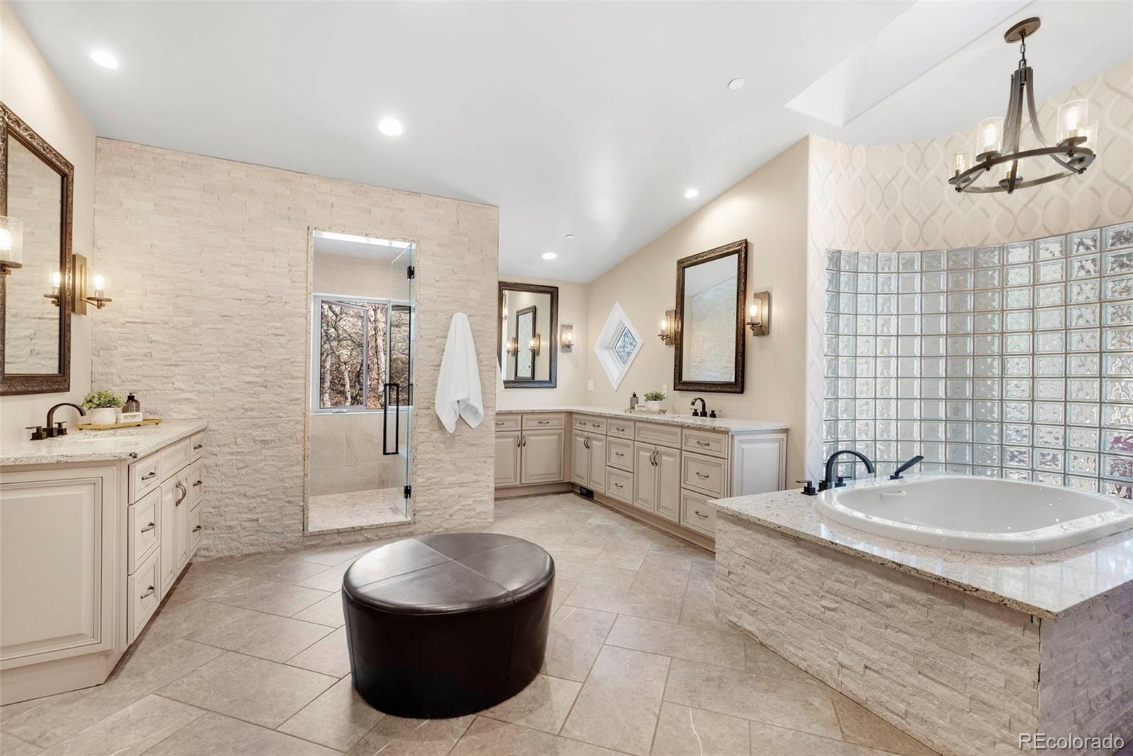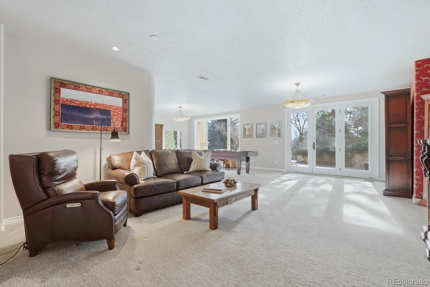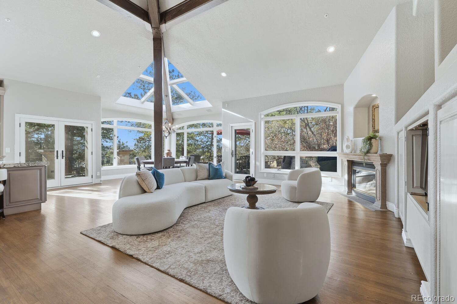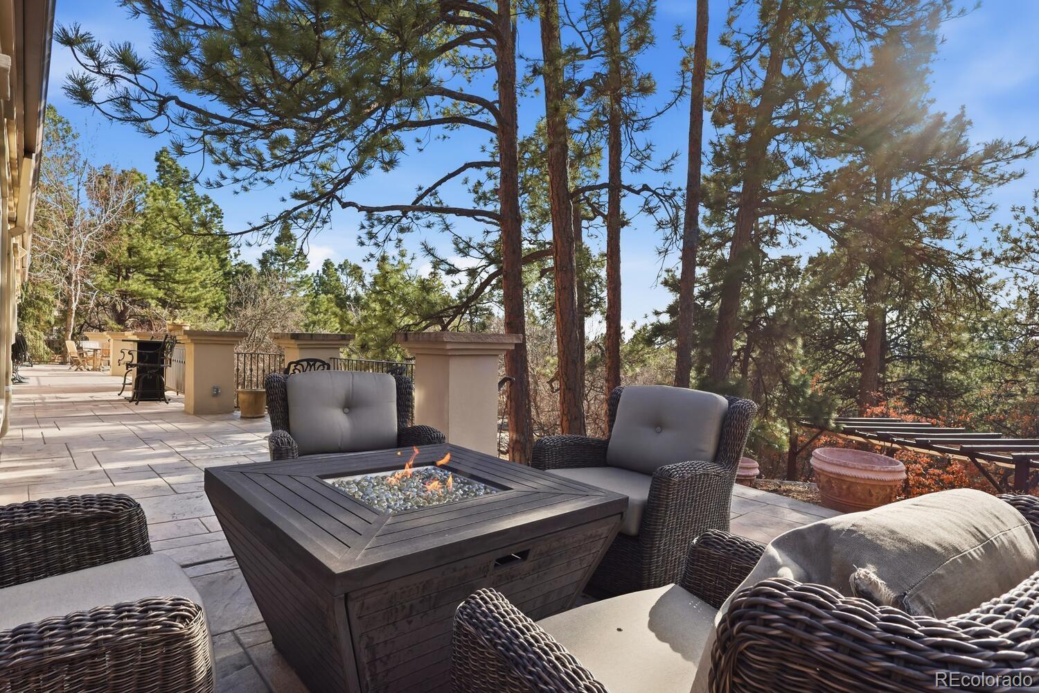 OPEN SUN 12-4 MOTIVATED SELLER! QUICK POSSESSION Luxury Masterpiece located within the Village at Castle Pines, 1.3 acres of privacy and landscaped terrain bordered by open space. This MAME Award winning floor plan consists of vaulted ceilings, massive wooden beams, custom features and finishes throughout. Includes a 3-car garage with workshop, enclosed dog-run, private drive and abundant storage. The 2-story great room features open and airy panoramic window views, fireplace and opens to an elevated stamped concrete deck, pergola and gas fire table. This home offers spectacular Colorado views and entertaining areas. The formal living and dining rooms boast a limestone fireplace, hardwood floors, custom-built buffet and large picture windows. The kitchen is a Chef’s dream with a sky-lit dining area, huge great room, granite countertops, stainless appliances, 6-burner gas range dual wine coolers, double-ovens & large pantry. The primary suite is a true retreat with 2-sided fireplace, private balcony, custom walk-in closet & spa-inspired bath featuring heated flooring, steam shower, dual vanities, soaking tub & custom finishes. A second master suite, equally impressive, features a 5-piece bath and walk-in closet. The lower level features a family/game room, laundry room and a walkout lower level to the garden level patio. A large guest suite includes custom built-in desk and cabinets, large walk-in closet and a spacious full bath complete the lower level. This stunning home is located north of Castle Rock within the Village at Castle Pines, enjoys the security of 24/7 gated & staffed emergency services. Amenities include multiple pools, a premier fitness facility, tennis, pickleball courts, parks and trails and is home to 2 of Colorado’s premier private golf clubs. Close proximity to the DTC, hospitals, and top rated Douglas County schools; including top-tier private & public schools: American Academy, Regis & Valor Christian High School.