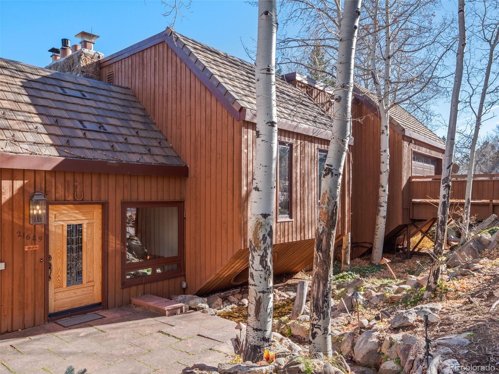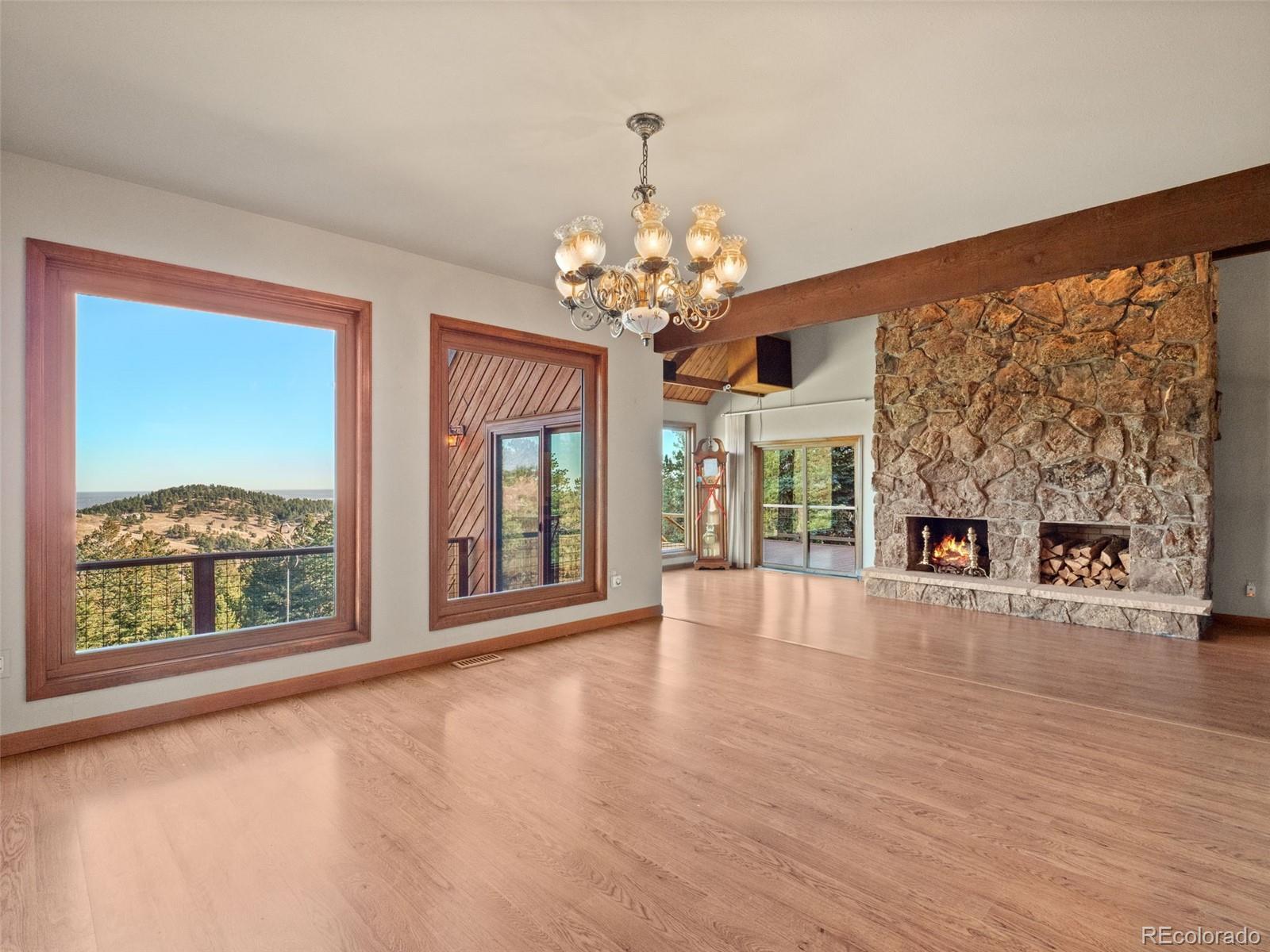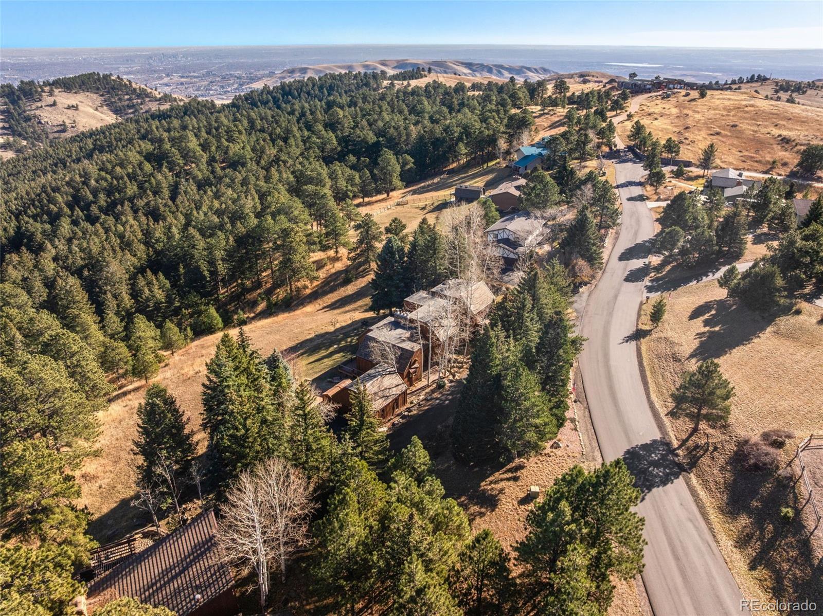 Experience exceptional city & mountain views from this beautifully situated & very well-priced home in Paradise Hills. Beyond the primary 1.13-acre, the property includes a 1/8 deeded ownership interest in a 20 acres of land behind the home, conveyed with the sale. These 20 acres feature roughly 10 acres of open meadow with sweeping, unobstructed views of Apex Trail & the Enchanted Forest, along with approximately 10 more acres of wooded terrain—an ideal for outdoor enjoyment. The location offers rare convenience: just minutes to Downtown Denver, the Tech Center, Red Rocks and Evergreen, 40 minutes to Boulder, one hour to major ski areas, & an easy commute to DIA. The home provides a total of four garage spaces, with two attached & two detached. The moment you enter, you’re greeted by striking east-facing mountain views captured through large windows/vaulted ceilings. With close proximity to both city amenities and mountain escapes, the setting offers an exceptional blend of modern living and classic Colorado lifestyle. Located in the Paradise Hills enclave of Lookout Mountain, this home sits in an irreplaceable spot with far-reaching views. The spacious main level includes an expansive newer deck oriented toward the city, maximizing light and amazing views throughout. The gently sloping 43,996-square-foot lot allows for easy outdoor use, supported by a wide driveway for extra parking or play. The upper level includes 3,163 (3,876 total) square feet with a generous primary suite, two more bedrooms & updated bath, striking rock fireplace, and a large eat-in kitchen framed by a wall of windows. A formal living and dining area opens to the deck for seamless indoor-outdoor entertaining. The lower level features an additional bedroom, updated bathroom, family room, fireplace, large laundry area, great bar, and ample storage. This is a rare chance to renovate with your own style while benefiting from existing upgrades, including a newer roof. Come get this great home!
