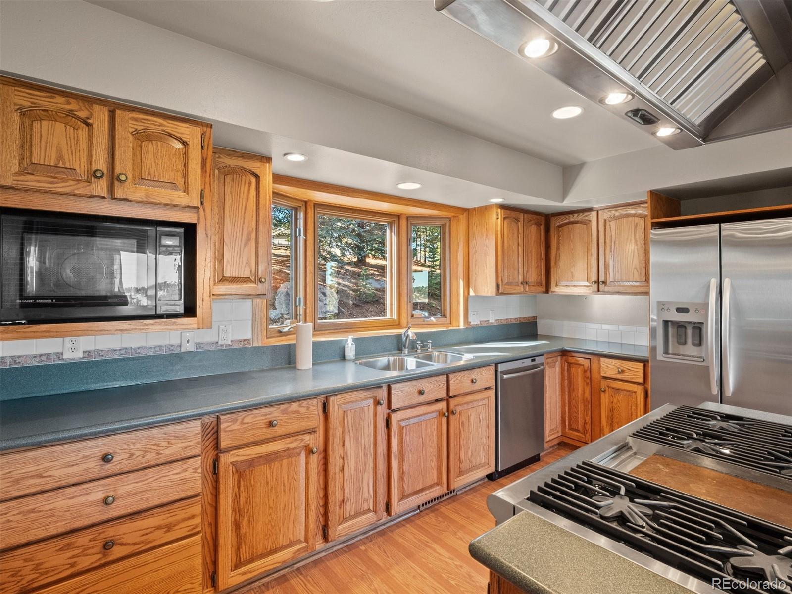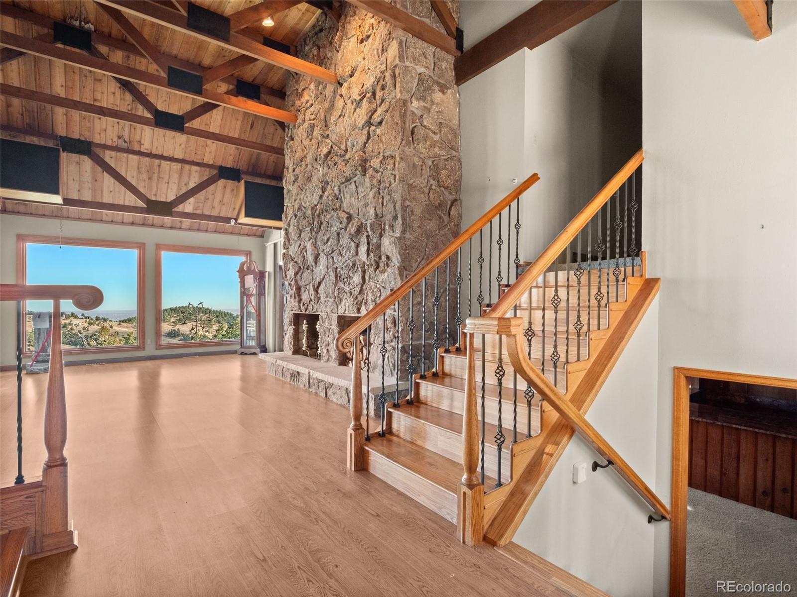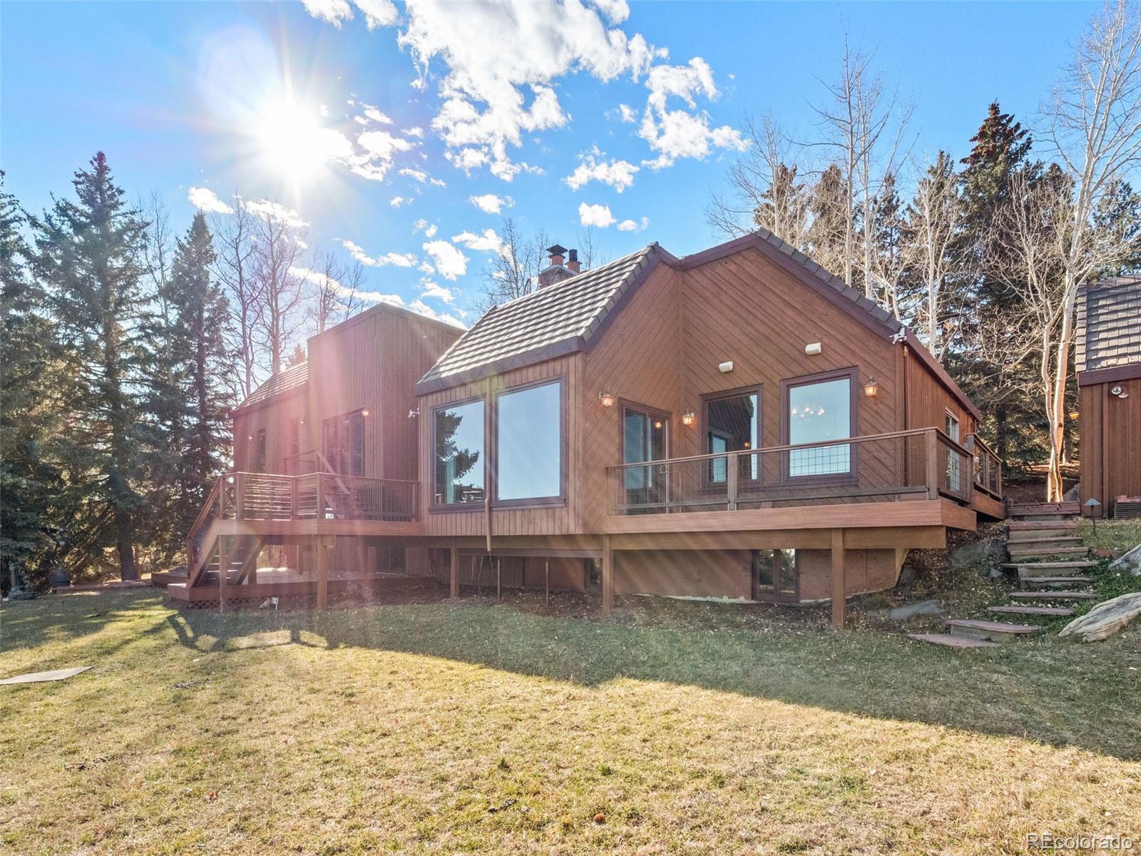 Experience exceptional city & mountain views from this beautifully situated & very well-priced home in Paradise Hills. Beyond the primary 1.13-acre, the property includes a 1/8 deeded ownership interest in a 20 acres of land behind the home, conveyed with the sale. These 20 acres feature roughly 10 acres of open meadow with sweeping, unobstructed views of Apex Trail & the Enchanted Forest, along with approximately 10 more acres of wooded terrain—an ideal for outdoor enjoyment. The location offers rare convenience: just minutes to Downtown Denver, the Tech Center, Red Rocks and Evergreen, 40 minutes to Boulder, one hour to major ski areas, & an easy commute to DIA. The home provides a total of four garage spaces, with two attached & two detached. The moment you enter, you’re greeted by striking east-facing mountain views captured through large windows/vaulted ceilings. With close proximity to both city amenities and mountain escapes, the setting offers an exceptional blend of modern living and classic Colorado lifestyle. Located in the Paradise Hills enclave of Lookout Mountain, this home sits in an irreplaceable spot with far-reaching views. The spacious main level includes an expansive newer deck oriented toward the city, maximizing light and amazing views throughout. The gently sloping 43,996-square-foot lot allows for easy outdoor use, supported by a wide driveway for extra parking or play. The upper level includes 3,163 (3,876 total) square feet with a generous primary suite, two more bedrooms & updated bath, striking rock fireplace, and a large eat-in kitchen framed by a wall of windows. A formal living and dining area opens to the deck for seamless indoor-outdoor entertaining. The lower level features an additional bedroom, updated bathroom, family room, fireplace, large laundry area, great bar, and ample storage. This is a rare chance to renovate with your own style while benefiting from existing upgrades, including a newer roof. Come get this great home!
