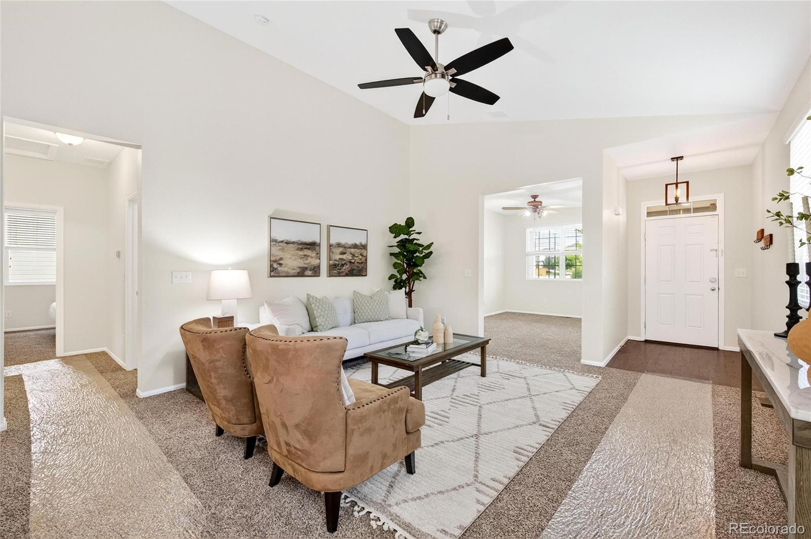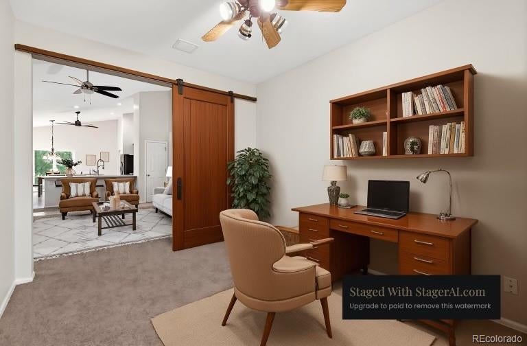 ***A SUPER POWER BUY**** Office (or bedrom 3???) AND 2 Bedroom RANCH Home with great upgrades! Back on the market (buyer financing) This 2 Bed/1 Office home is immaculate. New carpet, fresh paint, this home offers nearly 1900 sf ...bigger than most Ranch homes in the area. Upgrades include: LARGE FRONT PORCH, LARGE CONCRETE PATIO, SUNSETTER AWNING, ROLL-OUT DRAWERS in KITCHEN, (2) MECHANICAL CEILING STORAGE LIFTS, a MURPHY BED, CEILING FANS, TILED SHOWER. The open floor plan is light and bright with a low maintenance yard. Inside, there is a spacious primary suite with a tiled shower and a large walk-in closet. The second bedroom includes a very nice Murphy bed and tons of storage. The garage is the last piece of candy in that there is a ton of storage including (2) motorized ceiling lifts! This home is located close to I76, HWY85, Big box shopping, restaurants, garden centers and groceries within just a few minutes with the car. Don't buy New when you can enjoy turn key ready at an aggressive price. Truly, this home is the best value in the area!!!