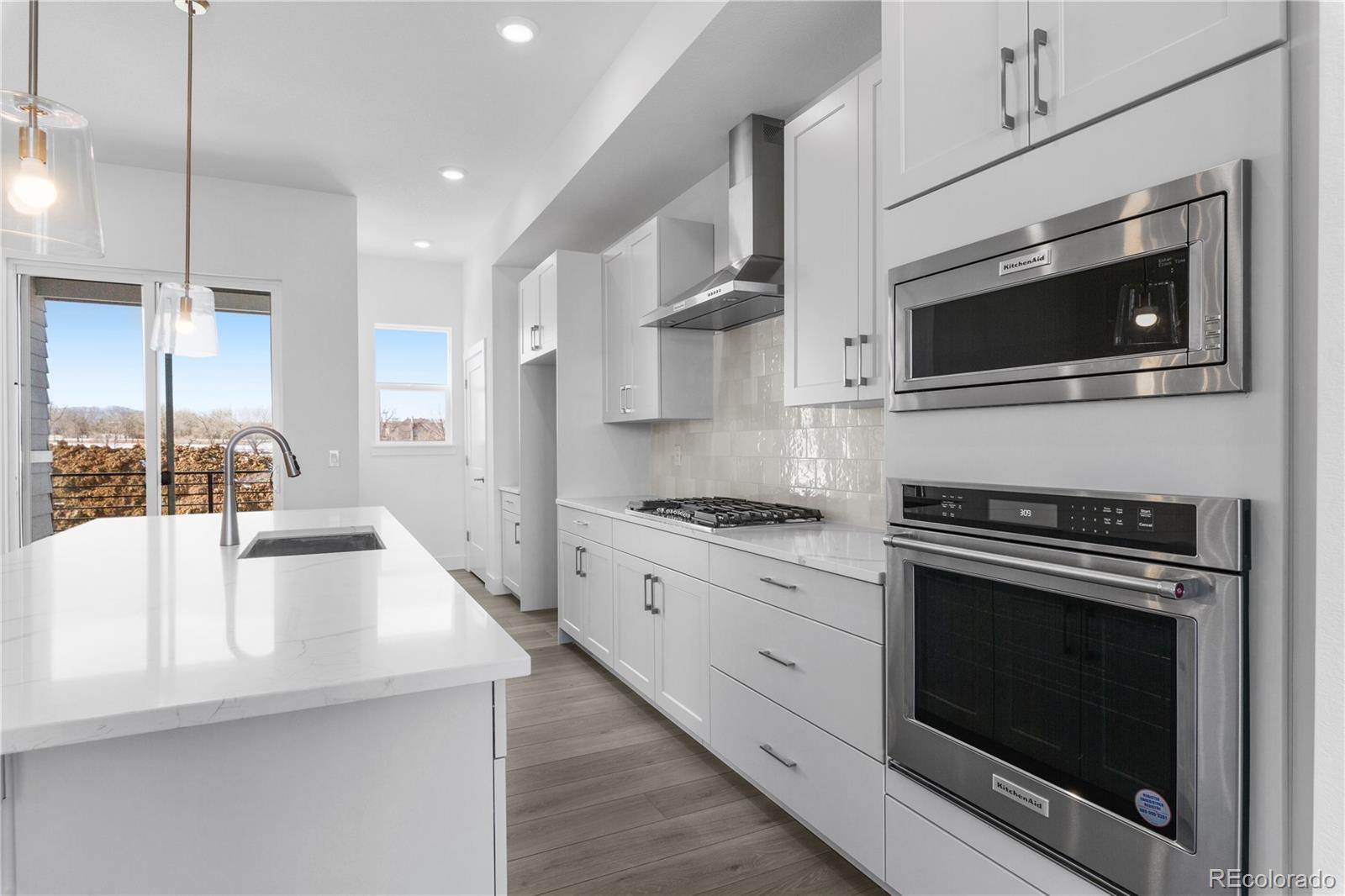 SPACIOUS ENTRY AND CLOSET FOR ALL YOUR OUTDOOR GEAR! This impressive Antora is one of our three story townhomes offering a perfect balance of style, efficiency, and convenience. The ground floor includes a private study, ideal for remote work or quiet reading, while the heart of the home unfolds on the second level with an airy open concept living space. A chef’s kitchen takes center stage, complete with KitchenAid appliances, quartz countertops, and a spacious island for meal prep or casual dining. Designer selected finishes, elegant lighting, and sleek hardware elevate every room with a modern yet inviting feel. The top floor features two comfortable bedrooms, each with its own full bath, offering personal space and flexibility. Extend your living outdoors on the private rooftop deck, where you can entertain or simply take in the expansive views and evening sunsets. Built to ENERGY STAR® standards, this home ensures year round comfort and lower utility bills. Located in the sought-after Broomfield community with nearby shops, trails, and easy access to major highways, this move-in ready home delivers a lifestyle of both luxury and convenience.
