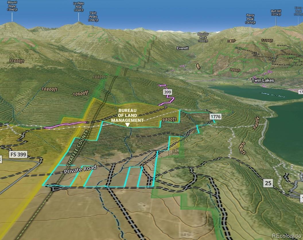 362 +/- acre Colorado ranch for sale located at the base of the Sawatch Mountain Range just below the Continental Divide between Buena Vista and Leadville. Elevation ranges from 9400 feet to just under 10,000 feet consisting of tall timbered ridges and hillsides at the upper elevation dropping down through expansive aspen groves, springs and ponds to the grassy meadows and sage brush flats on the lower end. The ranch borders public land on three sides sharing approximately 4.5 miles of boundary with the BLM and National Forest providing direct access to over one million acres of public land in the San Isabel National Forest, including the land from the ranch boundary to the shores of the 2,700 acre Twin Lakes, ½ mile away. The ranch offers excellent hunting opportunities for elk, deer, antelope, and occasionally moose in GMU 48 and typically receives 3-4 elk and 3-4 deer tags annually through the Land-Owner Preference Program. There are good roads through the ranch providing access to all areas. Multiple springs on ranch create lush areas of grass and cover for wildlife and water for three ponds, one stocked with trout. The shell of an old cabin stands as a reminder of the property’s early history and offers a perfect building site with power and well in place. The ranch is not encumbered by covenants or conservation easement leaving opportunities to develop or conserve the property to benefit of the new owner. The nearby towns of Leadville (17 miles), Buena Vista (22 miles), and Salida (45 miles) offer all the necessary amenities including FBO airports, historical districts, dining, groceries, and more. Commercial flights are available 2.5 hours from the ranch via Denver International Airport or Colorado Springs Airport.