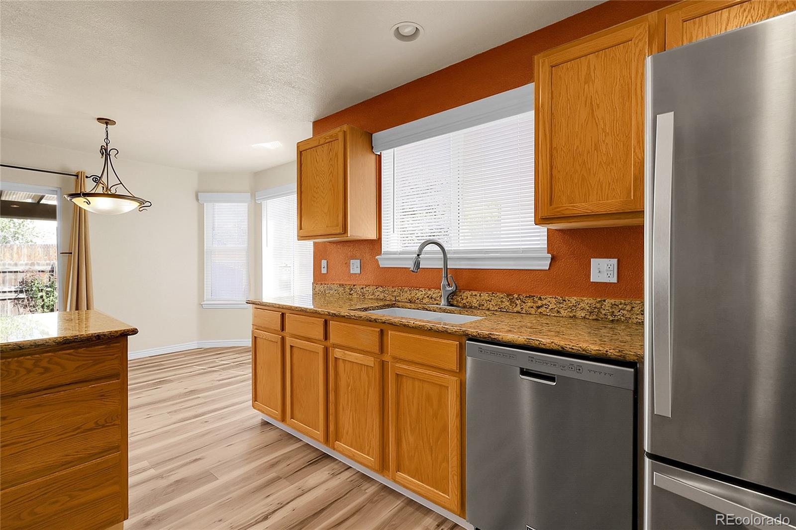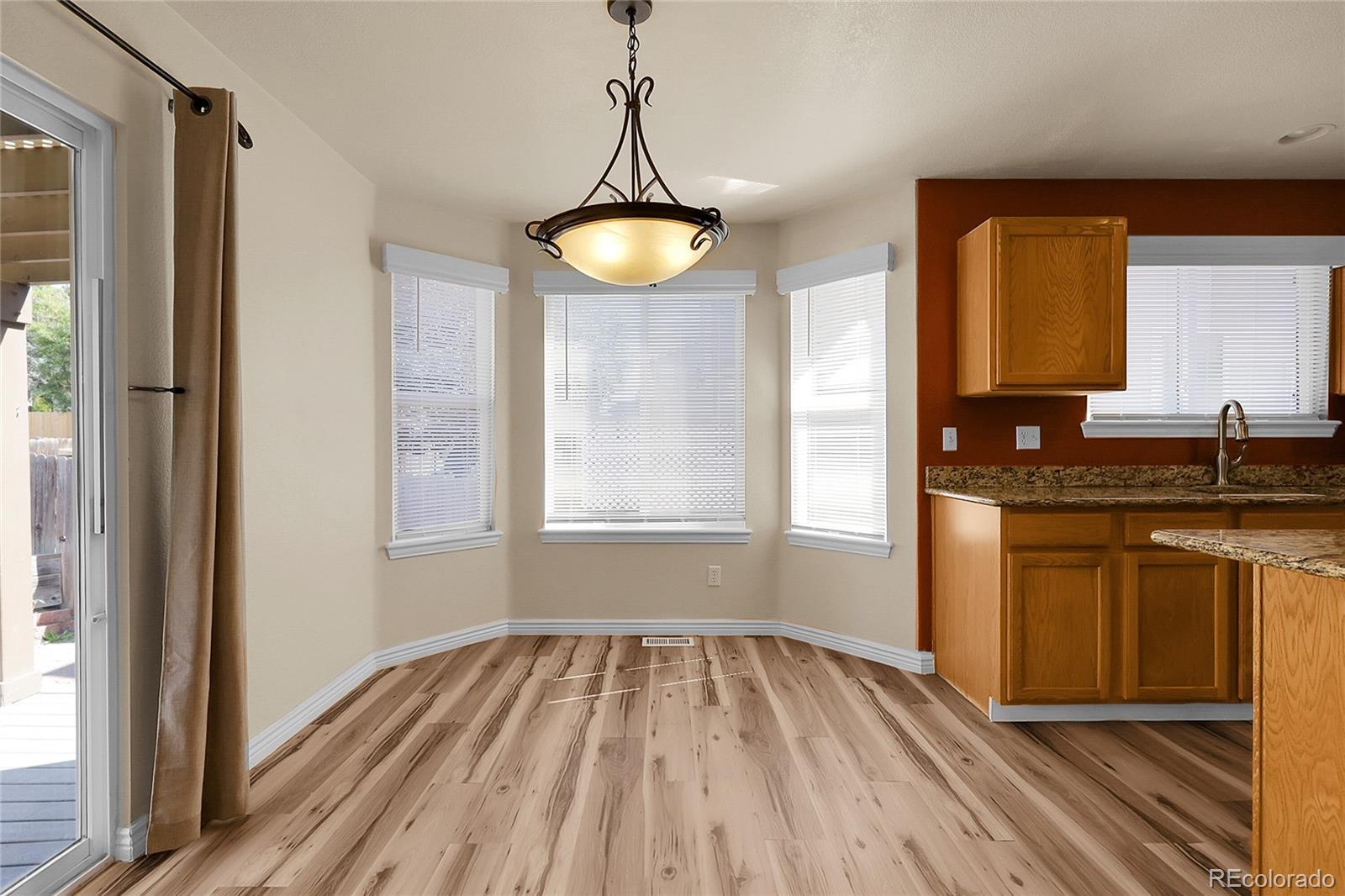 Welcome to this beautiful ranch-style home located in the highly sought-after Cherry Creek School District and conveniently close to shopping and amenities. Inside, you’ll find brand-new carpet, granite countertops, and an inviting open floor plan that creates a seamless flow between the living, dining, and kitchen areas. The living room features a skylight that adds warmth and brightness to the space. The spacious master bedroom includes its own private bathroom, while the versatile third bedroom can easily serve as a home office or study. Enjoy outdoor living with a welcoming front porch and a relaxing covered patio, plus the added privacy of backing to open space. The unfinished basement is ready for your personal touch, perfect for adding extra living space, a home gym, or entertainment area.