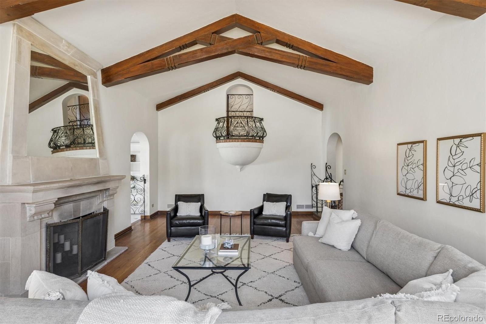 This rare gem in the heart of Old Crestmoor is an incredible opportunity for the discerning buyer. Located on coveted Ivy Lane just off tree-lined Sixth Avenue Parkway, a perfect location, rich in style, beauty, and history. The Spanish Mediterranean architecture with its blue tile roof makes this one of Crestmoor’s most iconic homes, boasting five bedrooms & five baths in 4,722 square feet of refined living on a sprawling 12,300 sq. foot, sunny, southwestern lot. The home hosts a spectacular grand living room with vaulted ceilings supported by large hand-carved beams, featuring a charming Juliet balcony, huge picture window that lights up interior archways, wrought iron gates, railings, gorgeous wood floors, and vintage tile finishes. The warm, kitchen is the heart of the home for gourmet cooking and socializing, with top-of-the-line appliances, a large island, and serpentine countertops. The kitchen opens beautifully into the bright family room, and together they flow through French doors out to a perfect setting for outdoor entertaining with an extensive flagstone patio and cozy backyard with stucco and tile landscaping, featuring a tranquil fountain and gas fire pit seating area. Upstairs are four large bedrooms, two with en suite baths. The other two share a spacious full hall bath. The primary bedroom has windows on three sides, two closets, and a beautiful private balcony. There is an expansive, finished basement with a fifth bedroom and en suite bath and two large living and play areas. A rare three-car garage for a historic home adds to the appeal. The sought after location in Old Crestmoor offers a priority position for expedited membership in the exclusive Crestmoor Swim and Tennis Club. Close proximity to parks, Pete’s Fruit & vegetables, restaurants and both public and private schools. Easy access to routes for airport and mountains. A beautifully maintained, one of a kind home in a premier location offers a truly unique chance to make her your own!