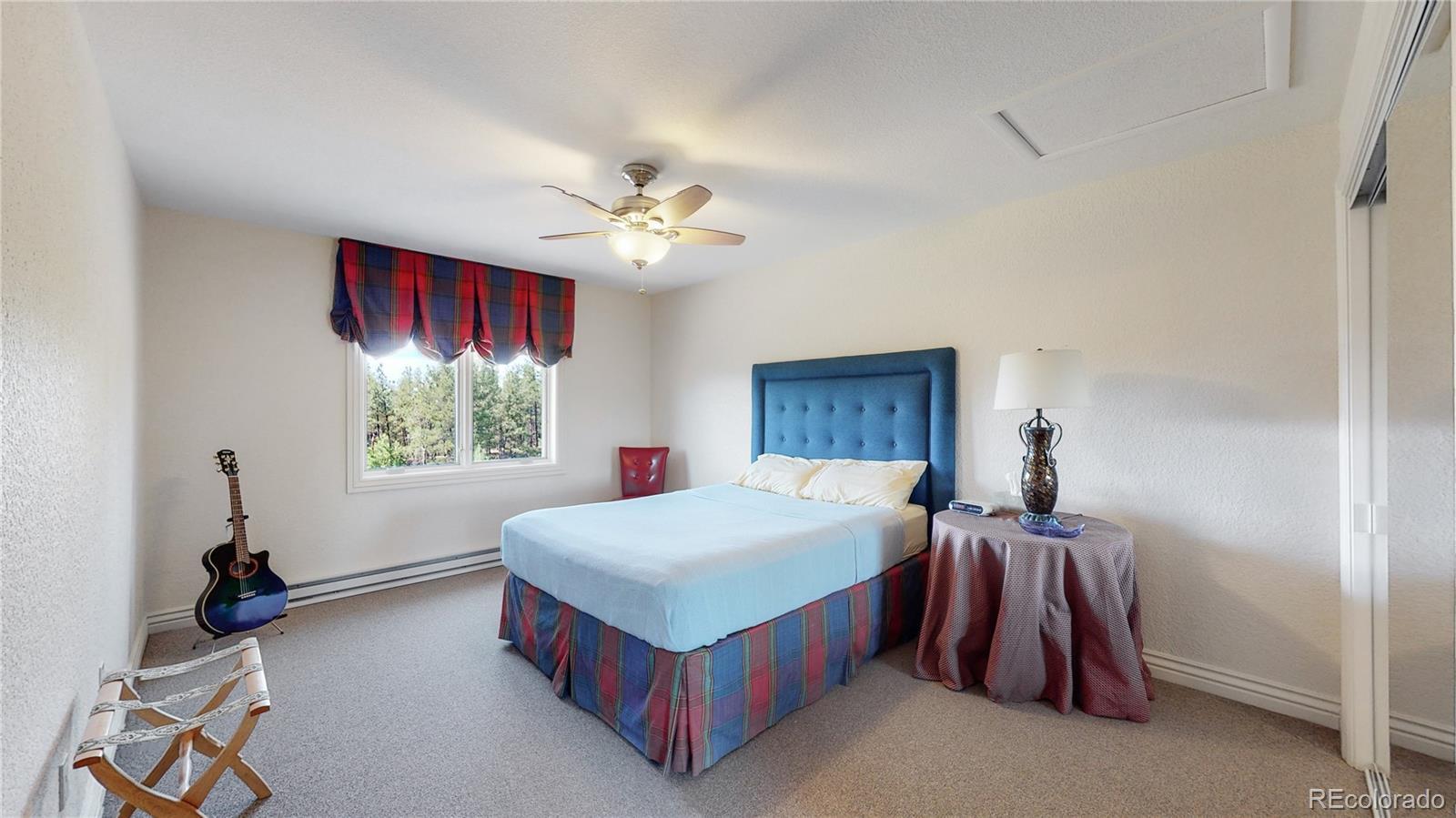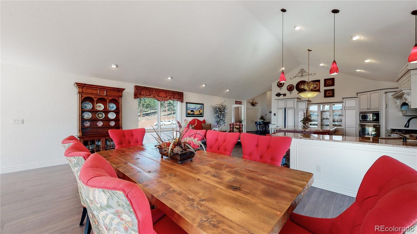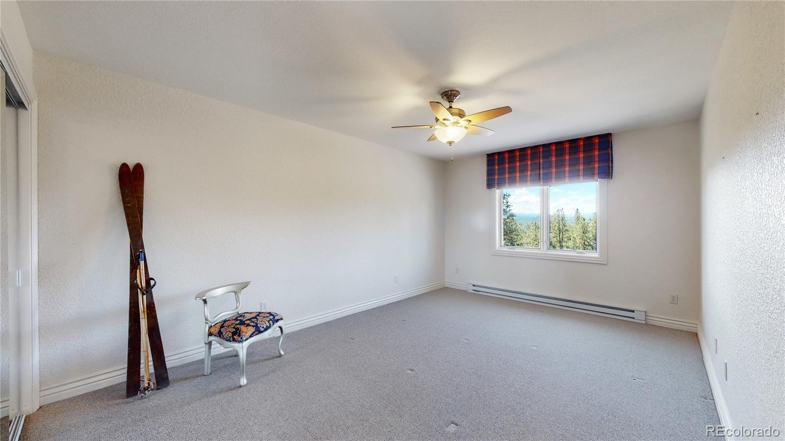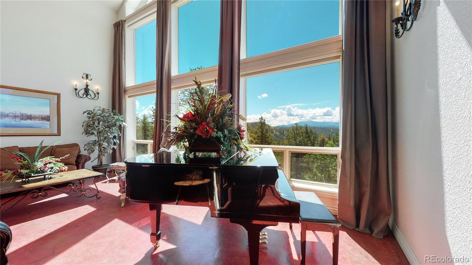 Spectacular Mountain Home on 38 acres with breathtaking view of Pikes Peak. Step in the front door and be blown away by how the owners captured the views from every inch of this home. Open floorplan with a massive gourmet kitchen that will impress any master chef, spacious dining room that walks out to an oversized deck, vaulted ceilings and a wall of windows that has Pikes Peak staring back at you. Main level primary suite with attached 5 piece bathroom, jetted tub, walk in shower, double vanities, sitting area, gas fireplace and an upper level private office. Venture to the other side of the home and you will find two large guest bedroom and a full bathroom. Lower level consist of an unbelievable Living room with a wet bar, pool table, ½ bathroom, attached theater room and a gym. Now let the fun begin!!!! Attached two car garage with heated dog kennels, separate “Barn” approximately 2,400 SQ FT that has two regular garage doors and one large RV garage door with attached shop, full RV hookups with dump station and….. another RV garage with two massive doors and the building measures about 28’x50’ that will hold any toys that you can imagine. Now take the time to walk the 38 acres and see that this property has it all, rolling hills, trees, meadows and views, what more can you ask for?