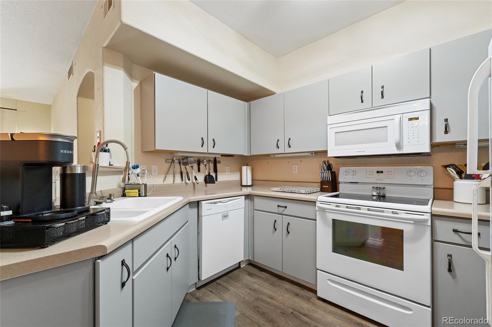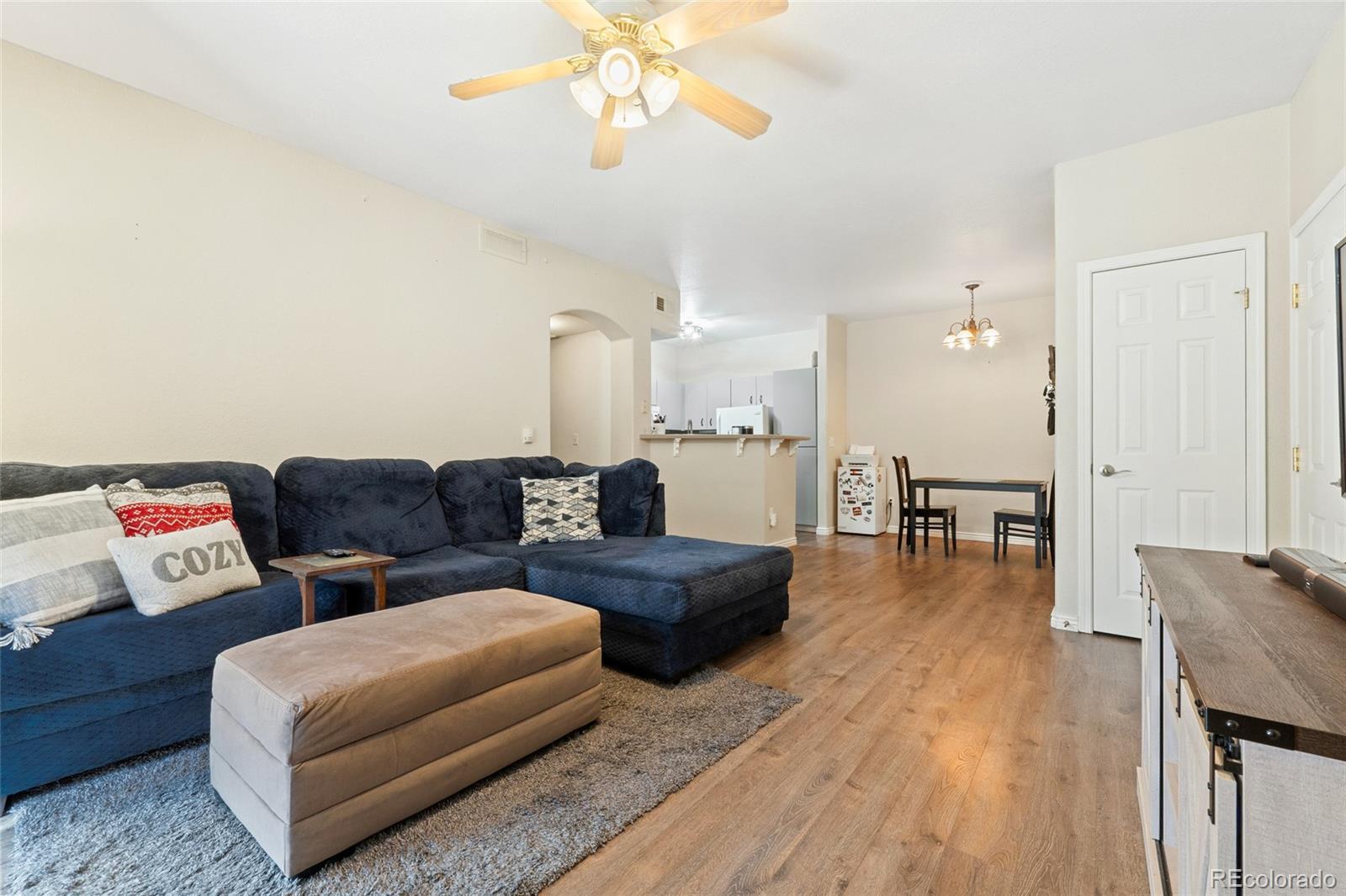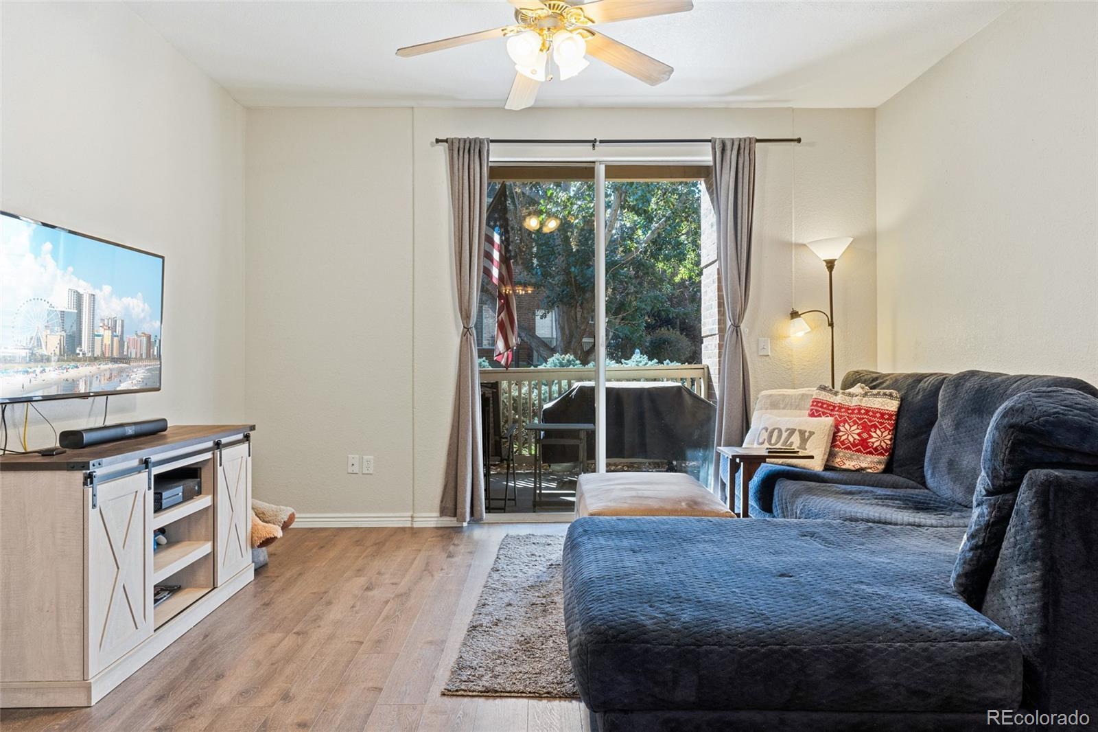 BEST PRICE in the whole community! Instant Equity. Lock and Leave. Welcome to this thoughtfully updated FIRST FLOOR (no stairs!) condo with a private 10' x 20' GARAGE! This unit is located in The Pinnacle at Highline Condos in Littleton. This one-bedroom, one-bath home offers a bright, open layout with improvements that make it move-in ready. The first-floor location means no stairs and effortless access to the community amenities just moments away, including the pool, fitness center, clubhouse, and mail center. The living room opens directly to a covered patio, creating an inviting space to relax or step outside for fresh air. The kitchen features freshly painted cabinets with modern hardware, completed this year, complemented by updated lighting that extends into the dining area. The bedroom includes a walk-in closet, newer blinds, and an updated ceiling fan. The bathroom vanity has also been painted with updated hardware for a clean, modern touch. For added convenience, the laundry area includes newer shelving and a washer and dryer, and the home is equipped with a new garbage disposal installed this year. Set right along the Highline Canal, the neighborhood is ideal for walking, biking, and enjoying the outdoors, with Breckenridge Brewery and Aspen Grove just down the road. Everyday conveniences are close by with grocery stores and coffee shops along Broadway, and a new Costco and retail center coming soon on Mineral. Plus, you’re only 25 minutes to Chatfield State Park, making it easy to balance city living with Colorado adventure. Friendly, quiet, and central to everything Littleton and Highlands Ranch have to offer, this condo is a perfect blend of comfort and convenience.