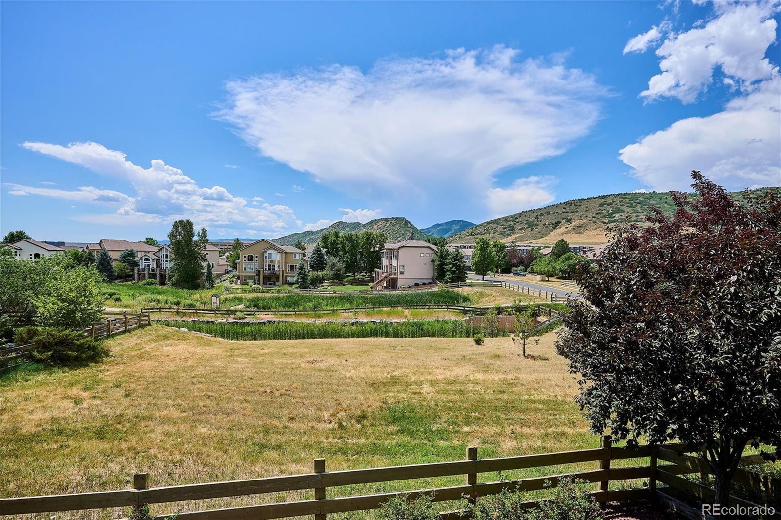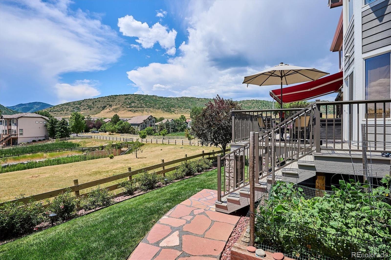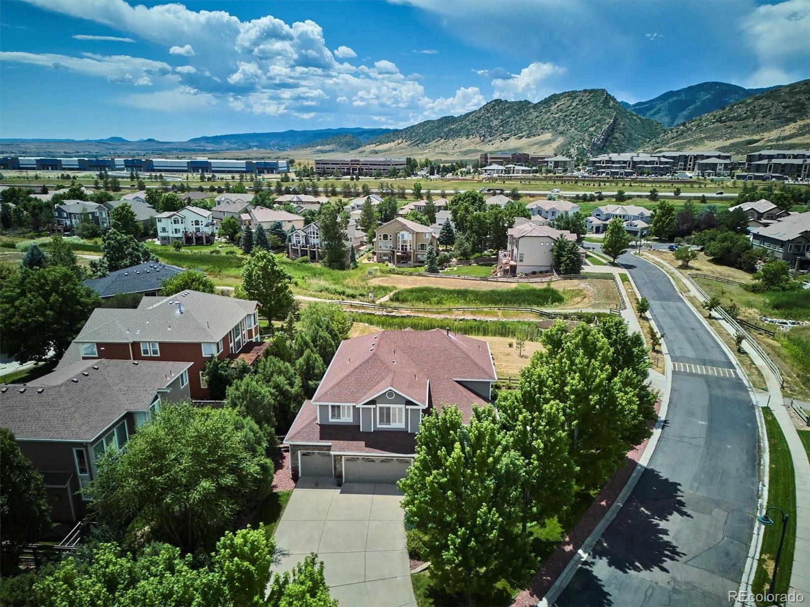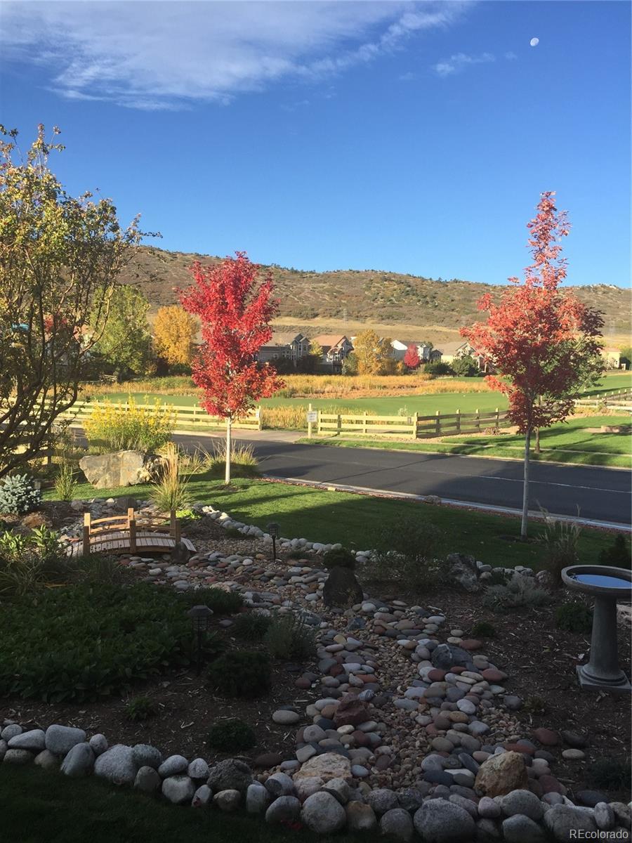 Your Meadow Ranch haven awaits—luxurious, welcoming, and perfectly kissed by autumn color. Perfectly set on nearly 1/3 acre and backing to peaceful HOA-owned open space, this beautifully cared-for home offers over 3,900 square feet of light-filled, feel-good living. And yes—the mountain views from the southwest-facing new DecKorators composite deck are as dreamy as they sound. Think sunset cocktails or morning lattes. Soaring ceilings will great you as you enter followed by gleaming hardwoods, and sunshine pouring through every window. The updated gourmet kitchen is the heart of the home, featuring custom soft-white cabinetry, top-tier appliances, a massive center island, and a cheerful breakfast nook perfect for everything from pancake Saturdays to wine-and-cheese Wednesdays. The main level checks all the boxes: formal living and dining for holiday hosting, a cozy family room with fireplace for Netflix nights, a flexible den/office for Zoom calls or guests, plus a half bath and a super functional laundry/mudroom to keep life running smoothly. Upstairs, the primary suite is pure relaxation with a spa-worthy 5-piece bath. Two additional bedrooms, a full bath, and a loft with mountain views complete the upper floor—ideal for a playroom, hangout, or creative space. And the finished basement? Fresh with new carpet and baseboards, ready to flex with your lifestyle: home theater, gym, or game zone—yes, yes, and yes. Outside, your private backyard oasis is made for alfresco dinners and stargazing, while the 3-car garage keeps everything from bikes to holiday décor neatly tucked away. Community bonus: a private, fenced park with pond, playground, and picnic tables! Enjoy nearby trails, bike paths, golf courses, Foothills Park & Rec facilities, and the highly rated Collegiate Charter School (K–12) just minutes away. This is your chance to live the good life at Meadow Ranch. Come FALL in love!