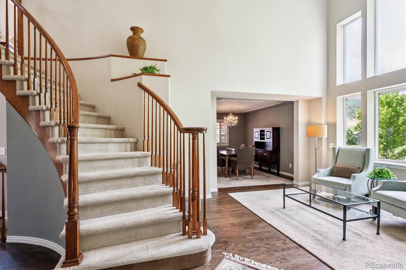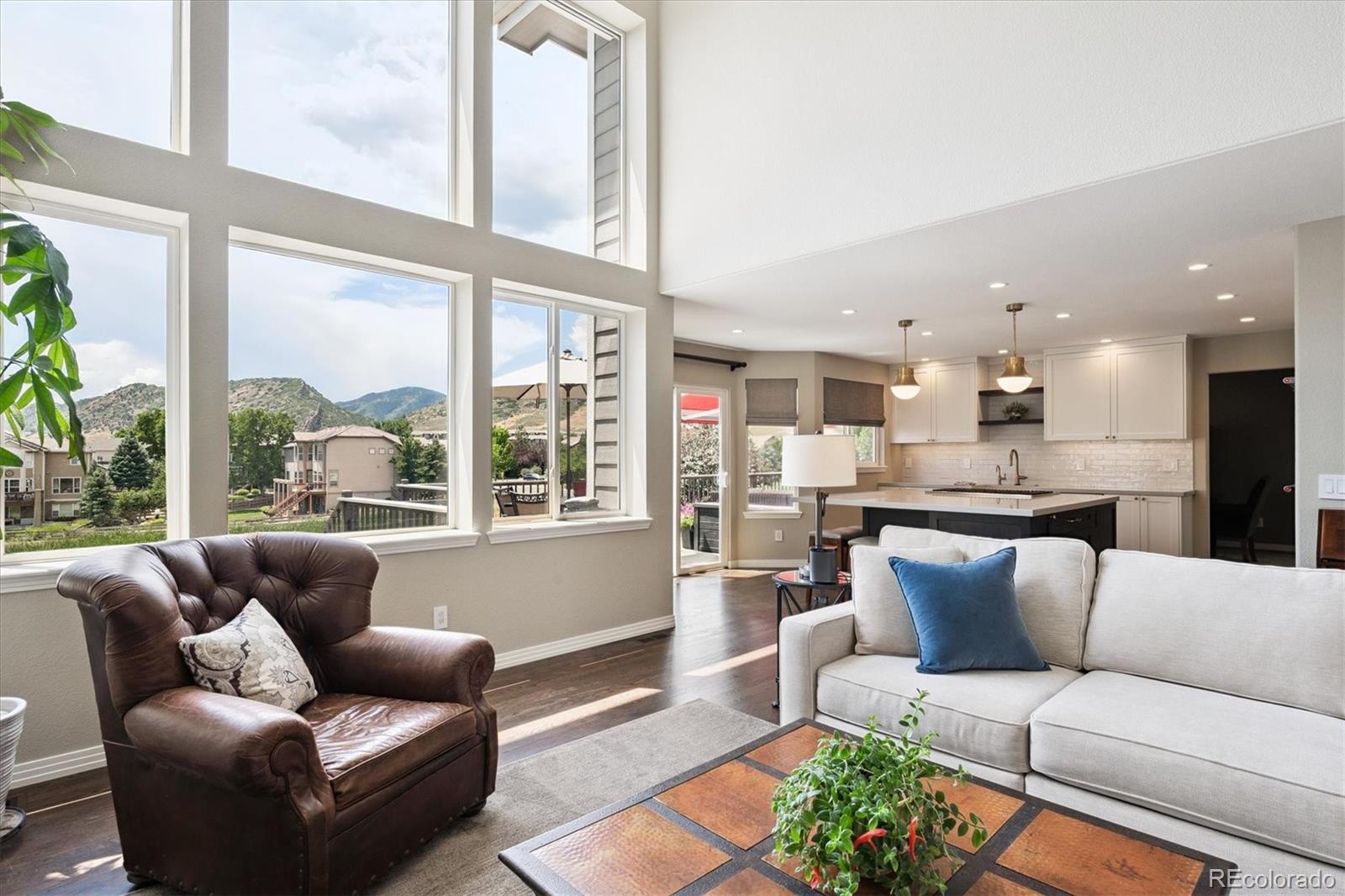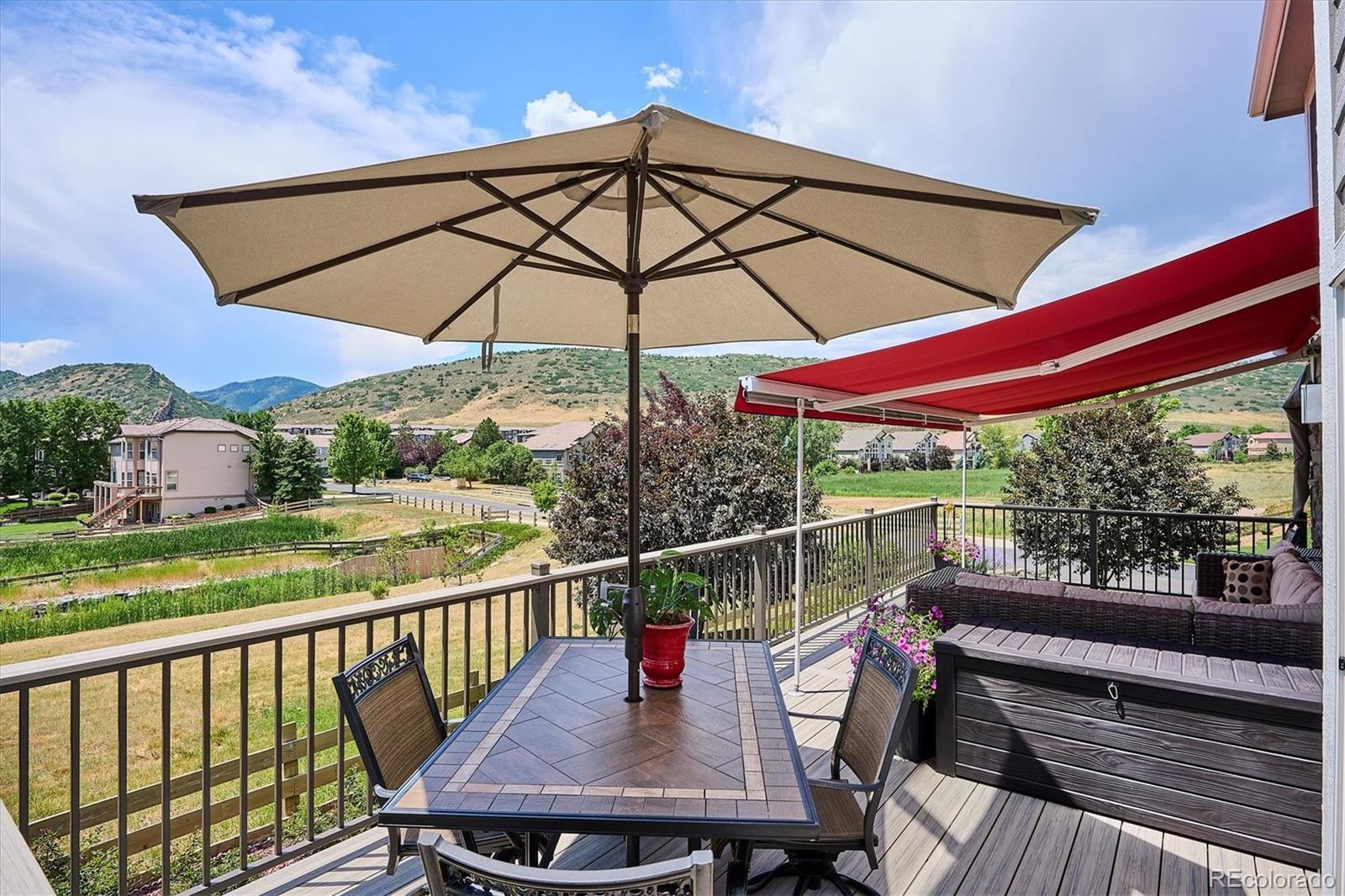 Your Meadow Ranch haven awaits—luxurious, welcoming, and perfectly kissed by autumn color. Perfectly set on nearly 1/3 acre and backing to peaceful HOA-owned open space, this beautifully cared-for home offers over 3,900 square feet of light-filled, feel-good living. And yes—the mountain views from the southwest-facing new DecKorators composite deck are as dreamy as they sound. Think sunset cocktails or morning lattes. Soaring ceilings will great you as you enter followed by gleaming hardwoods, and sunshine pouring through every window. The updated gourmet kitchen is the heart of the home, featuring custom soft-white cabinetry, top-tier appliances, a massive center island, and a cheerful breakfast nook perfect for everything from pancake Saturdays to wine-and-cheese Wednesdays. The main level checks all the boxes: formal living and dining for holiday hosting, a cozy family room with fireplace for Netflix nights, a flexible den/office for Zoom calls or guests, plus a half bath and a super functional laundry/mudroom to keep life running smoothly. Upstairs, the primary suite is pure relaxation with a spa-worthy 5-piece bath. Two additional bedrooms, a full bath, and a loft with mountain views complete the upper floor—ideal for a playroom, hangout, or creative space. And the finished basement? Fresh with new carpet and baseboards, ready to flex with your lifestyle: home theater, gym, or game zone—yes, yes, and yes. Outside, your private backyard oasis is made for alfresco dinners and stargazing, while the 3-car garage keeps everything from bikes to holiday décor neatly tucked away. Community bonus: a private, fenced park with pond, playground, and picnic tables! Enjoy nearby trails, bike paths, golf courses, Foothills Park & Rec facilities, and the highly rated Collegiate Charter School (K–12) just minutes away. This is your chance to live the good life at Meadow Ranch. Come FALL in love!
