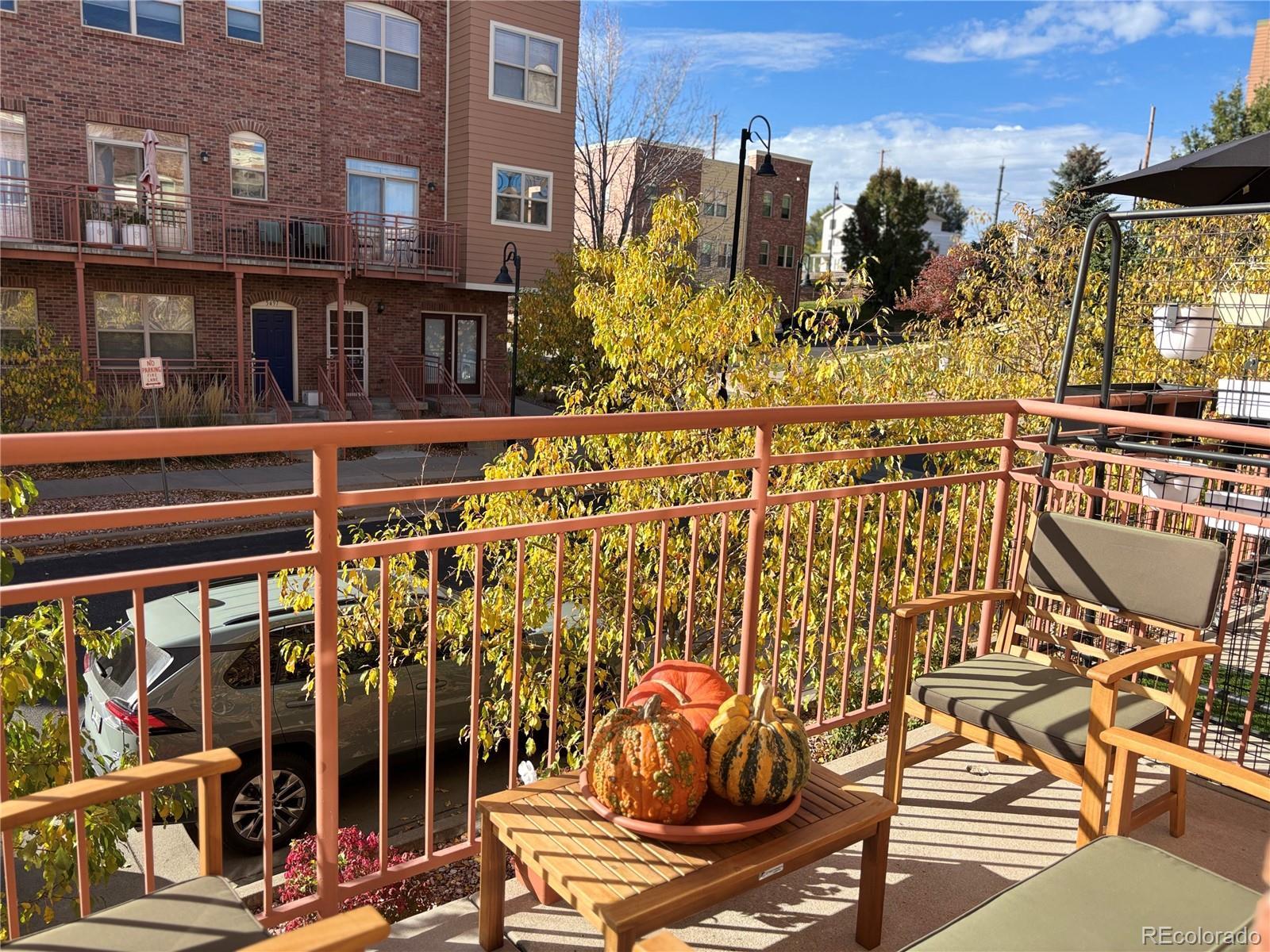 OLDE TOWN ARVADA:THE PLACE TO BE FOR MOVERS & SHAKERS. This Olde Town townhome is perfect for working couples or roommates with 2 ensuite bedrooms, each with private bath. The main living area has a balcony, living, dining, kitchen, office area & half bath. Original floor plan had a 2 car tandem on 1st floor & 1358 sq.ft. on floors 2 & 3. Seller converted the inconvenient tandem to a 1 car garage entering into mud room before entering main foyer. A large storage room was built + a nice home office with large window,+ heating on the entry foyer level. Total interior finished square footage is now 1574 sq.ft. Enjoy a comfy front porch at ground level adjacent to entry door. LOTS OF PRIVACY: 2 home offices + 1st level covered front porch + 2nd level balcony.NEWLY UPDATED: refinished wood floors main level; new appliances (refrigerator, stove, microwave, dishwasher); new carpeting entry level office, foyer stairs carpeting to main level; new carpeting bdrm level; new light fixtures w/dimmers; new half bath vanity; new 2nd bdrm vanity & commode; new master suite commode. NEW ENERGY EFFICIENT WINDOWS & BALCONY DOOR. Washer/dryer combo laundry upper level. Easy arterial access also convenient for people who enjoy an urban setting & don't want the expense or hassle of a vehicle. INCLUDED: Move-in gift to the Buyer: 1 yr. home warranty incl. HVAC system. OPEN HOUSE SATURDAY & SUNDAY 12:00-3:00 Clubroom, excellent exercise facility; Water Tower Park & Promenade for a quiet read, meet your Olde Town neighbors, great for walkers/runners. Enjoy the convenience of Olde Town quaint shops, coffee houses, eateries, bars, RTD commuter train station. In ski season, take the train to Union Station, hop onto the Winter Park Train for a carefree-drivefree ski day. Why throw away your money on rent when ownership allows you to sell your asset, pyramid & move up to your next real estate investment? You can't beat this location, privacy, convenience & fun loving urban atmosphere.